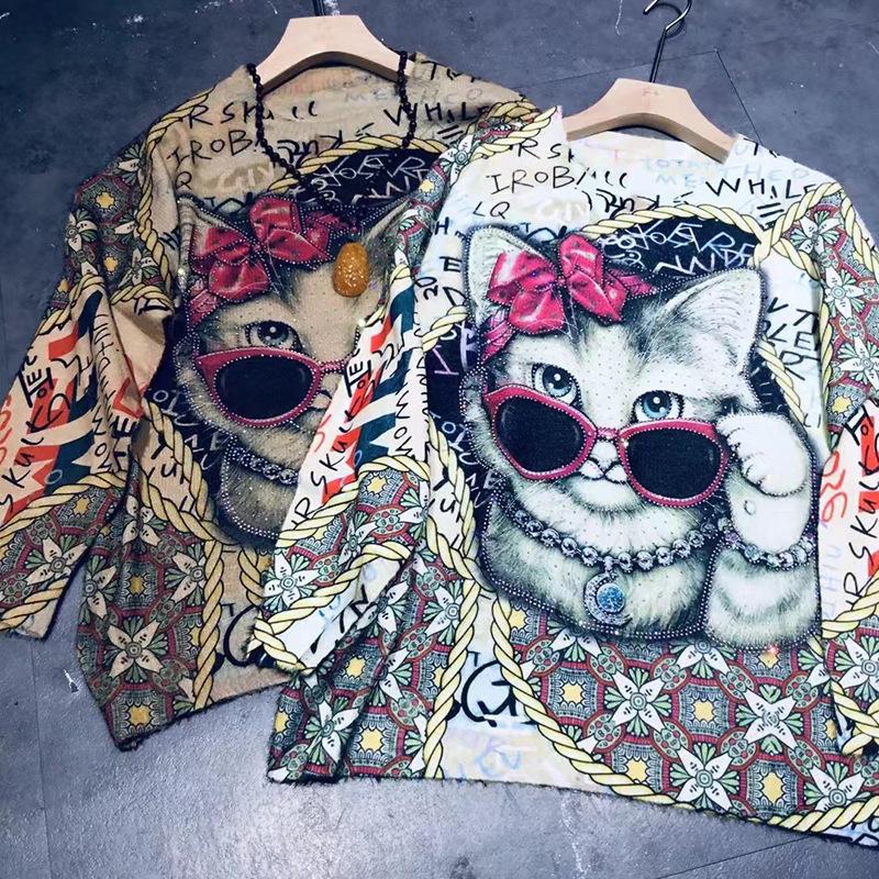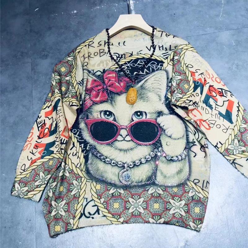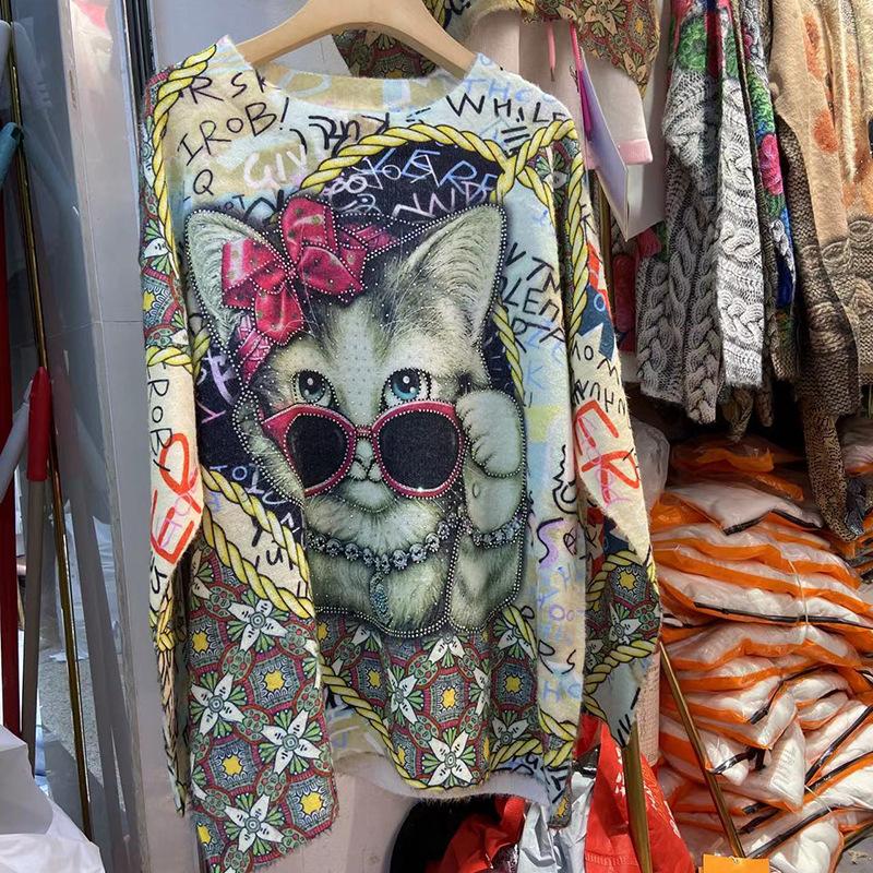 Suéter de cuello redondo suelto de alta calidad para otoño e invierno 2023, suéter de manga larga con diamantes de imitación de terciopelo de visón impermeable para mujer, top de moda