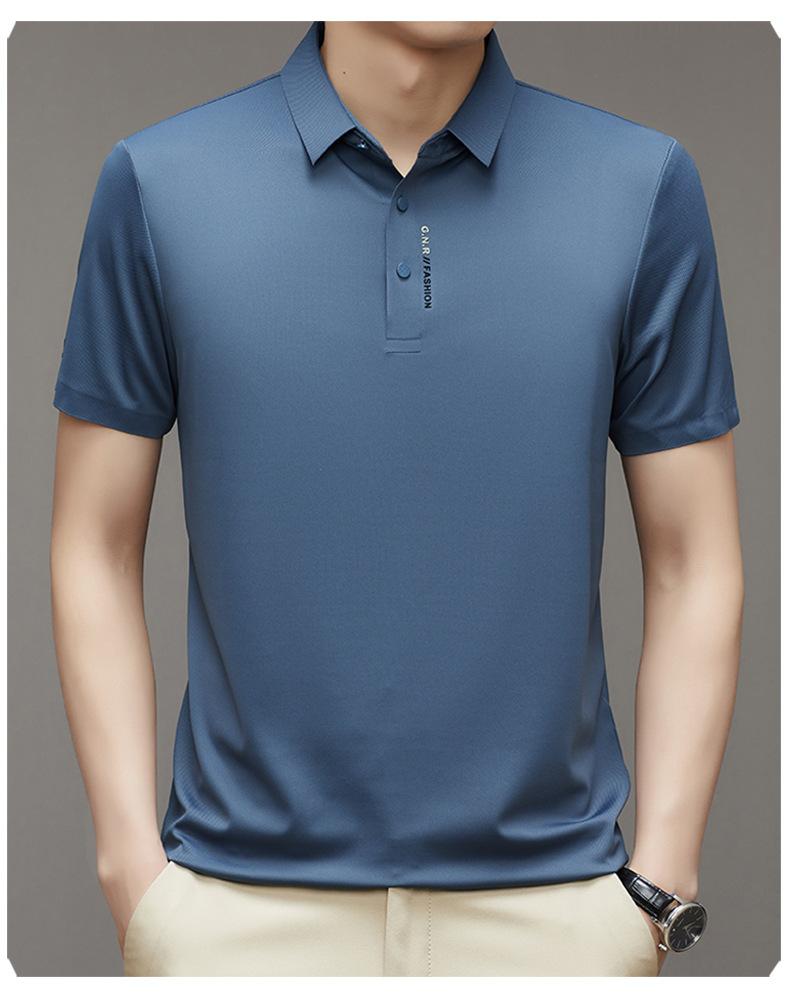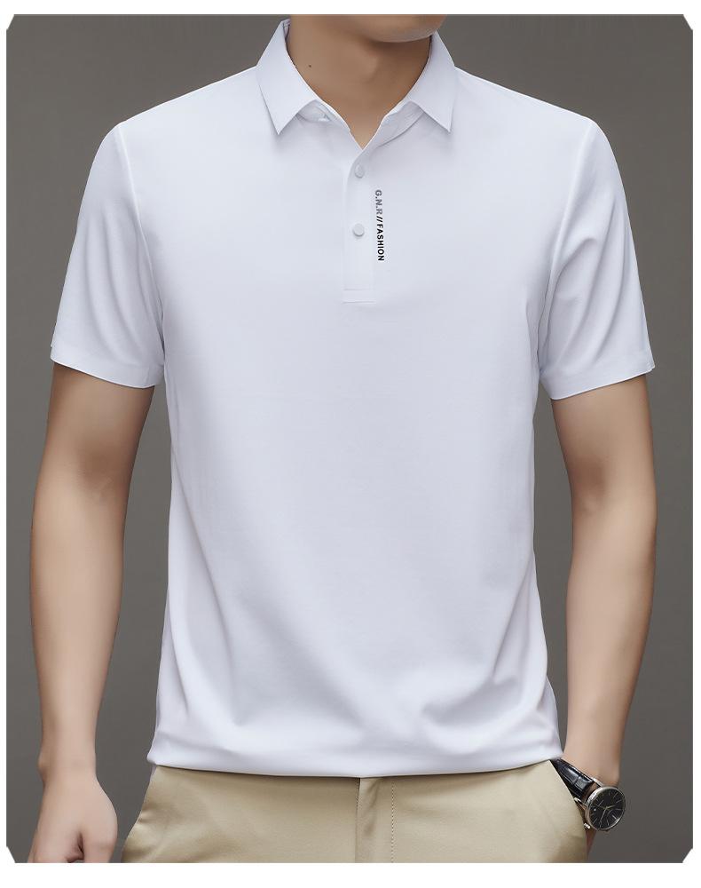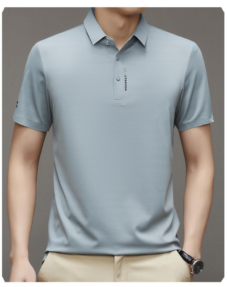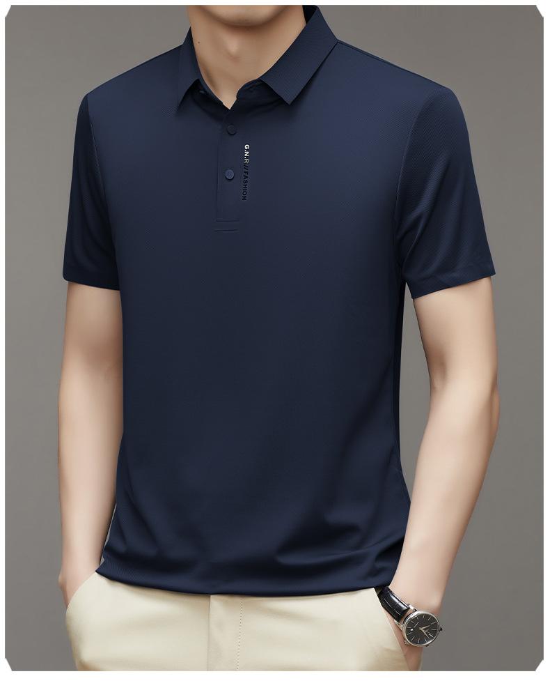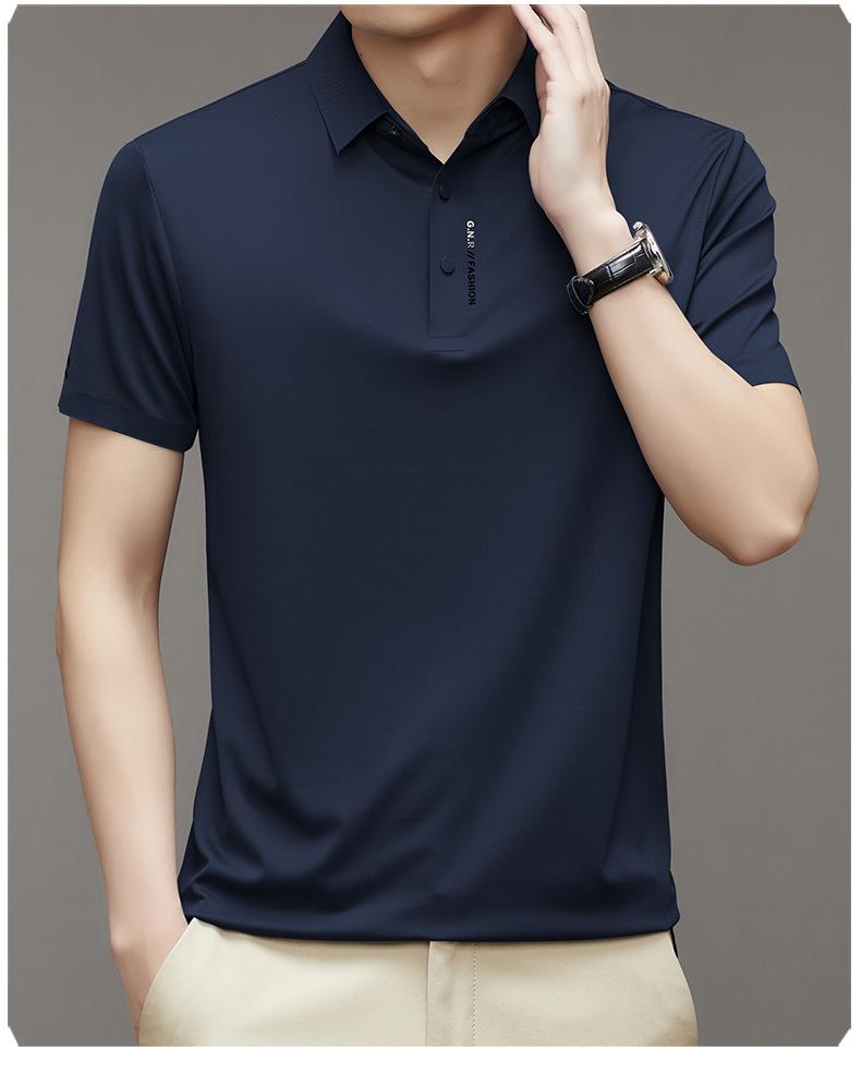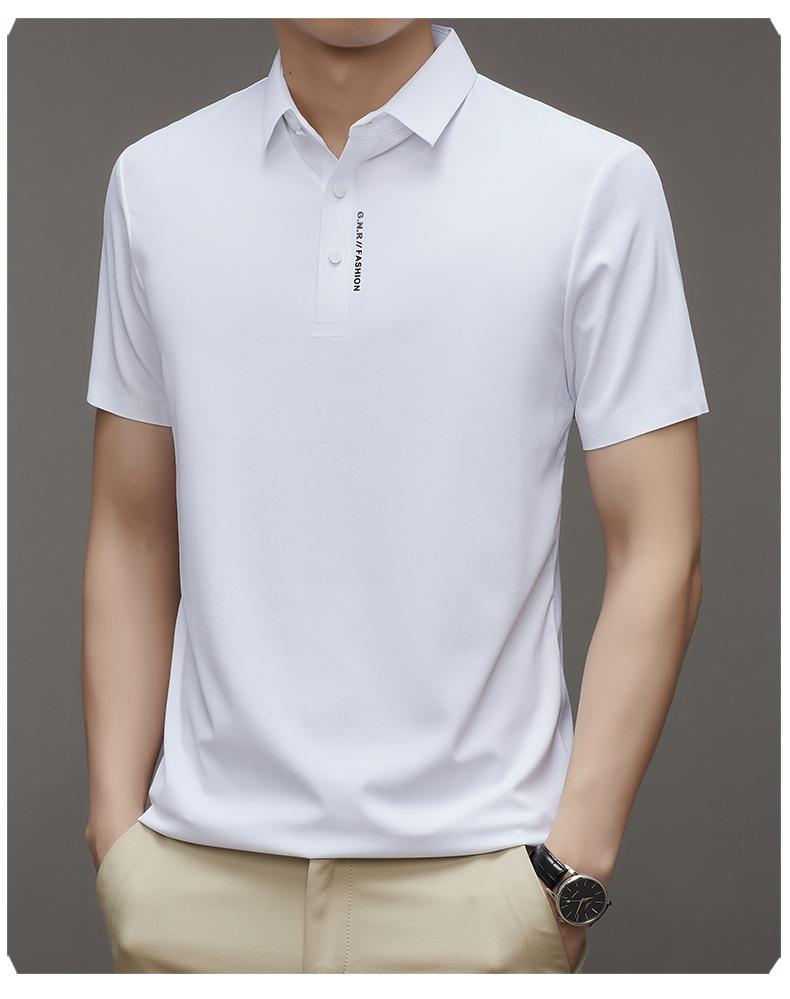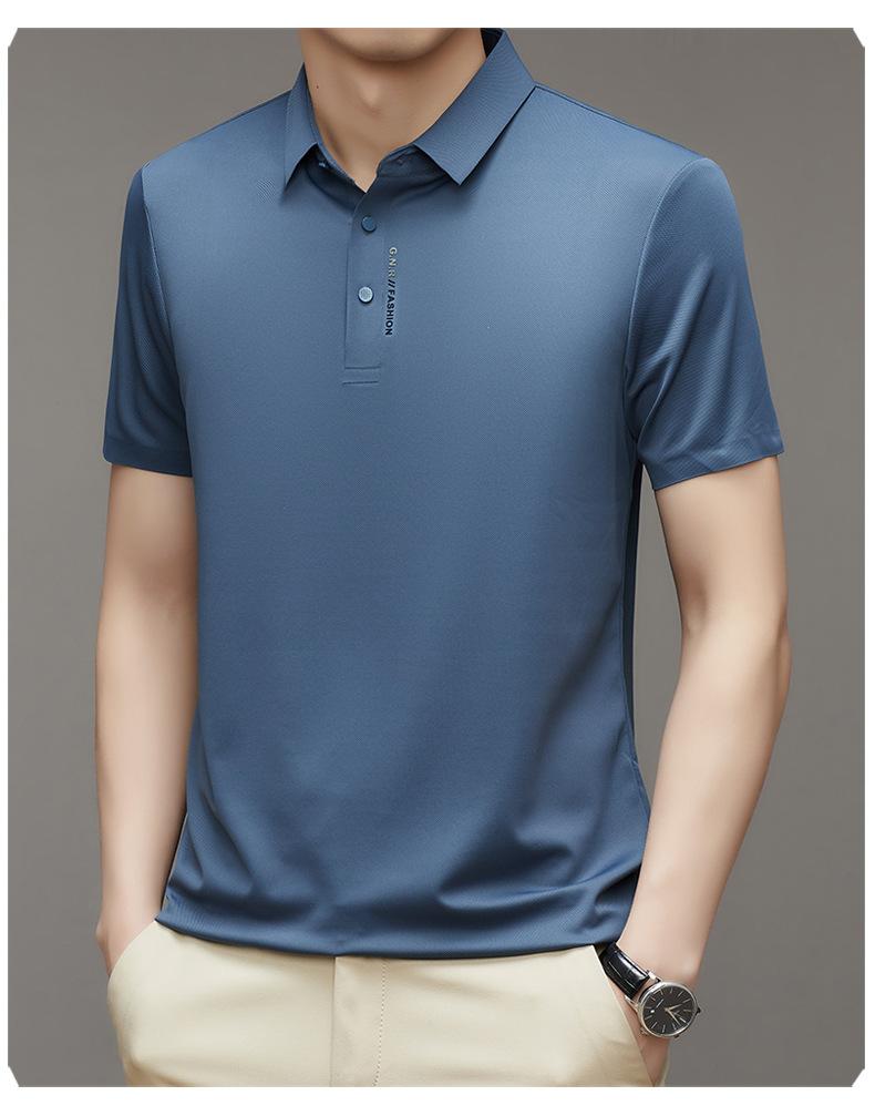 Polo de manga corta sin costuras de seda de hielo de verano para hombre, camiseta informal de negocios elástica de media manga con solapa de secado rápido, generación de cabello