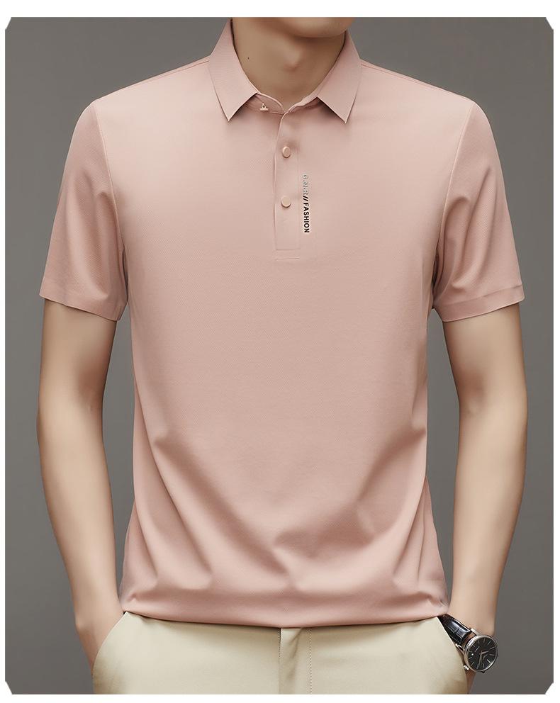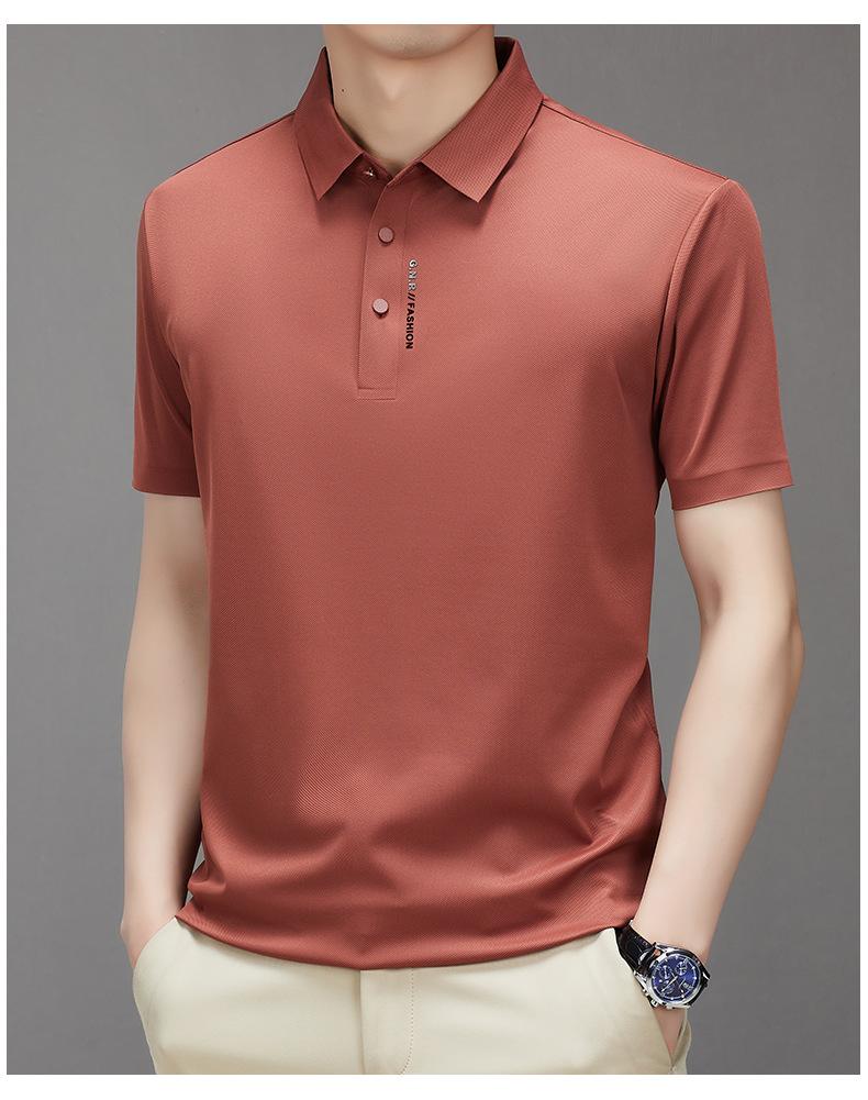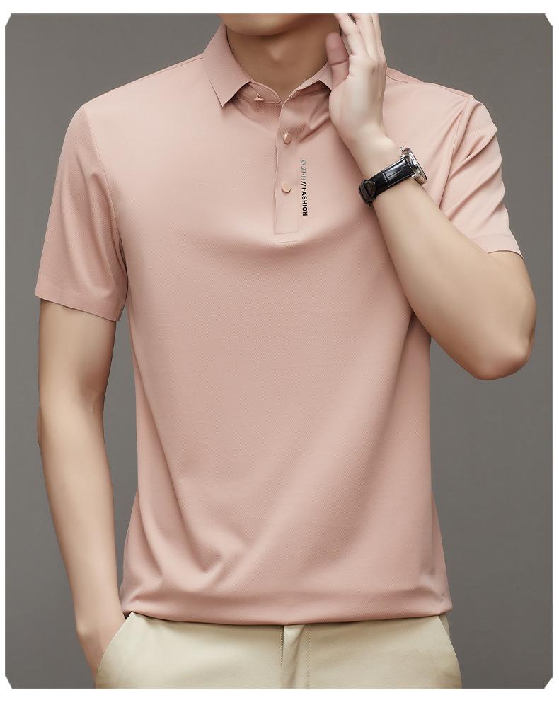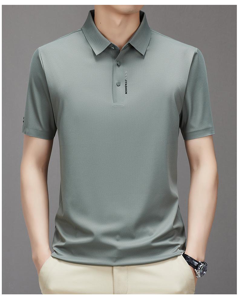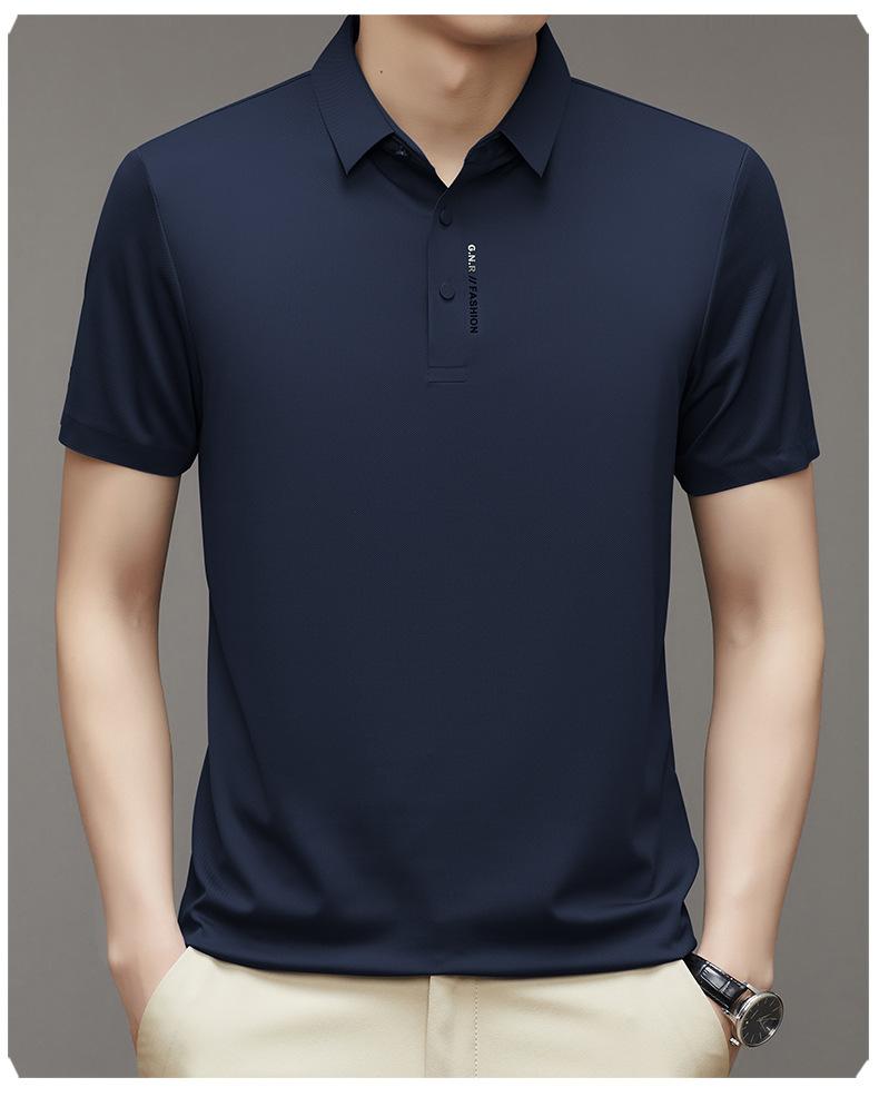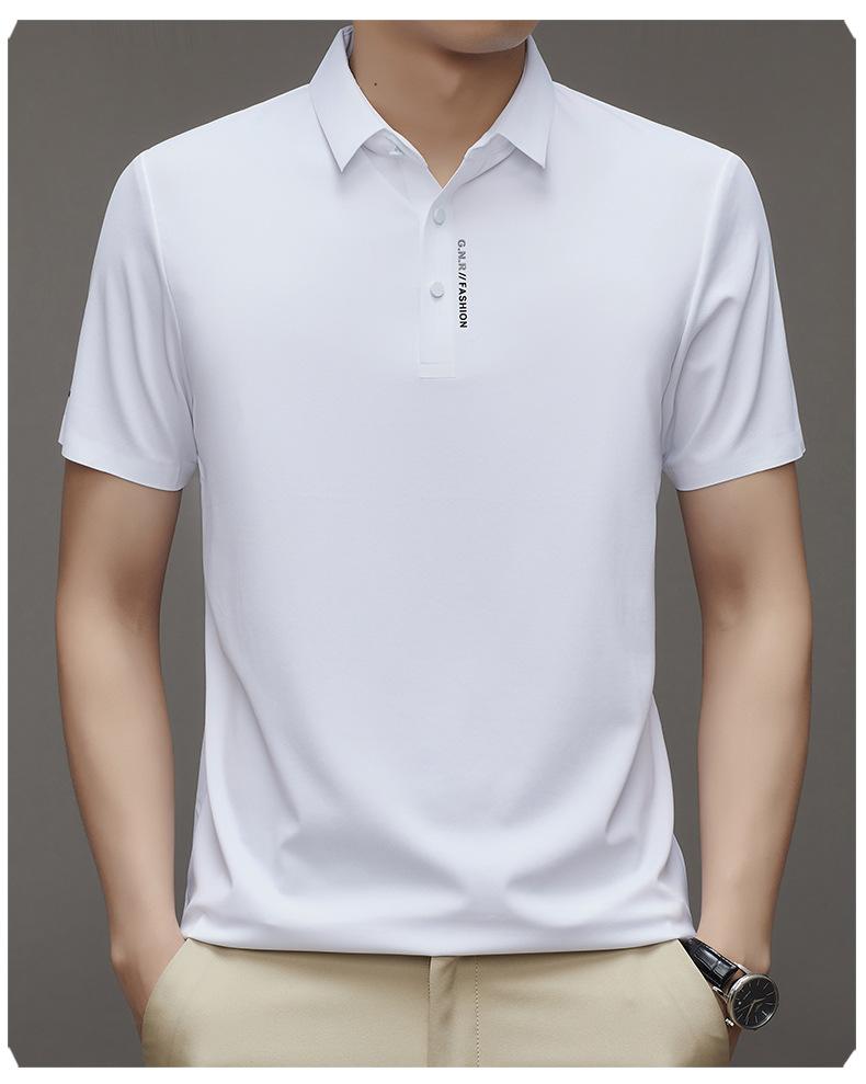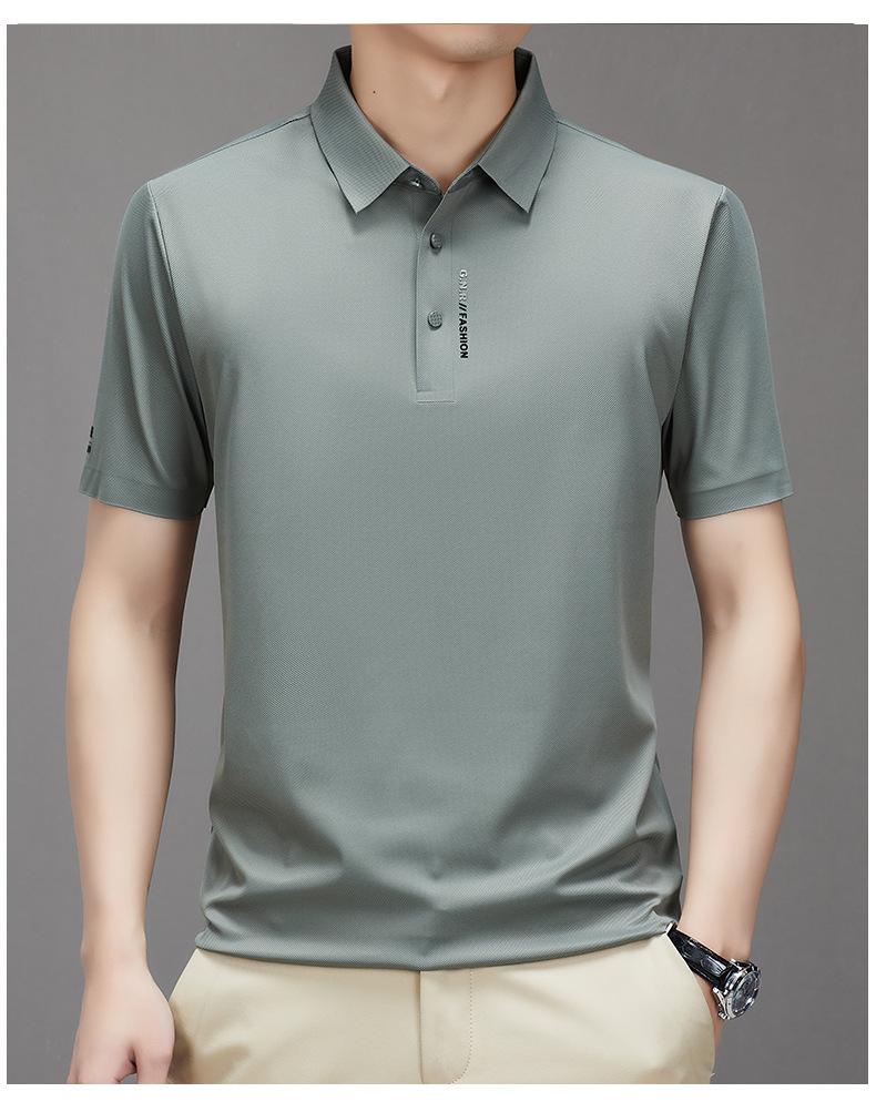 Polo de manga corta sin costuras de seda de hielo de verano para hombre, camiseta informal de negocios elástica de media manga con solapa de secado rápido, generación de cabello