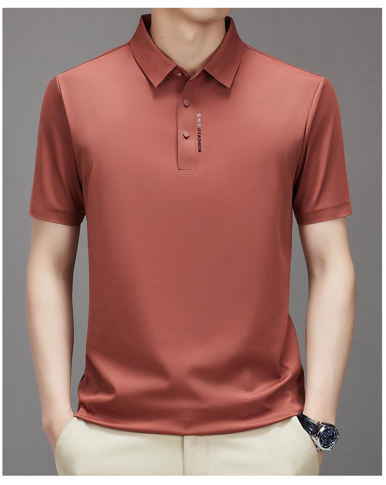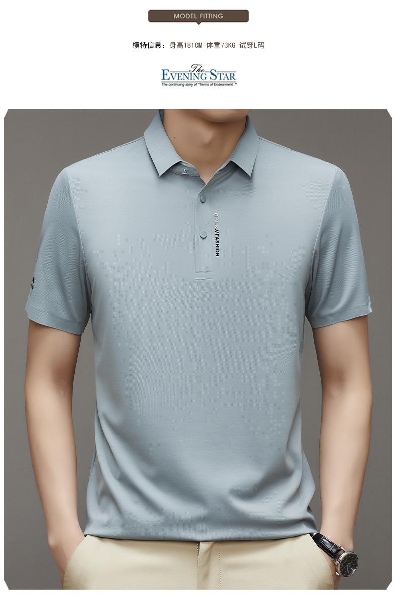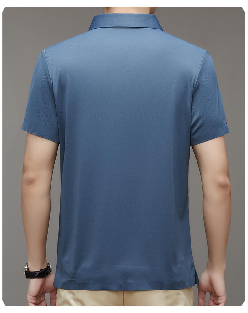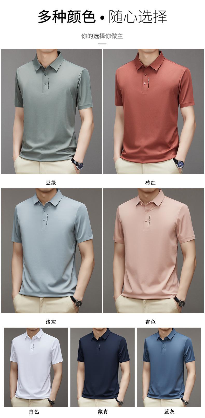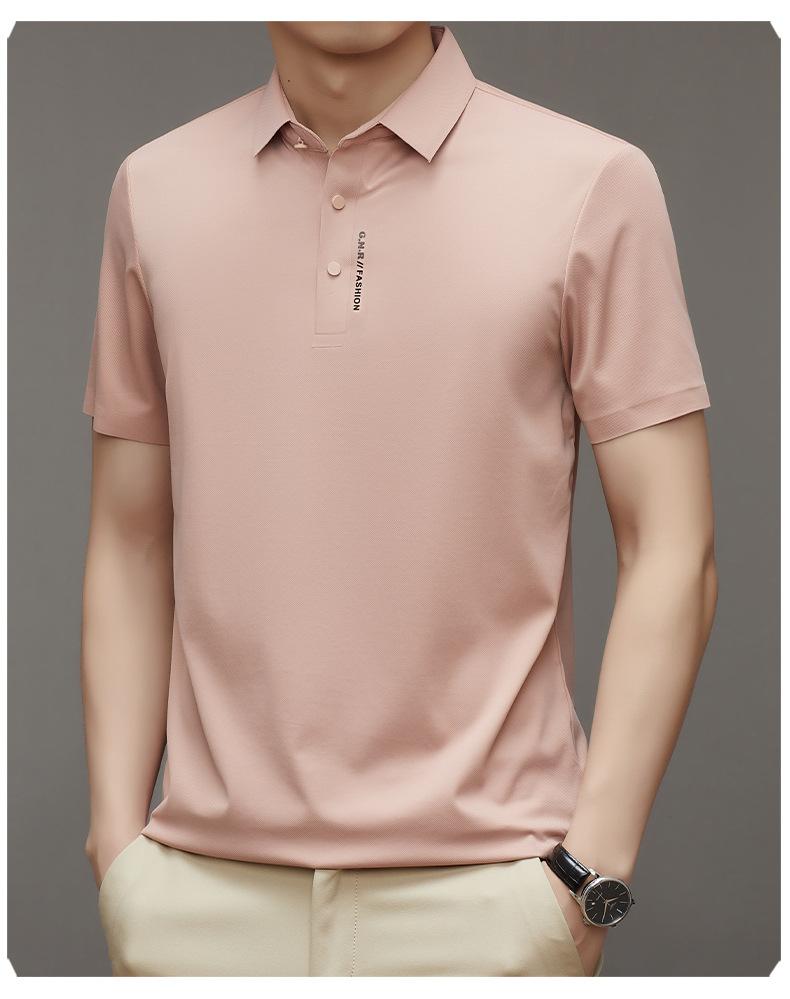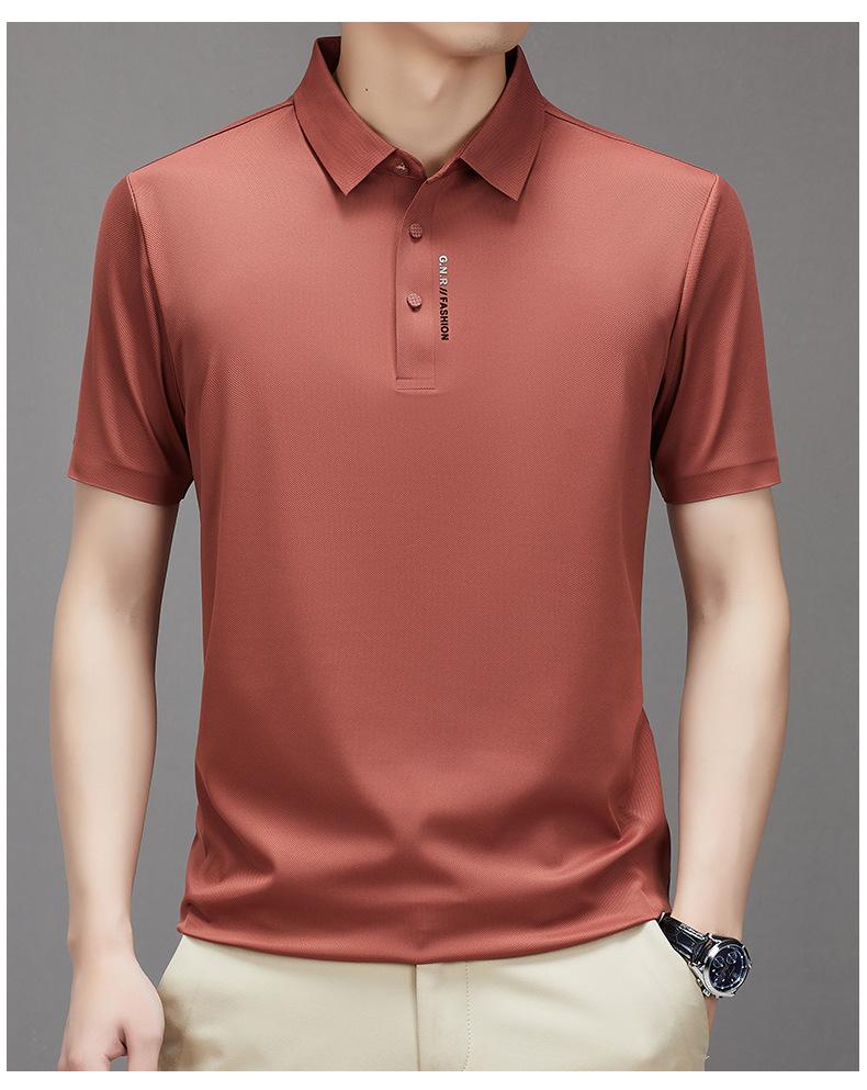 Polo de manga corta sin costuras de seda de hielo de verano para hombre, camiseta informal de negocios elástica de media manga con solapa de secado rápido, generación de cabello