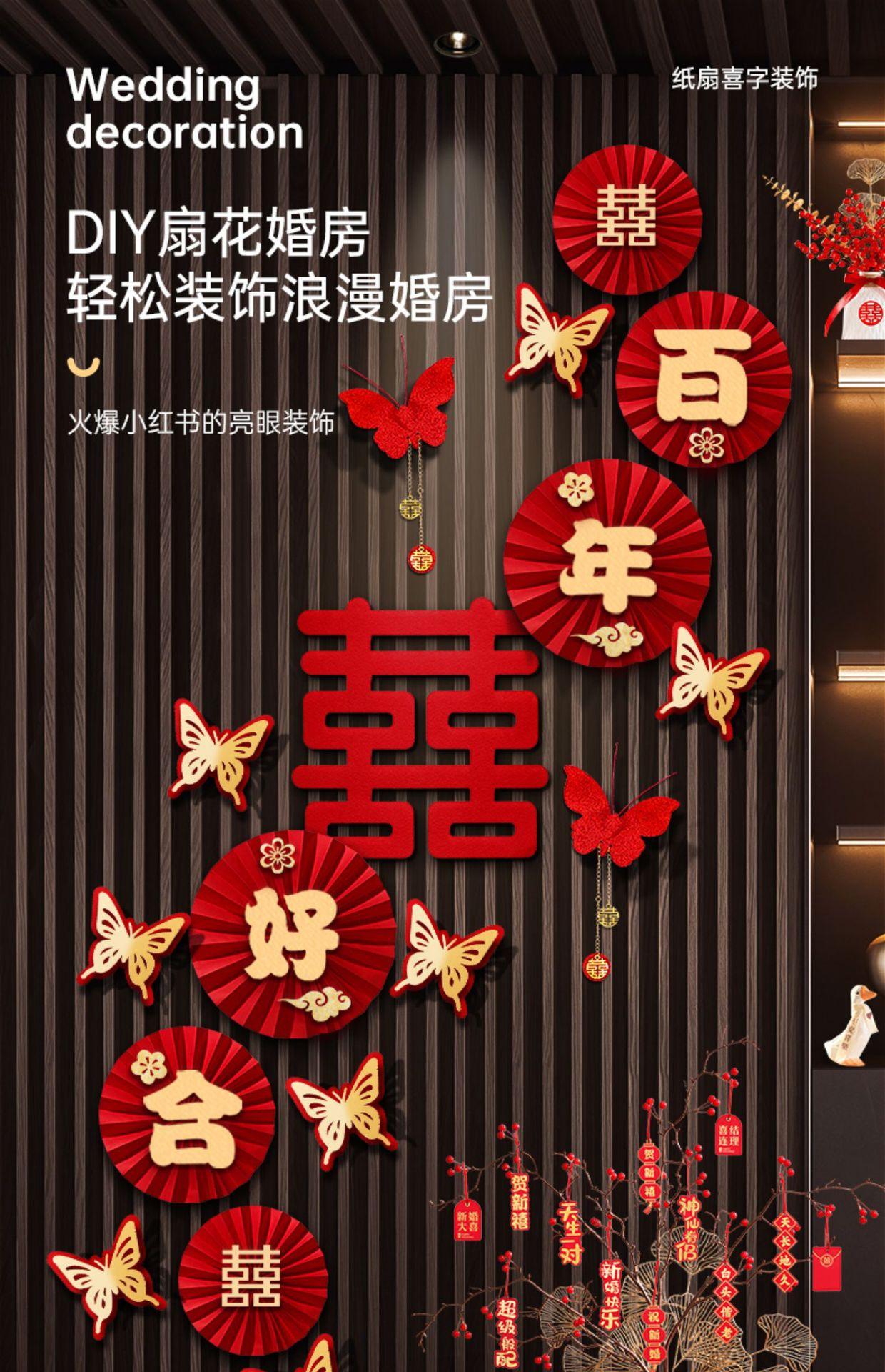 Diseño de sala de bodas, pegatinas de personajes Xi para bodas, personajes chinos creativos especiales para bodas, decoración de entrada de casa nueva para hombres, fondo de pared, traje