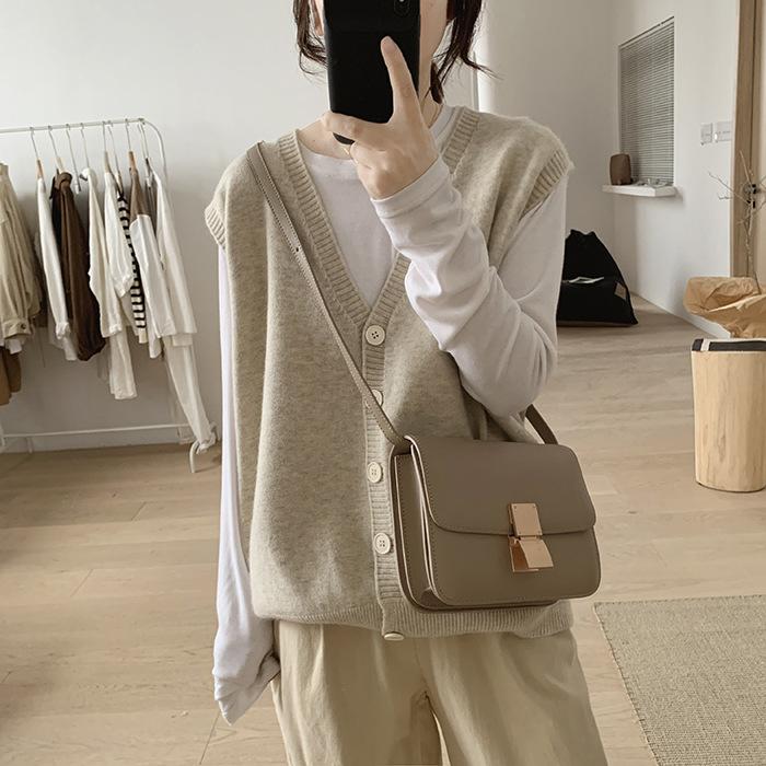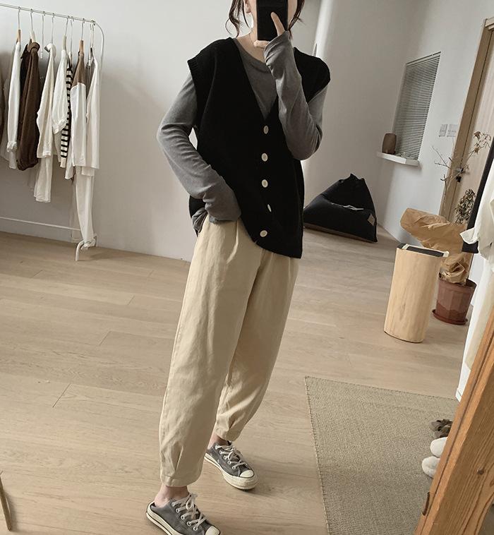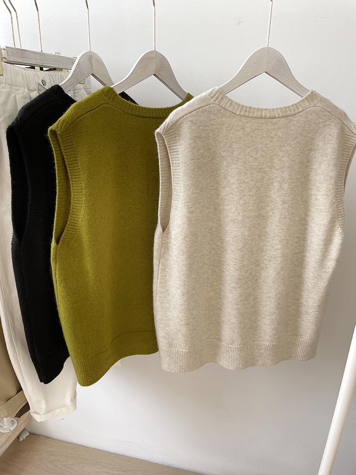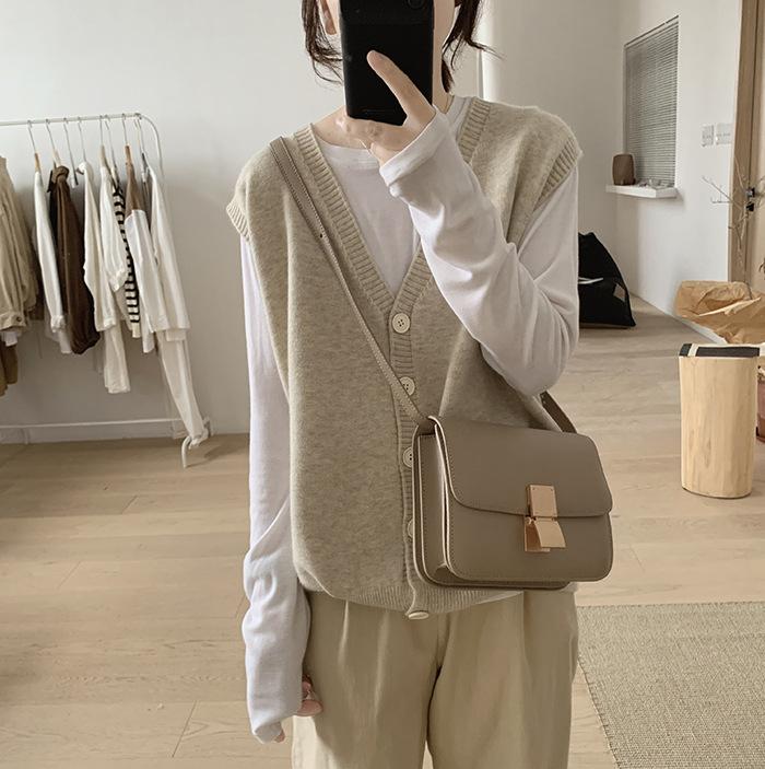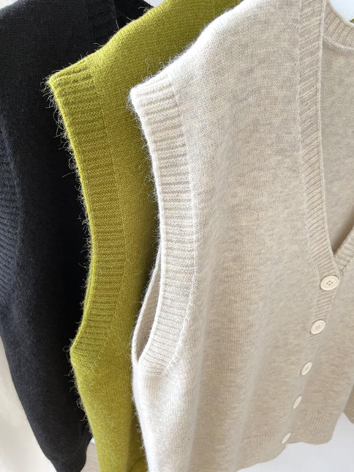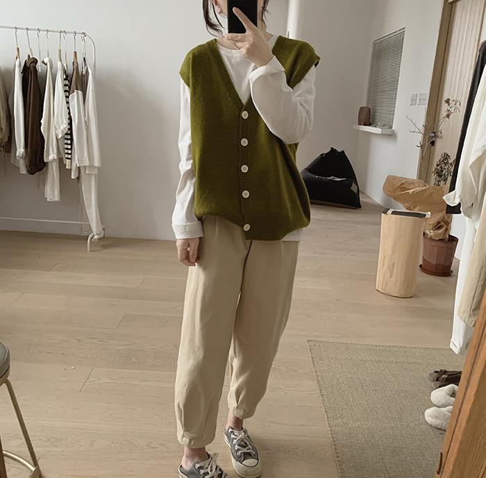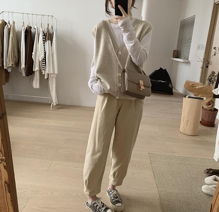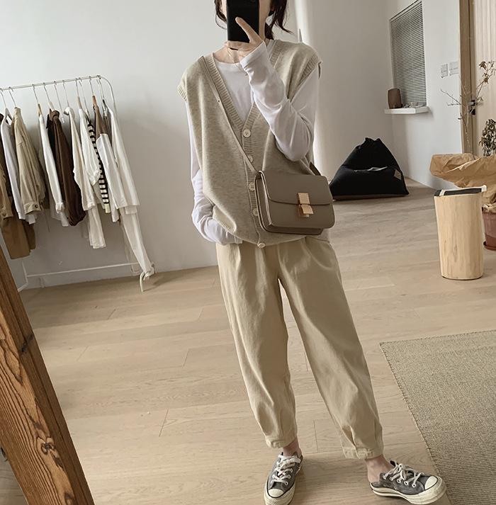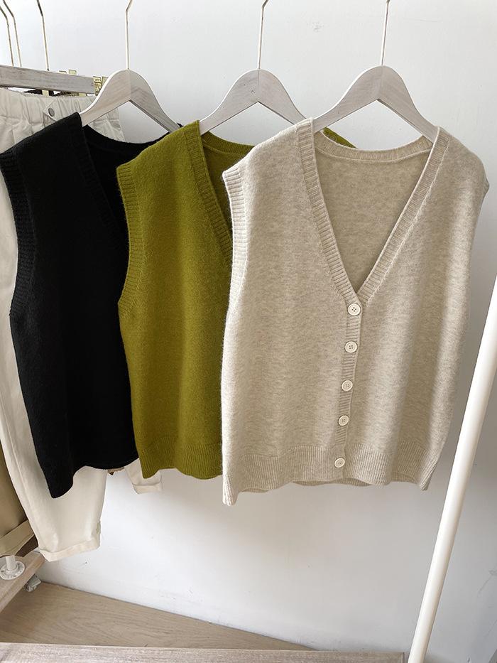 Chaleco Tejido con Cuello en V para Mujer Primavera y Otoño Nuevo Suelto Adelgazante Estilo Coreano Simple Sin Mangas Rejuvenecedor Cárdigan Chaleco