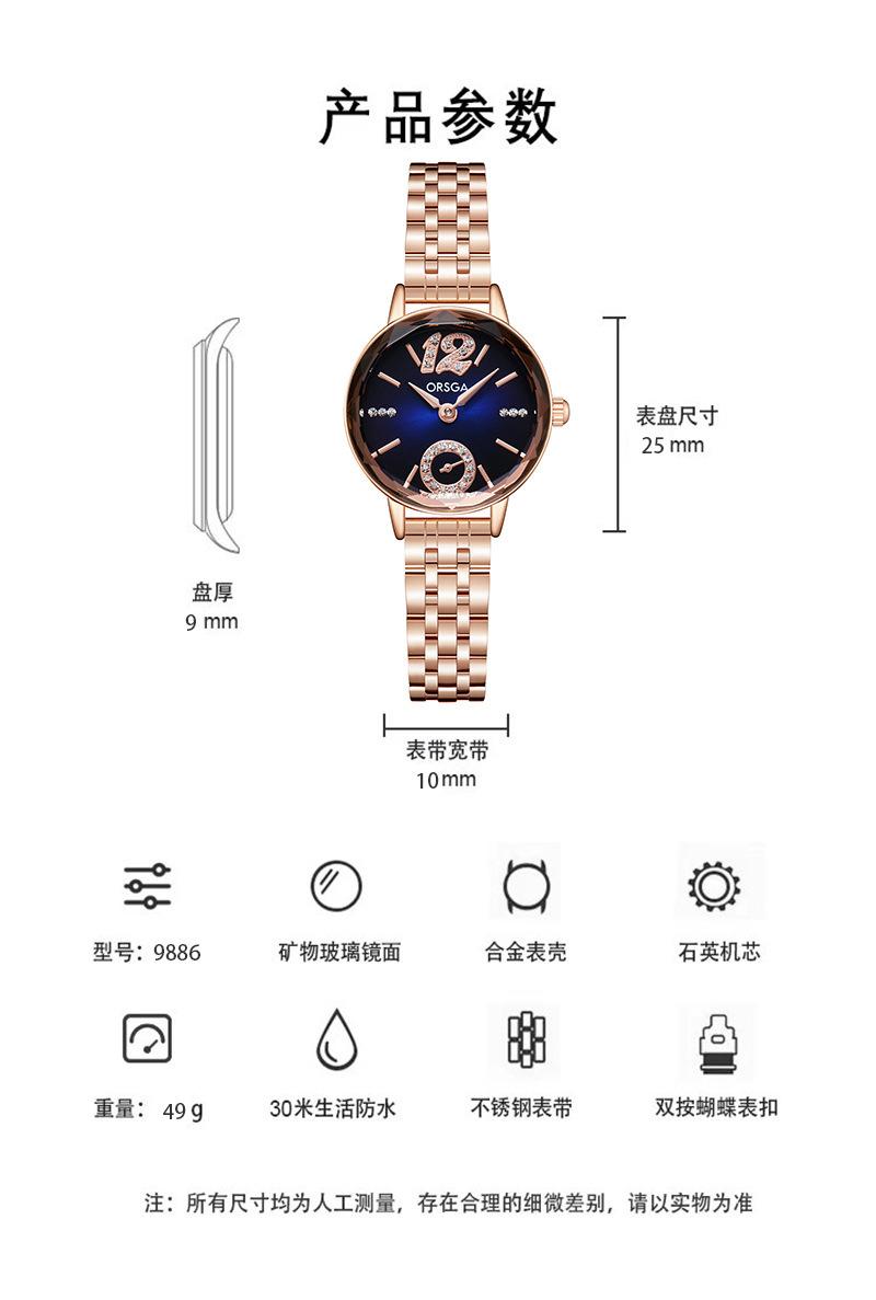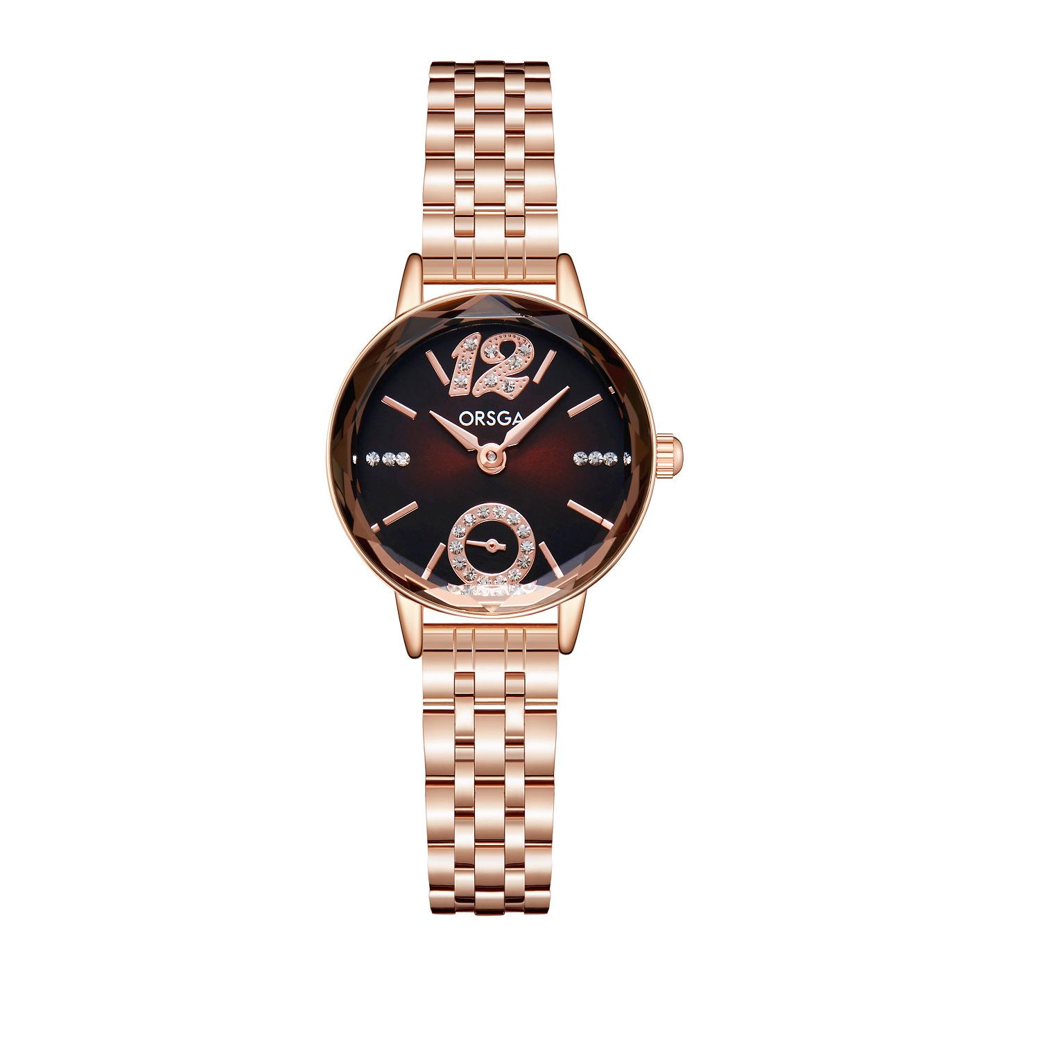 ORSGA Fashion Reloj de Diamantes para Mujer Fábrica Transfronteriza Comercio Exterior En Vivo de Alta Gama Oro Rosa Correa de Acero Reloj de Cuarzo para Mujer
