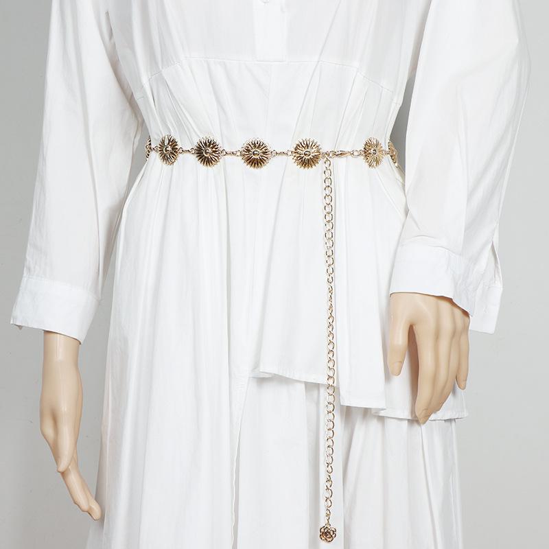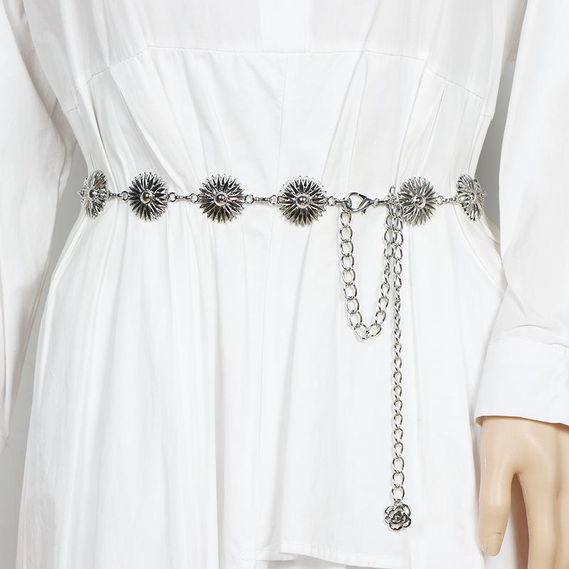 Nueva cadena de cintura de estilo para mujer, vestido decorativo, cinturón delgado, cadena retro, plata antigua, simple, combina con todo, moda europea y americana