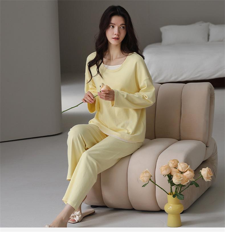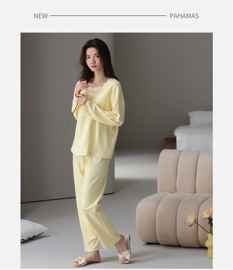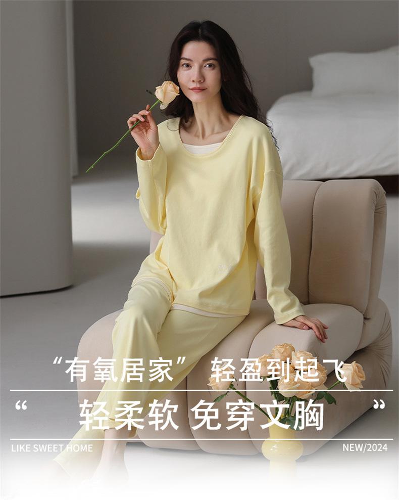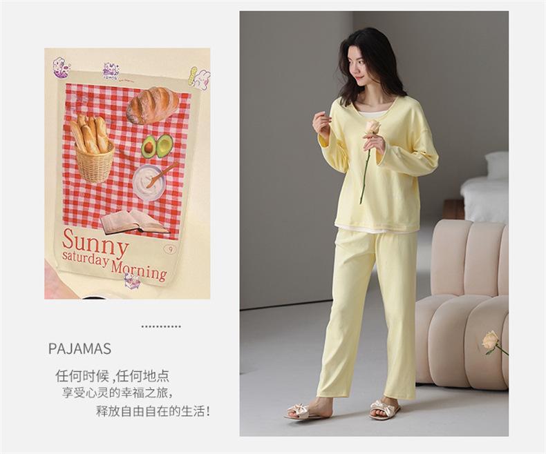Pijama de mujer con estampado de dibujos animados [con almohadilla para el pecho], ropa cómoda para el hogar, primavera 2025