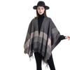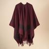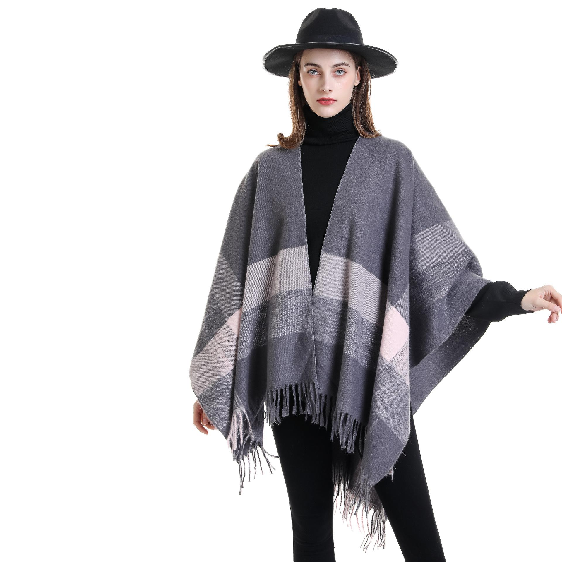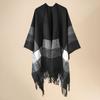 • Capa exterior tipo chal a cuadros europeos y americanos con degradado de Amazon transfronterizo 2024, capa exterior cálida con borlas para otoño e invierno
