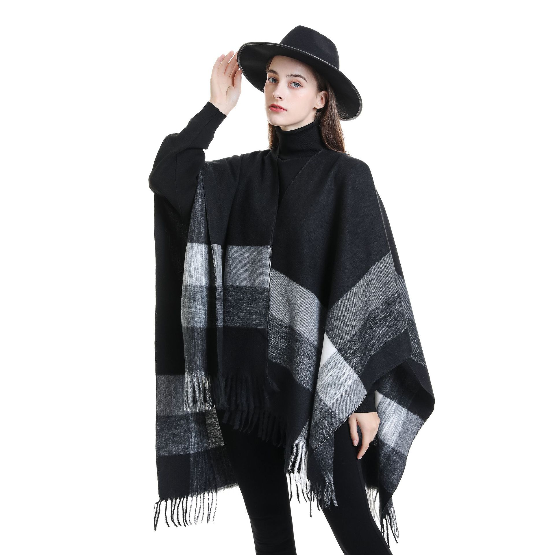 • Capa de moda con chal a cuadros de barra transfronteriza, de doble propósito, sencilla y versátil, para viajes, para otoño e invierno, cálida y exterior.