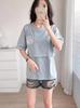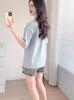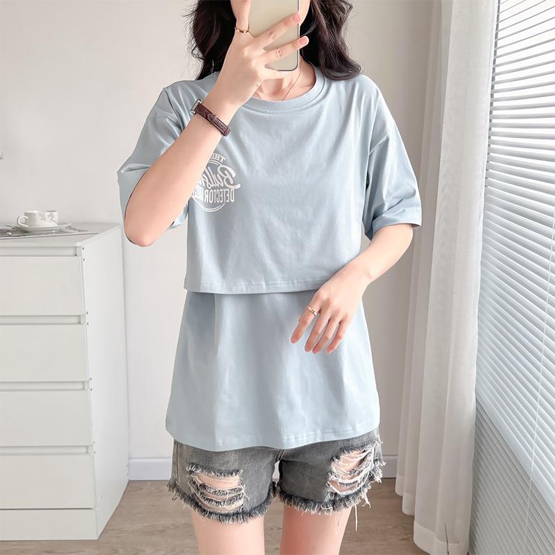 Ropa de maternidad Top de lactancia posparto Camiseta de manga corta Algodón puro Fuera de casa Verano Sexy Mamá Top de lactancia Vestido lunar Delgado