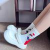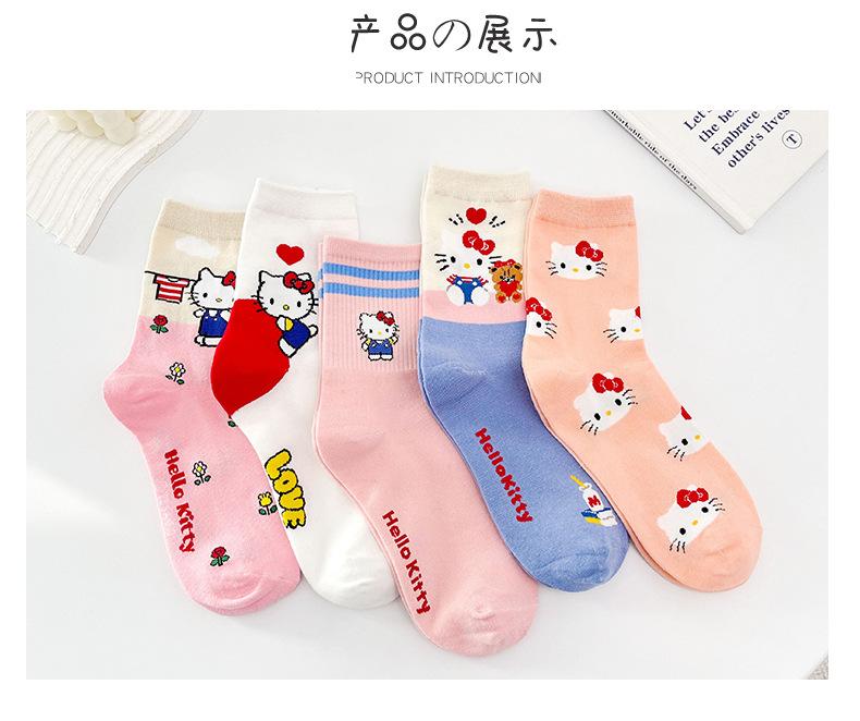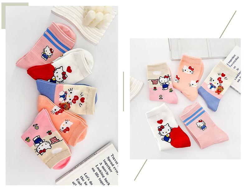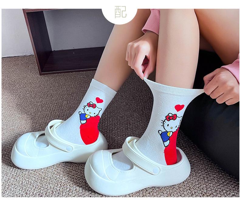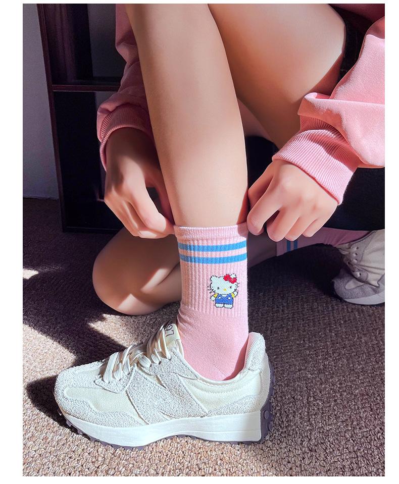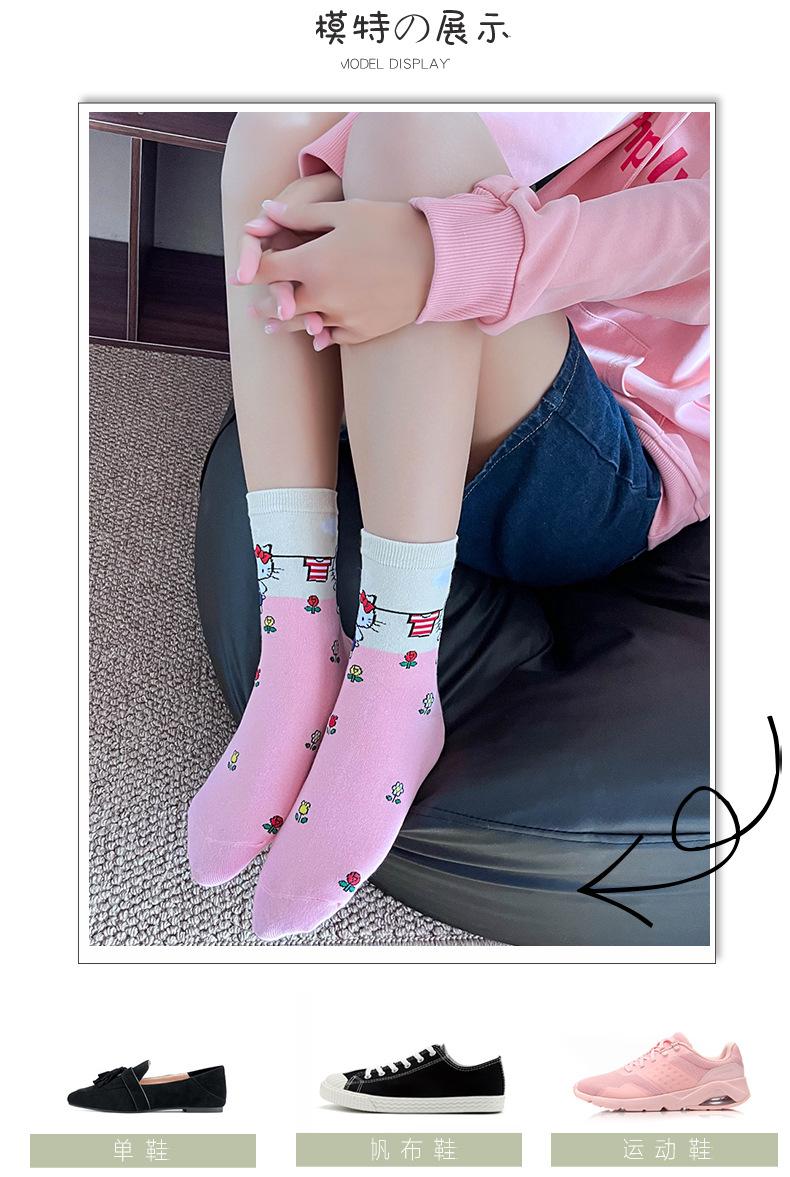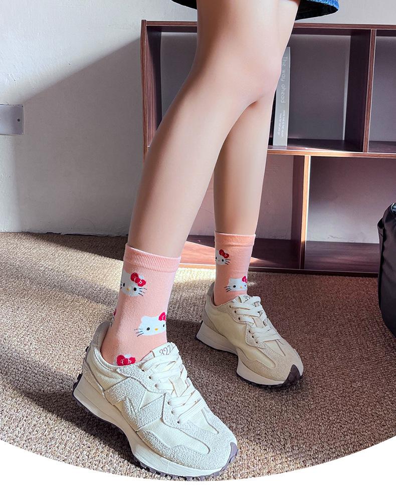 Calcetines lindos hasta media pantorrilla de algodón para mujer, delgados de primavera y verano, con gato de dibujos animados, estilo preppy para niñas, combinan con todo, calcetines deportivos de moda ins