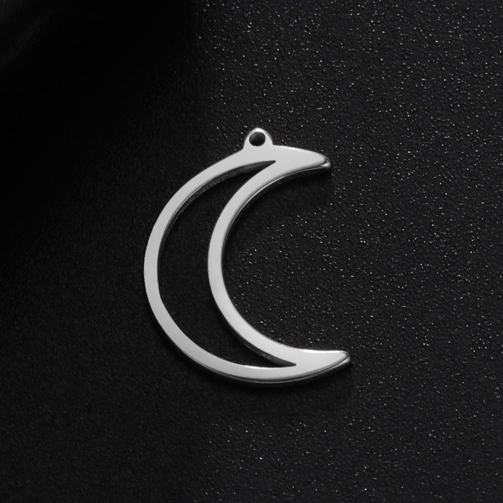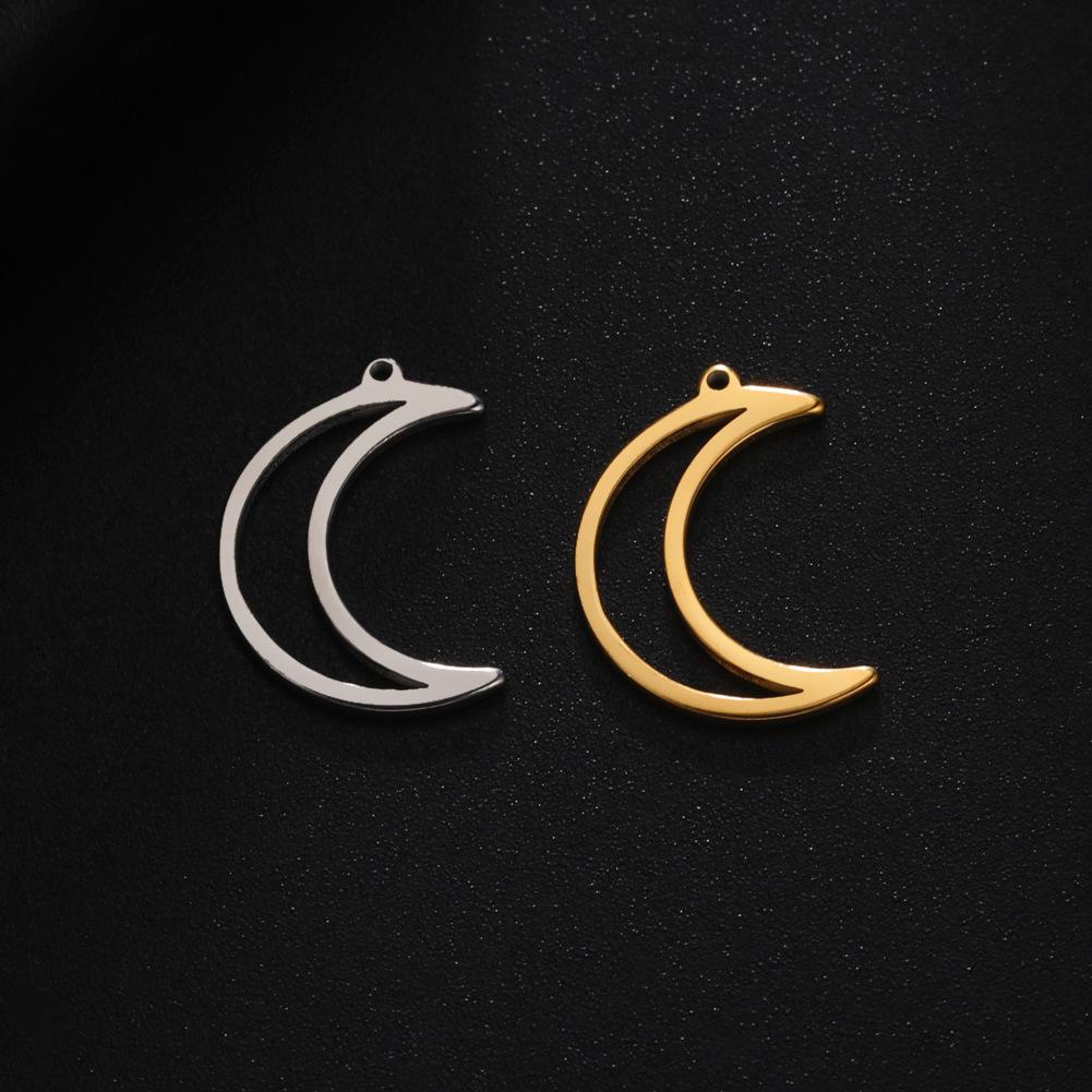 Gran oferta europea y americana: pulsera brillante, pendientes, colgante, collar, accesorios de acero inoxidable para bricolaje, colgante de luna de un solo agujero.