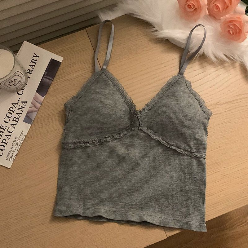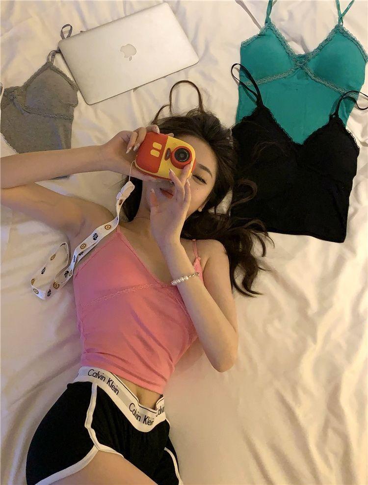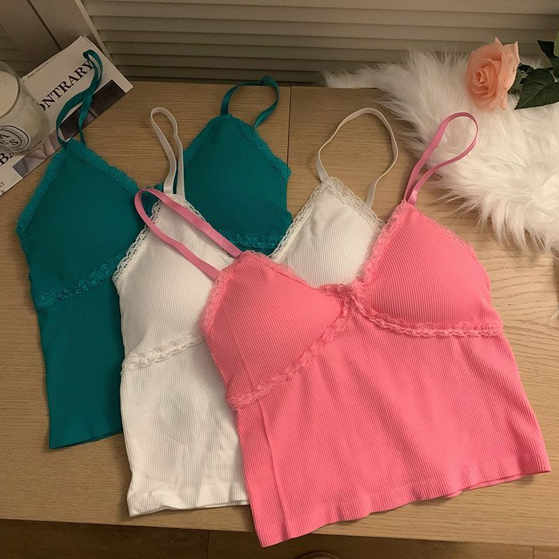 Camisola interior de encaje sexy para chica pura y caliente, top corto con espalda descubierta de verano 2023 para mujer