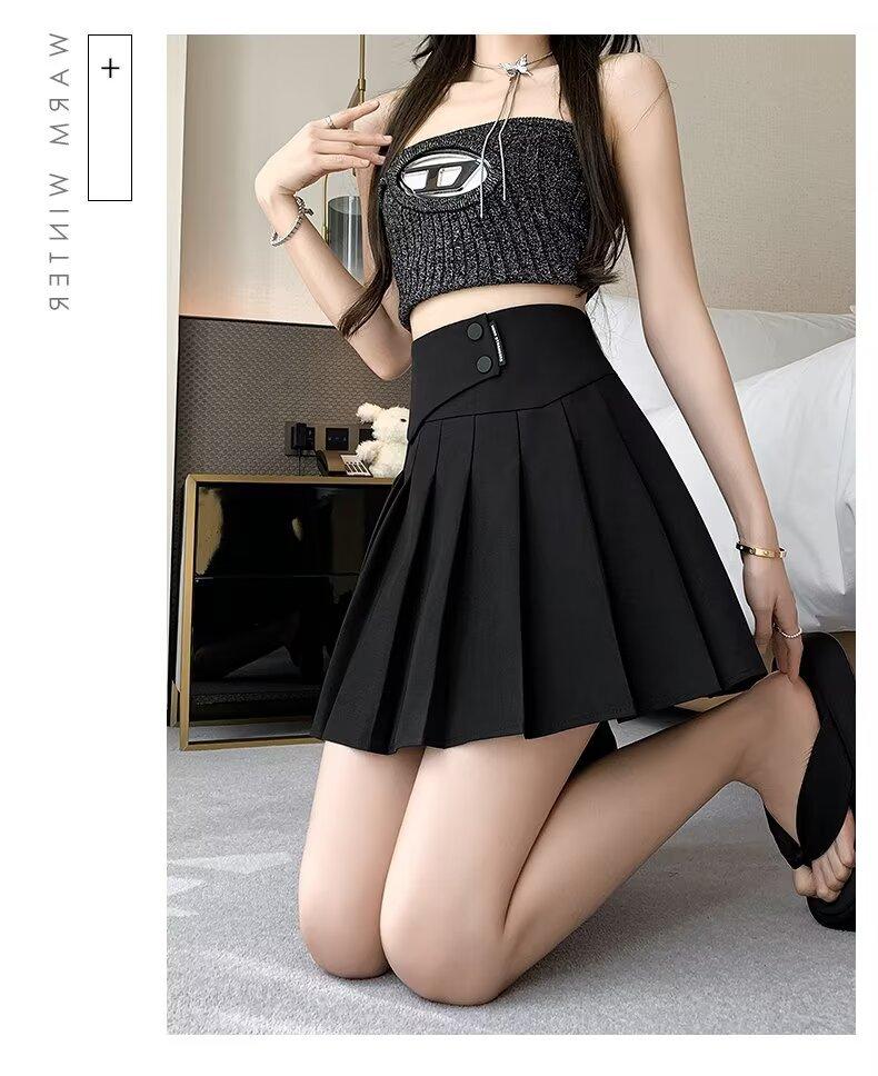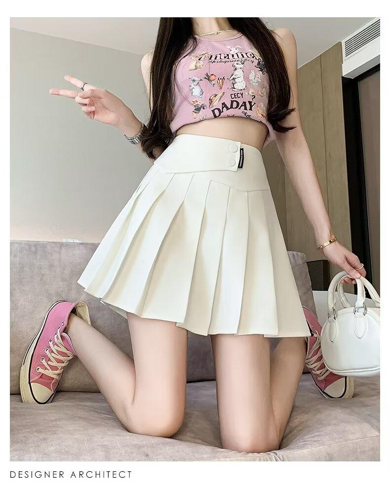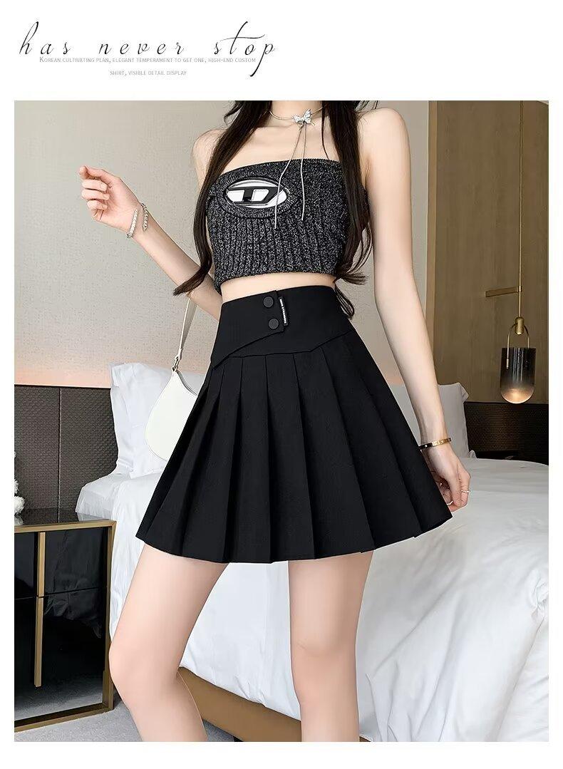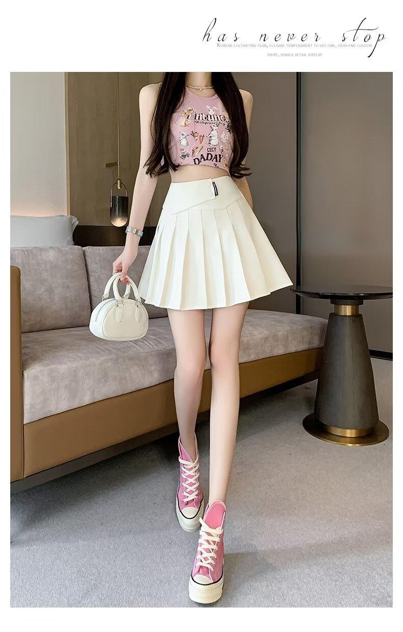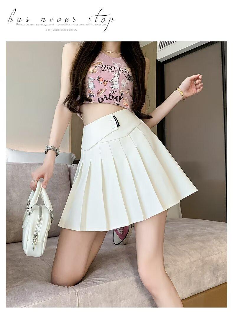 Falda plisada pequeña de verano, diseño versátil, cintura alta, adelgazante, línea A, falda informal antiexposición