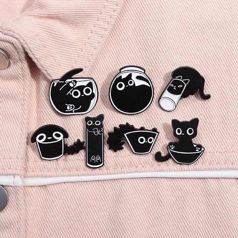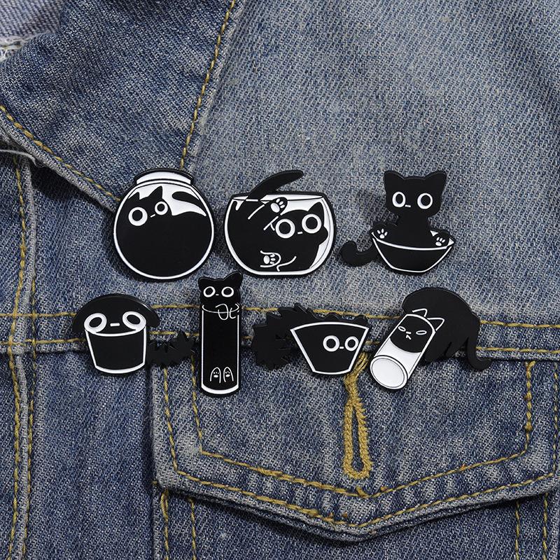 Broche de la Nueva Serie Creativa de Animales Europeos y Americanos de Amazon, Lindo Pin Metálico con Forma de Gato Negro