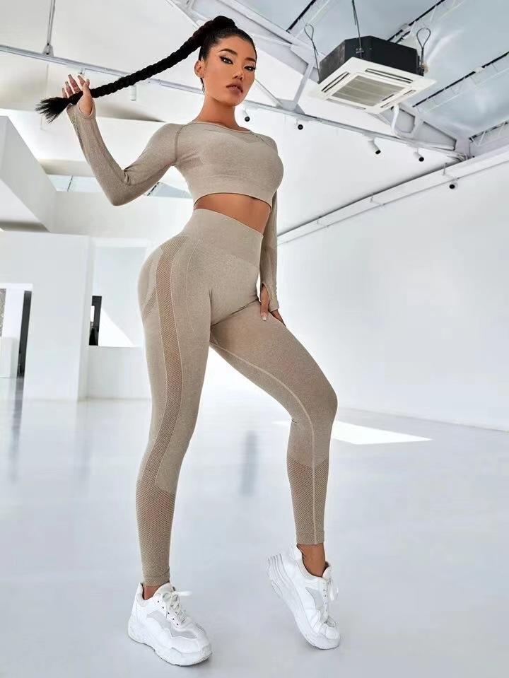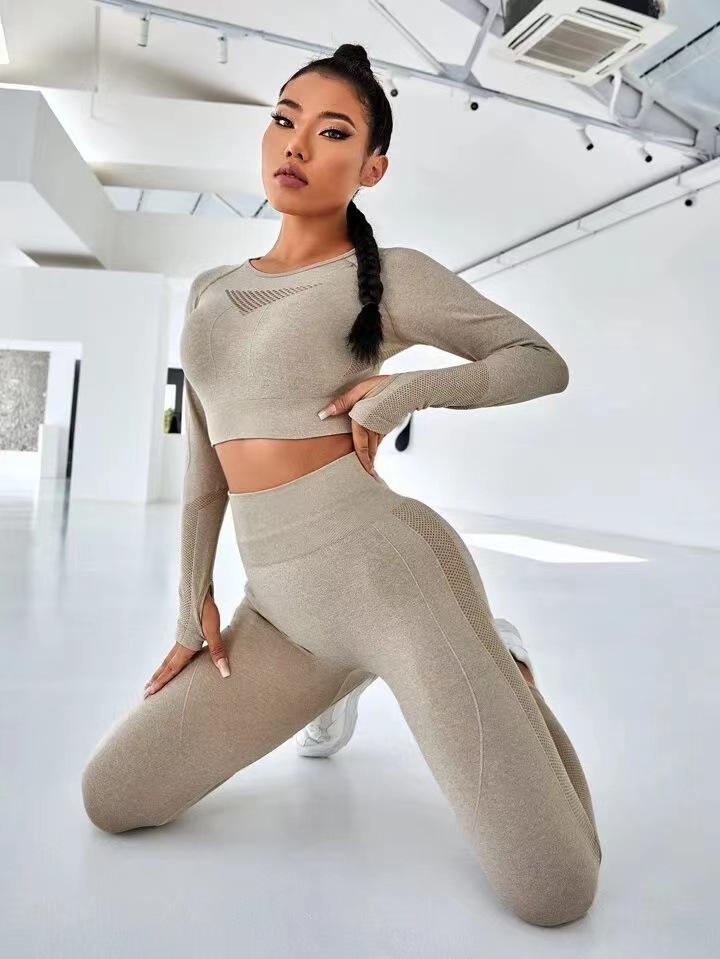 Conjunto de Pantalón Hueco de Manga Larga 2024 Ropa de Yoga para Entrenamiento Físico Deportivo al Aire Libre Pantalón Transpirable Levanta Glúteos Pantalón de Manga Larga para Mujer
