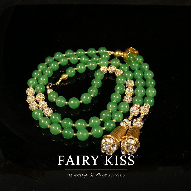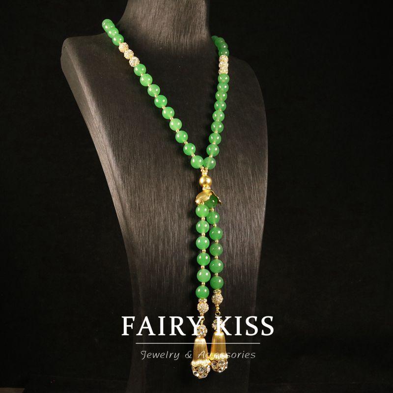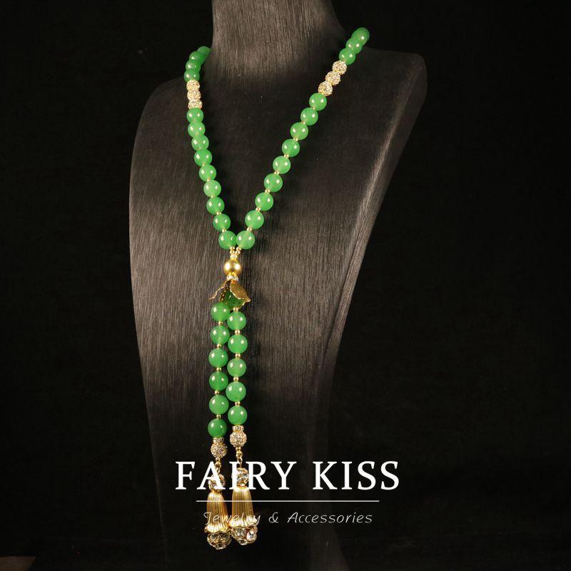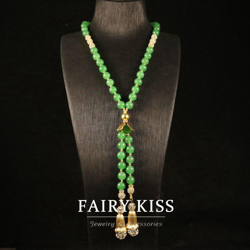 Collar de moda de estilo palaciego con cadena en Y, piedra verde exquisita, delicada, con diamantes densos, largo, personalidad, joyería que combina con todo