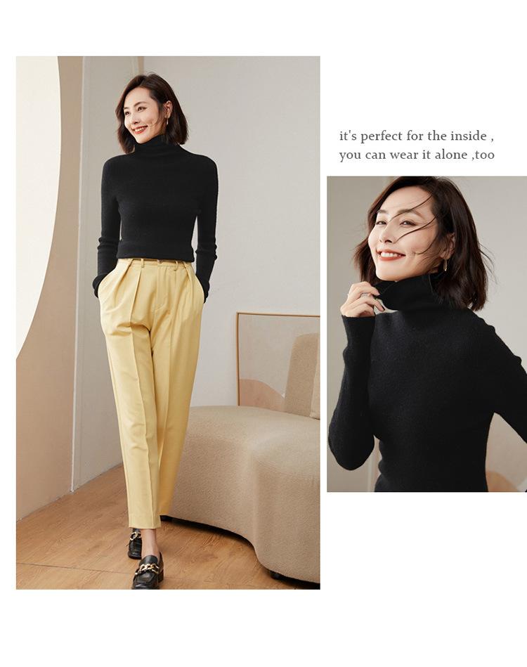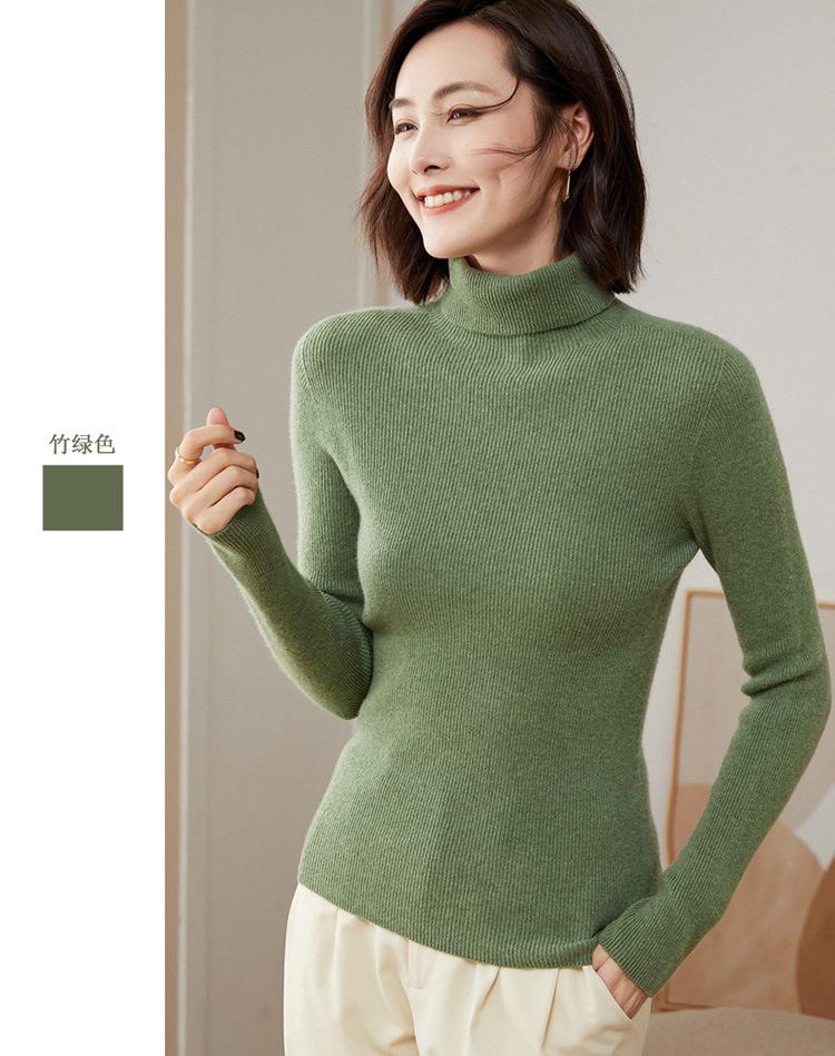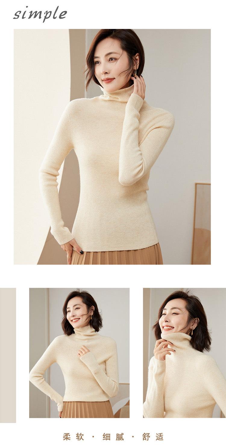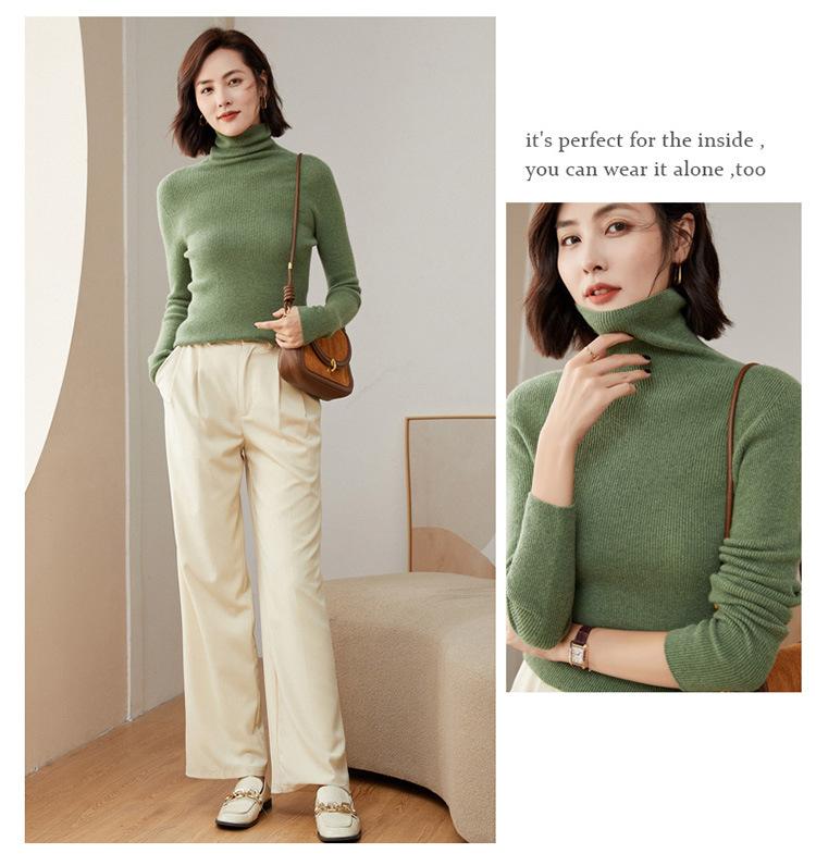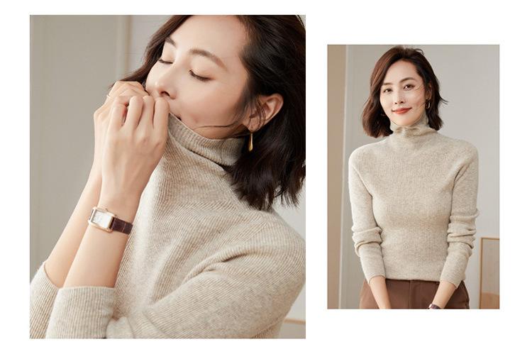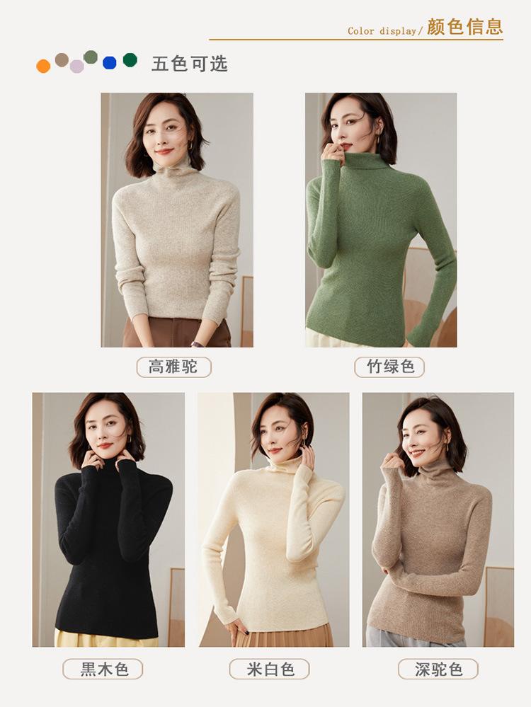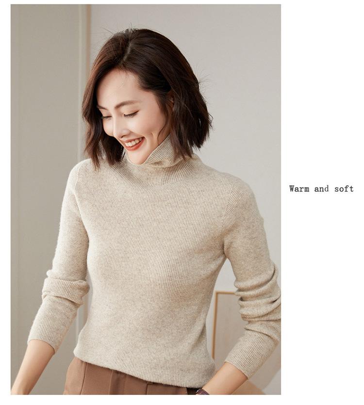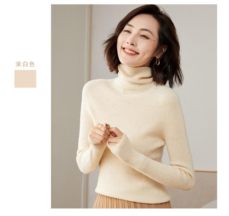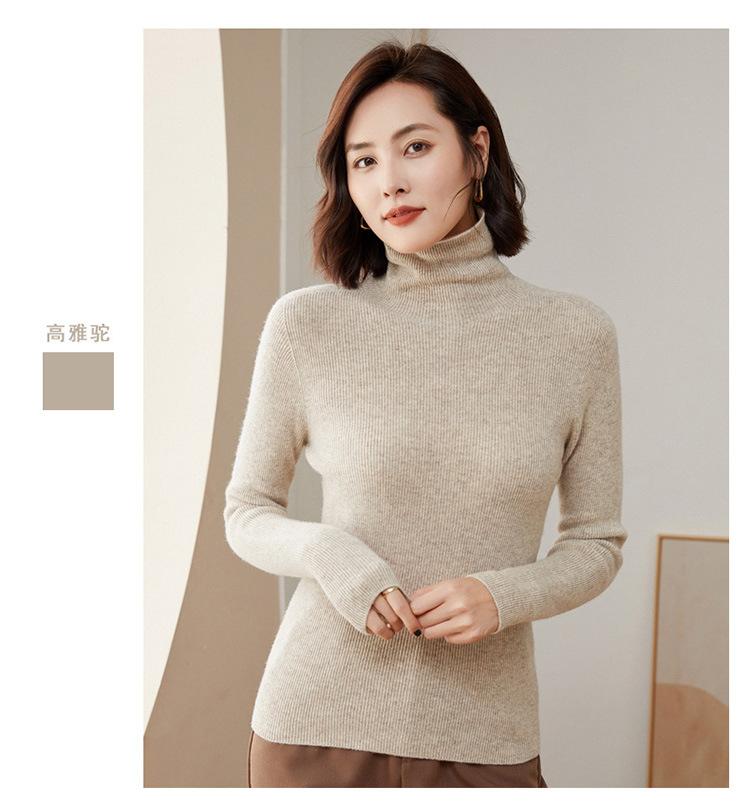 Suéter de primera línea sin costuras de cuello alto para mujer, jersey ajustado de punto de cachemira para base, venta al por mayor