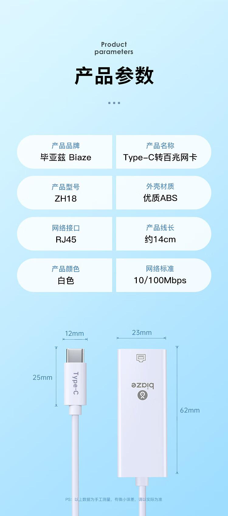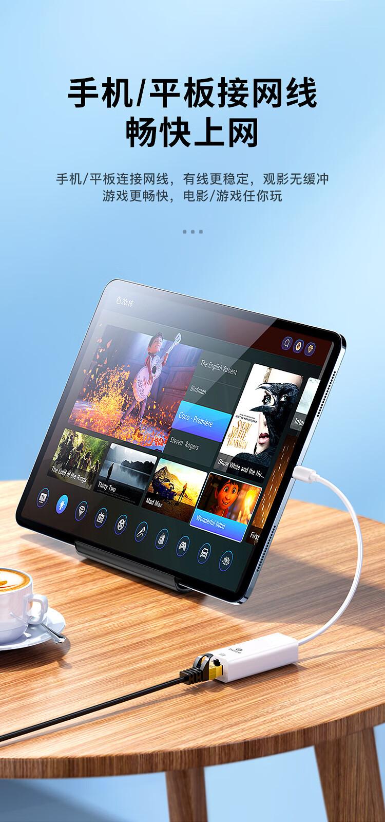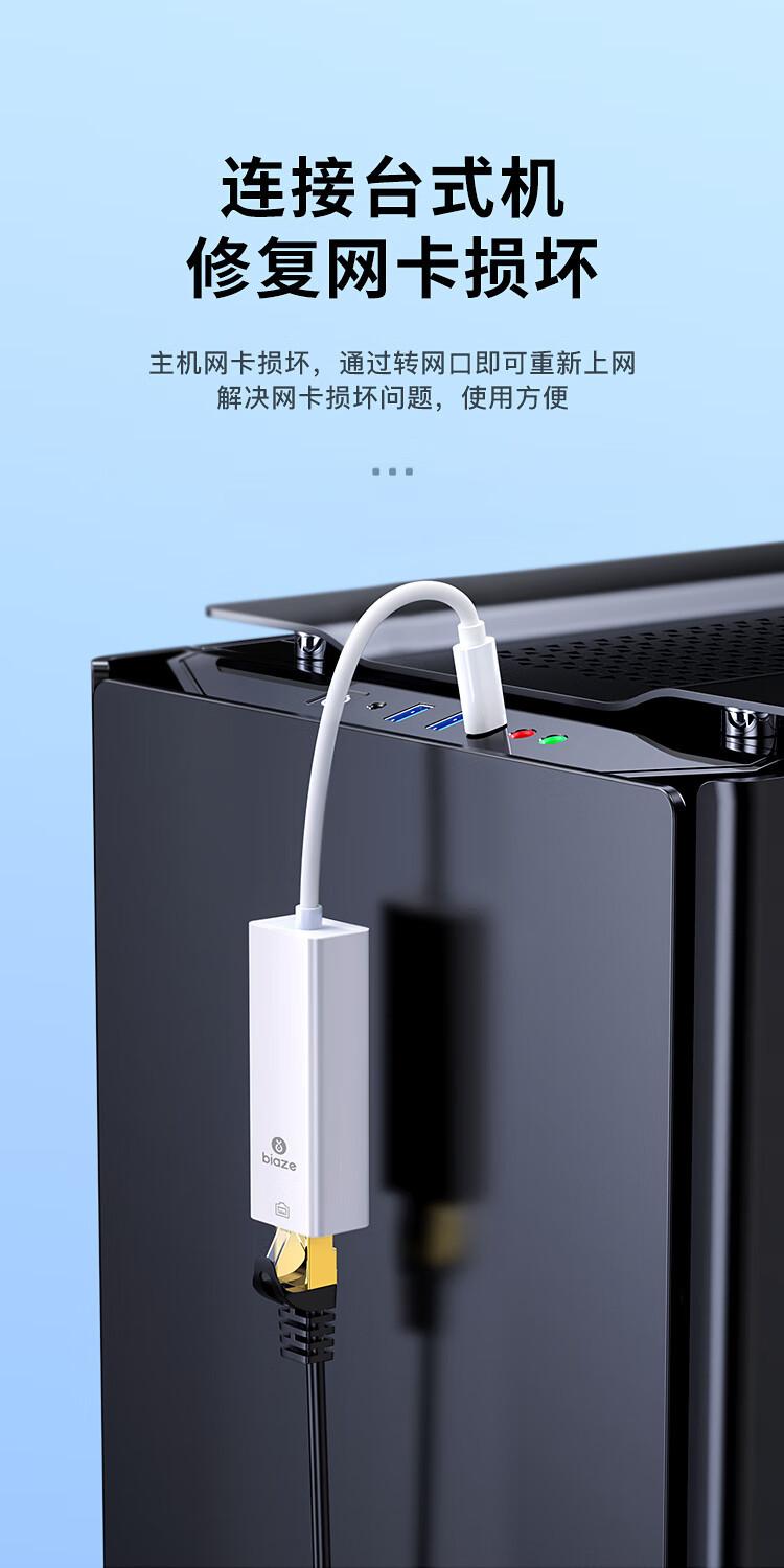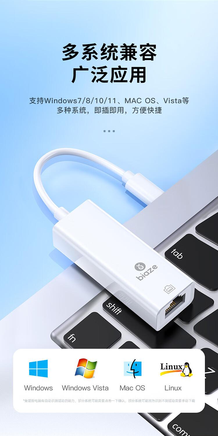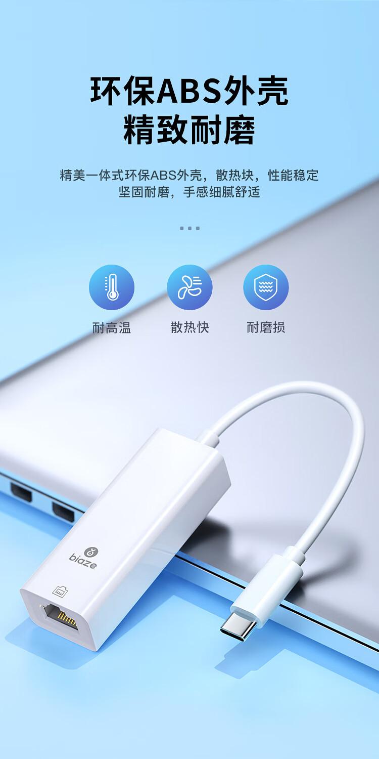 Biaz 15 convertidor Ethernet Tipo-C a puerto de red RJ45 USB-C Cableado Tarjeta de red de 100 m sin controlador