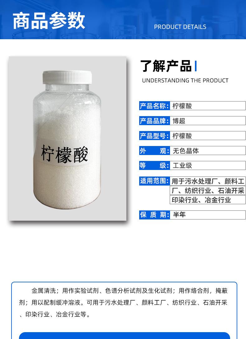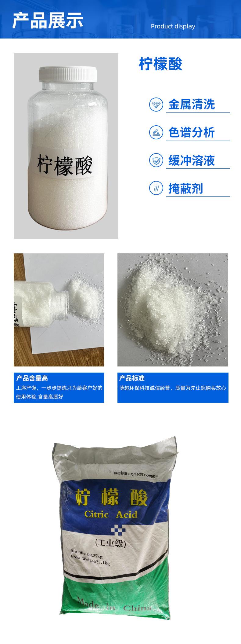 Fabricantes de ácido cítrico industrial, venta al por mayor, tratamiento localizado de aguas residuales, agente de limpieza de ácido cítrico de grado industrial de alta pureza al 99%.