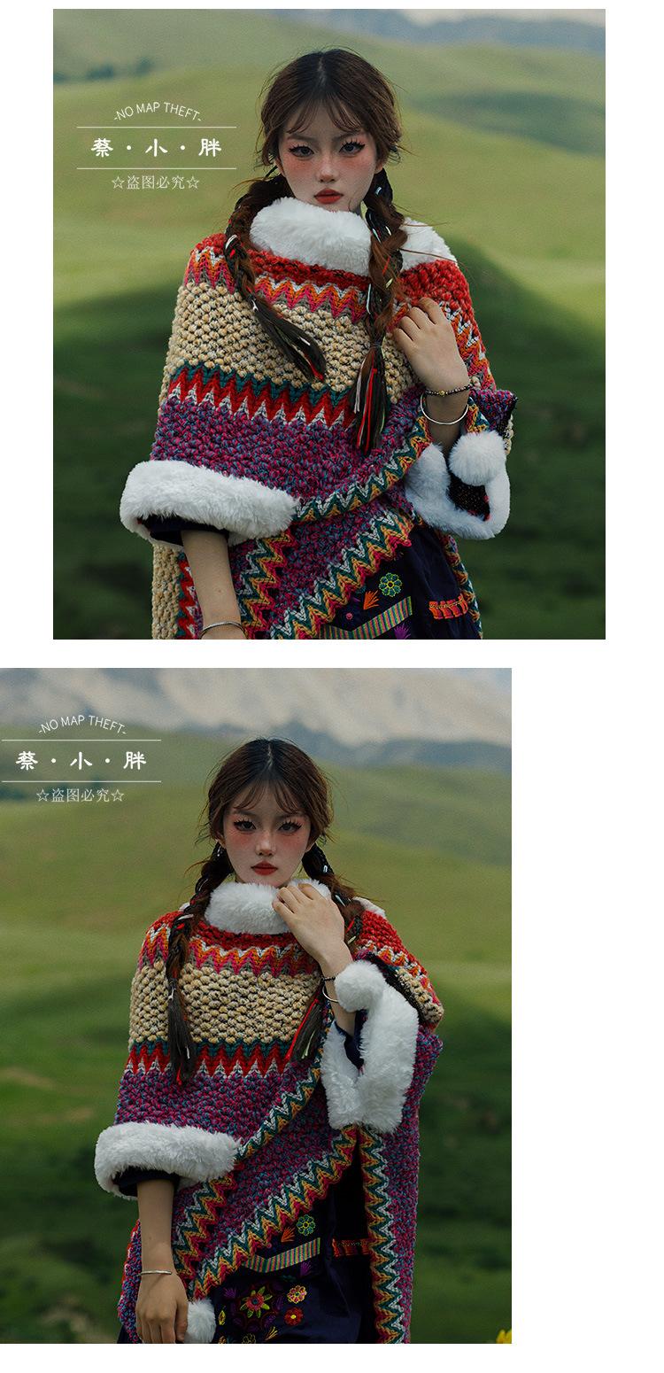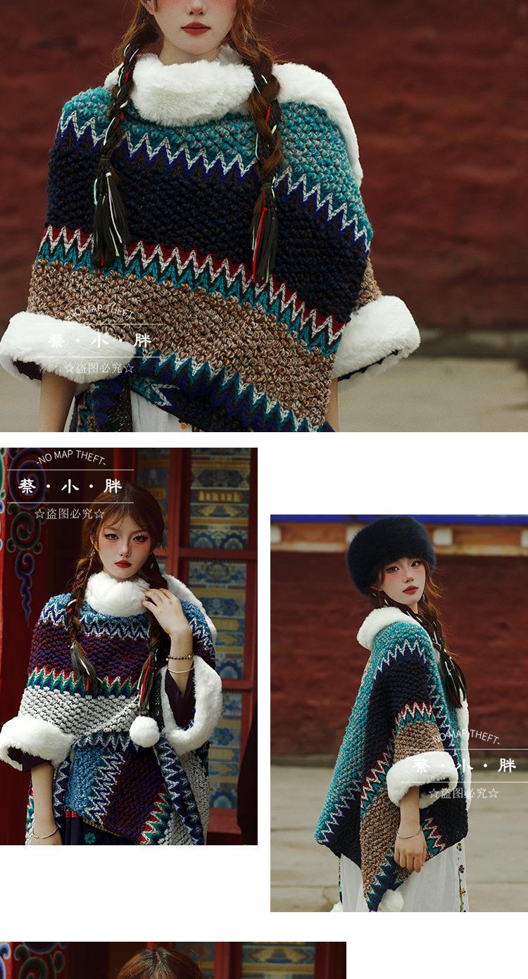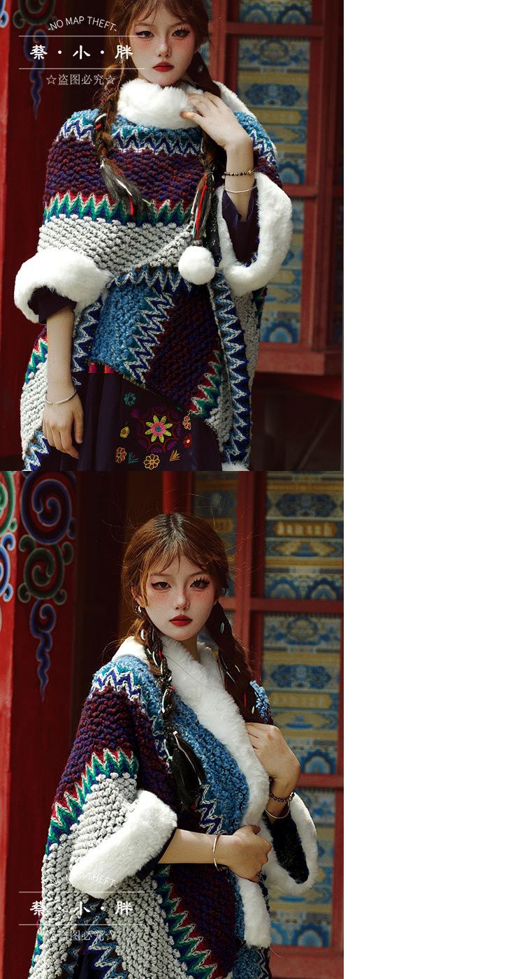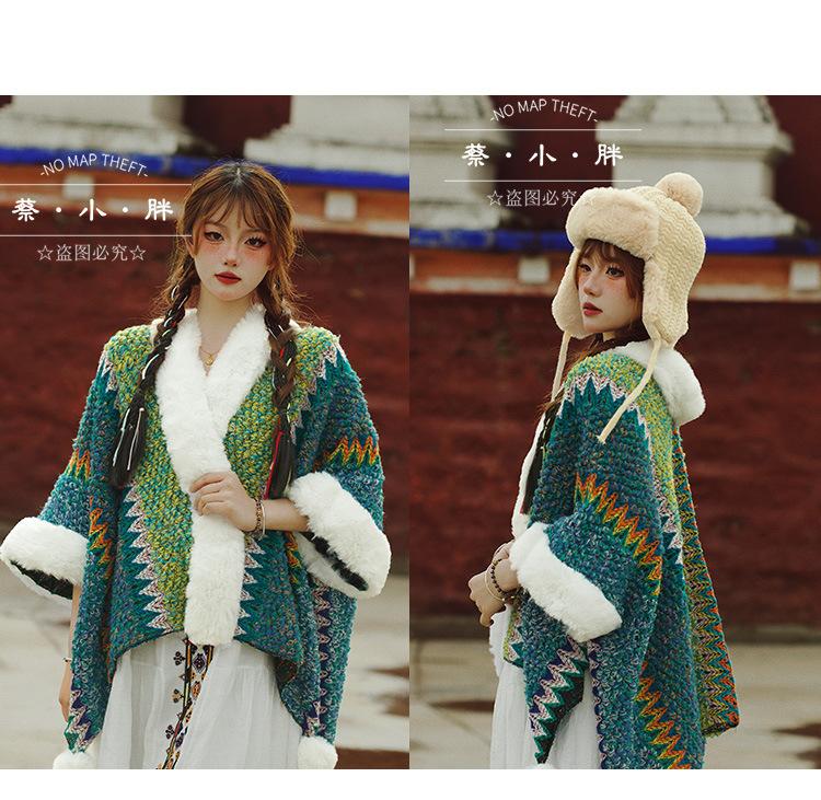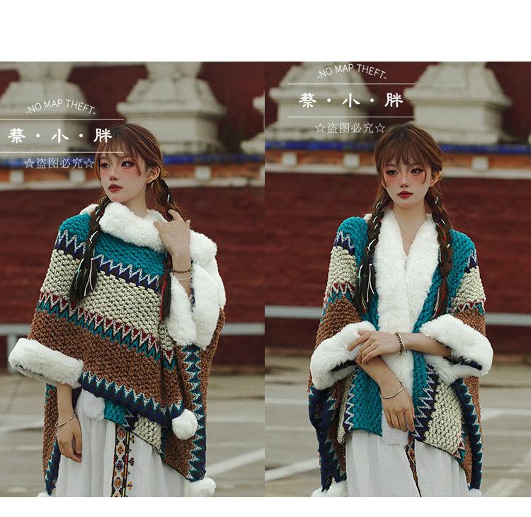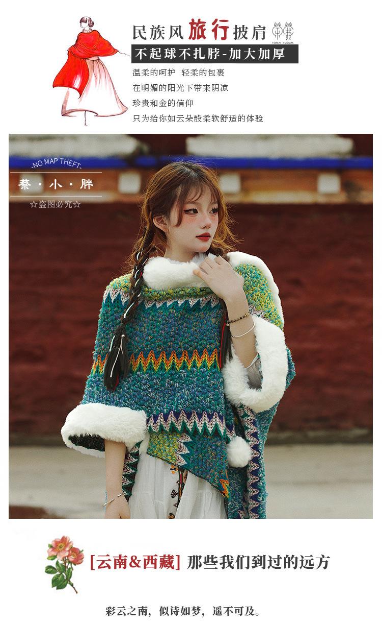 Cuello de piel engrosado de calidad Yunnan fotografía de viajes chal femenino estilo étnico Xinjiang Sichuan Xizang occidental ropa exterior capa capa
