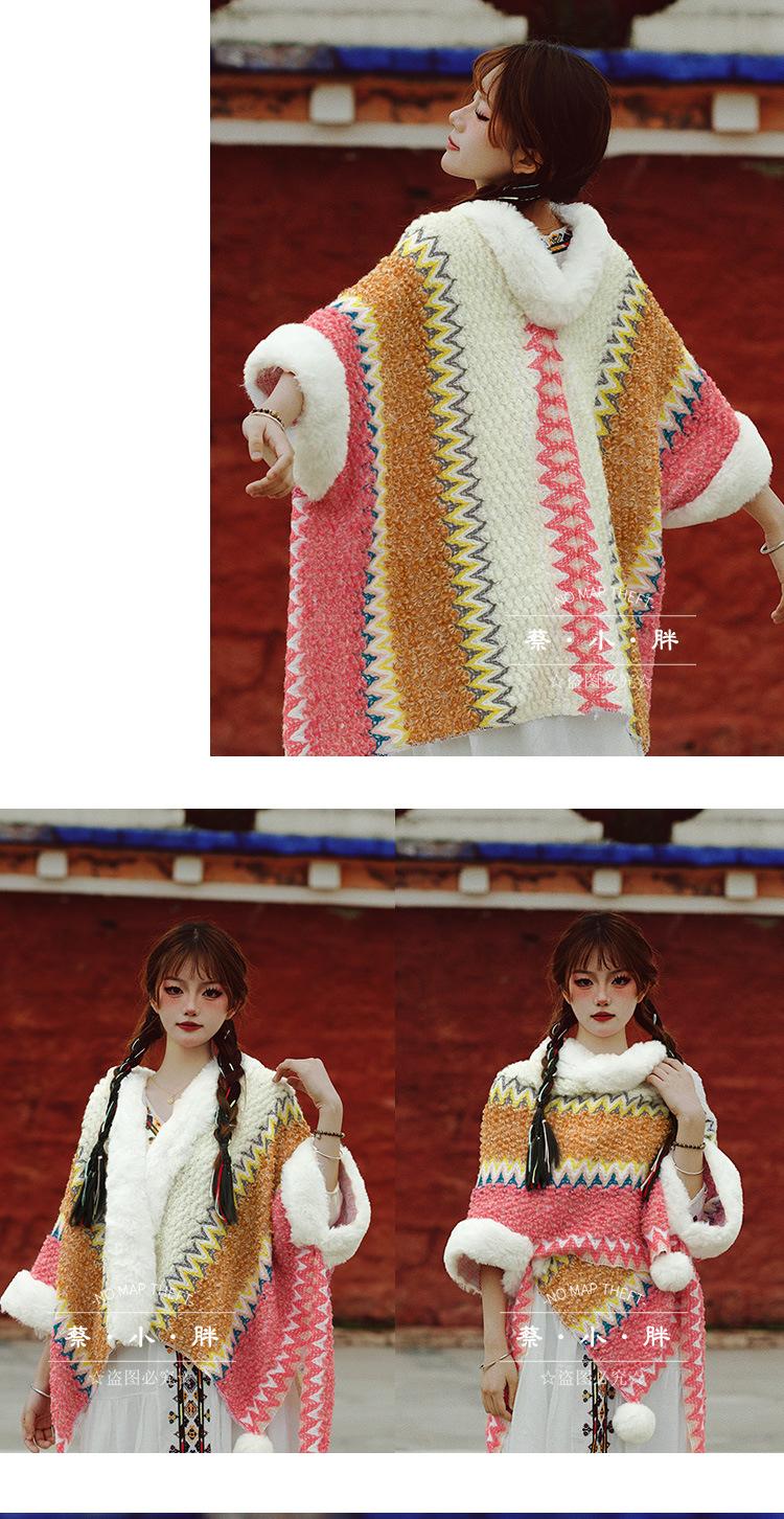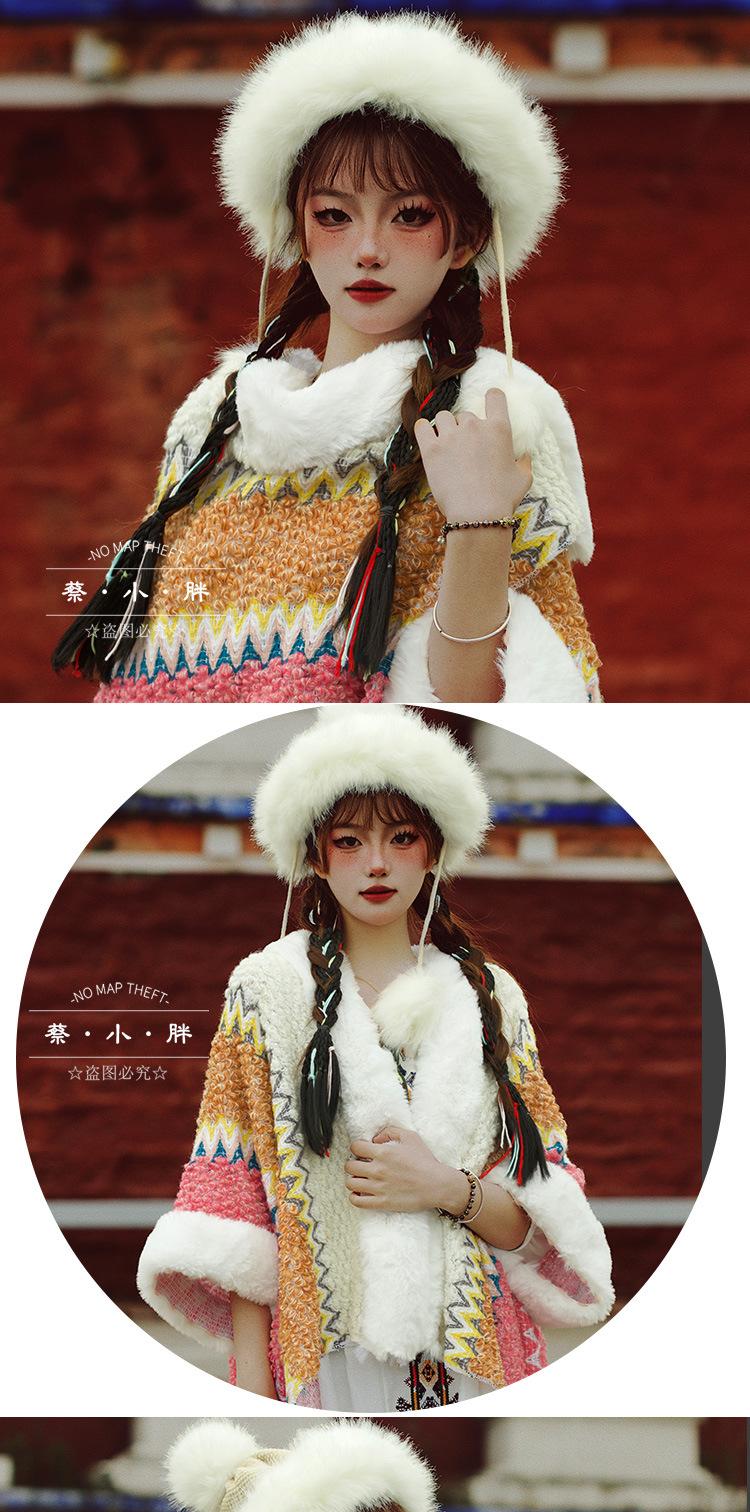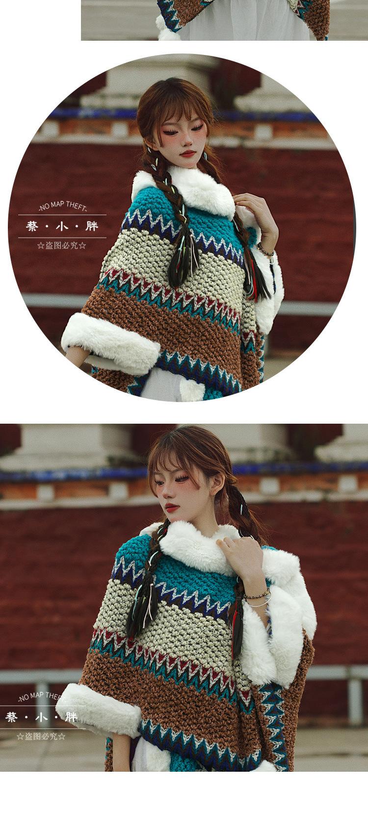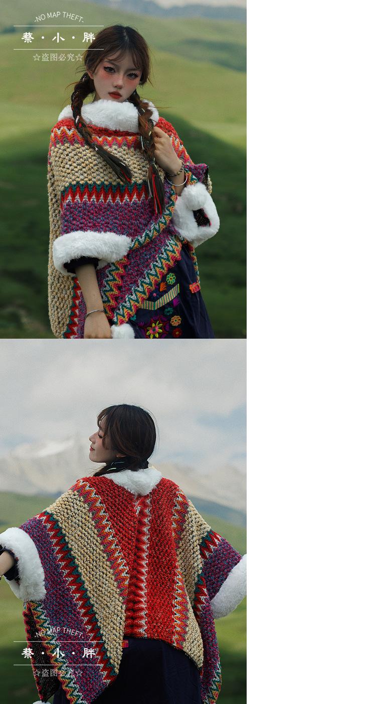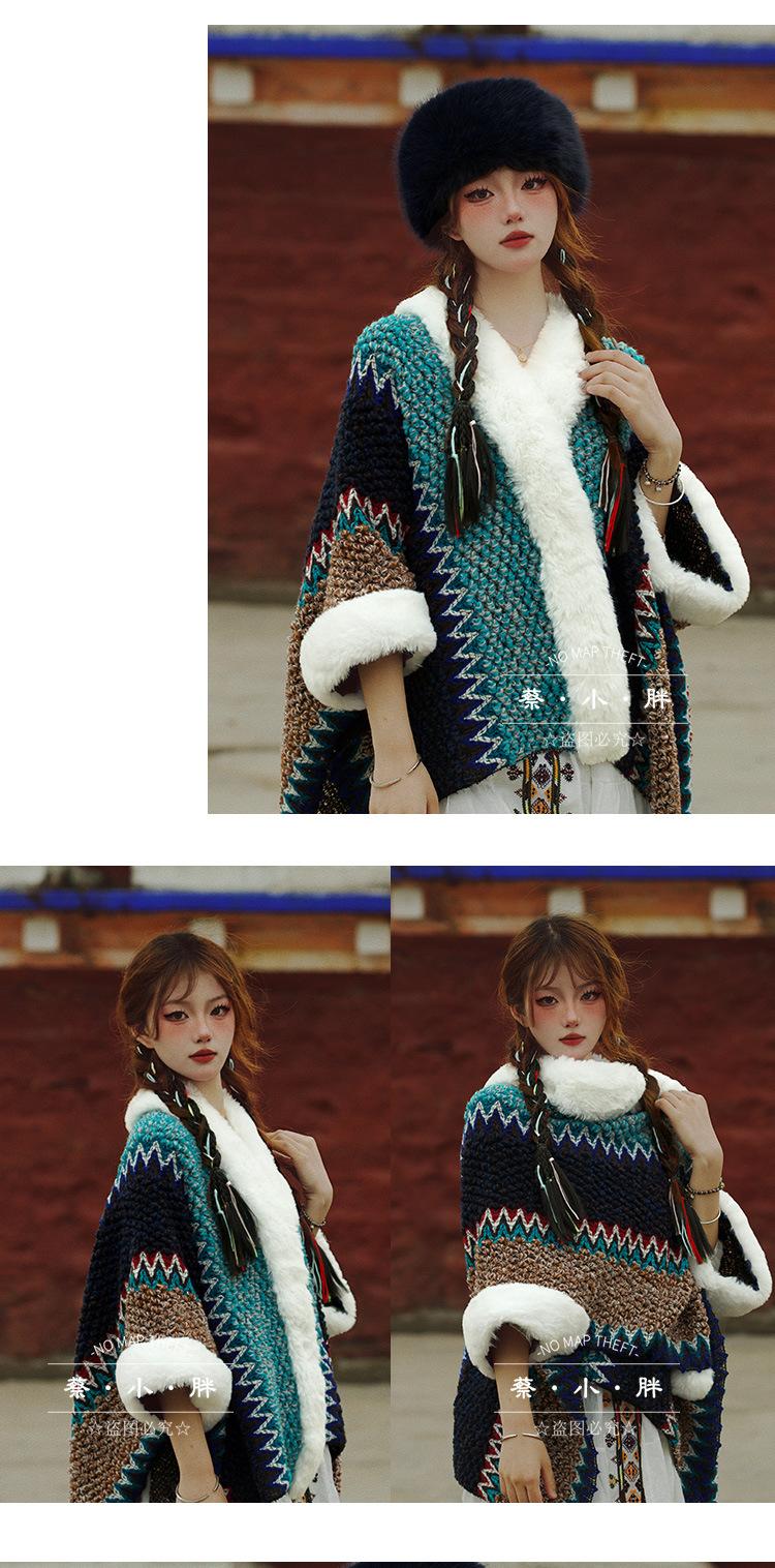 Cuello de piel engrosado de calidad Yunnan fotografía de viajes chal femenino estilo étnico Xinjiang Sichuan Xizang occidental ropa exterior capa capa