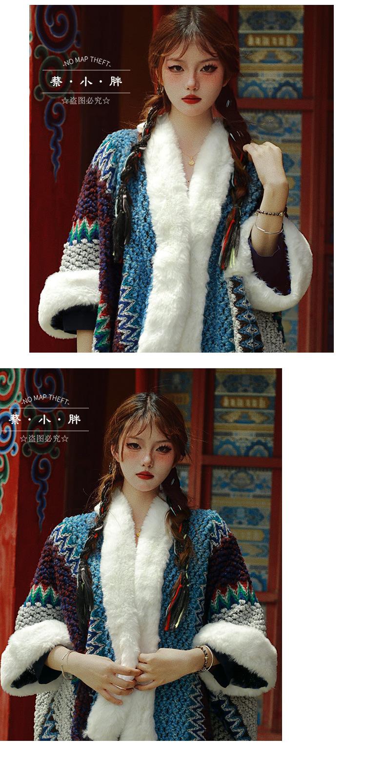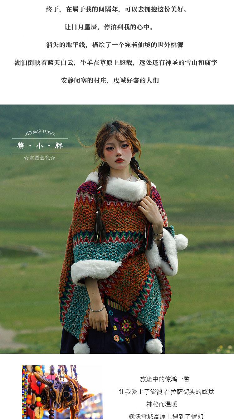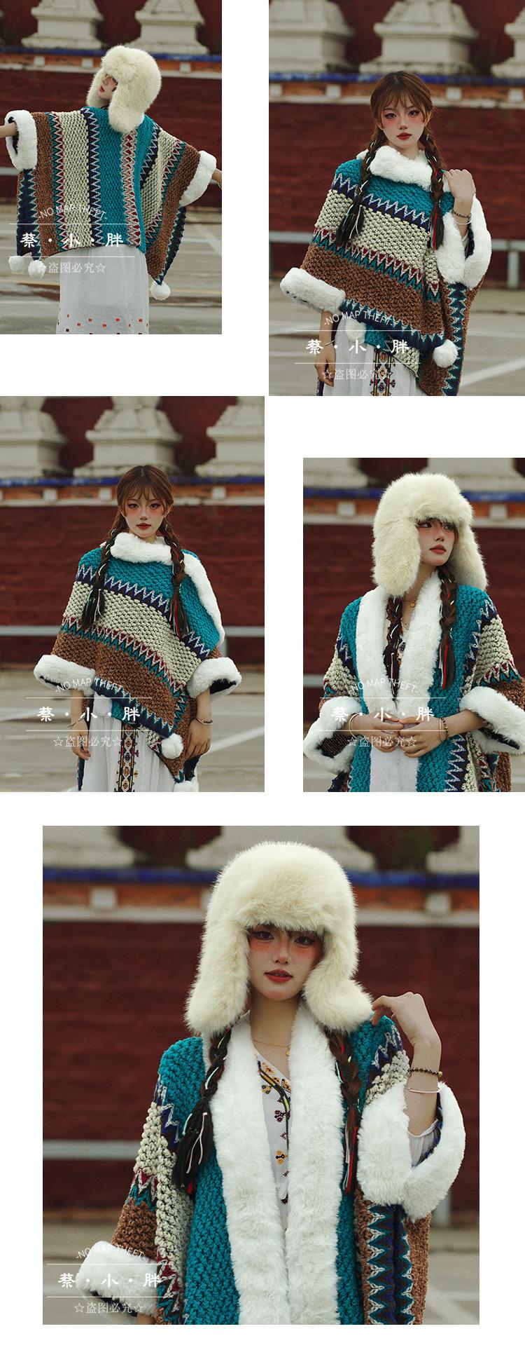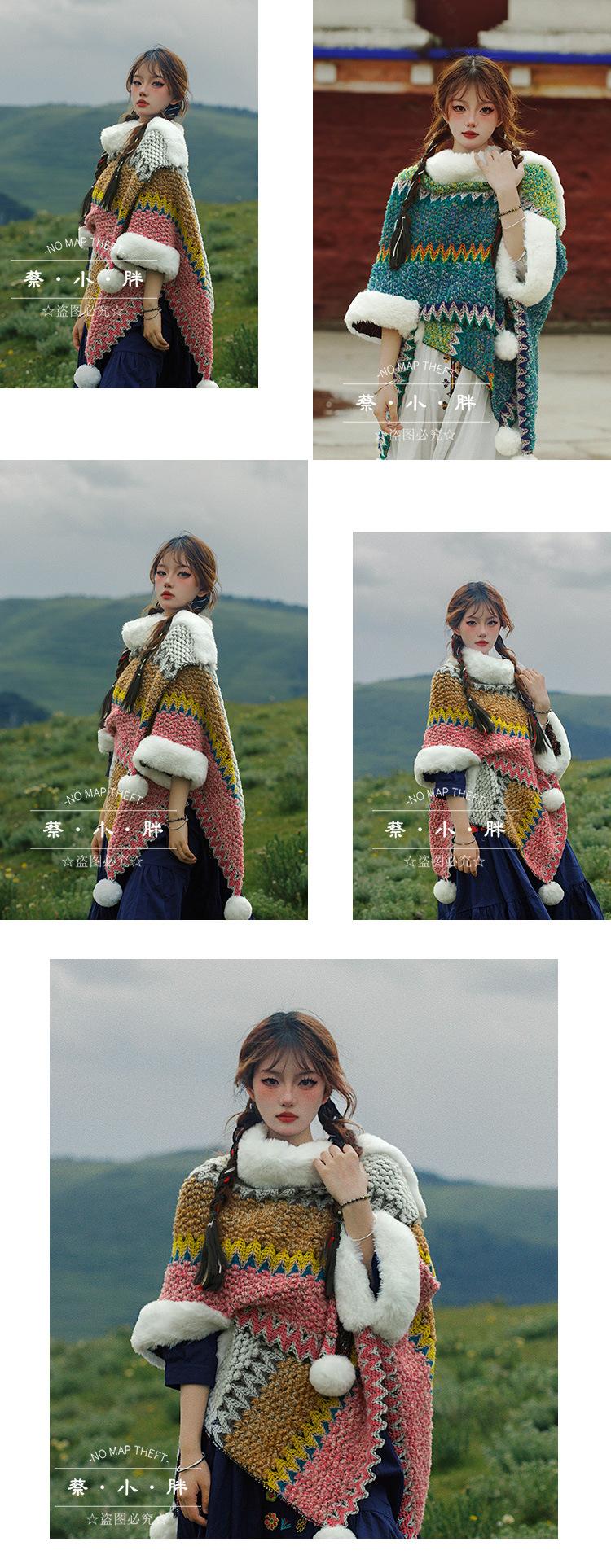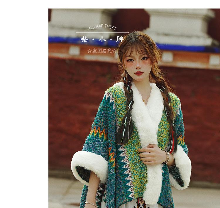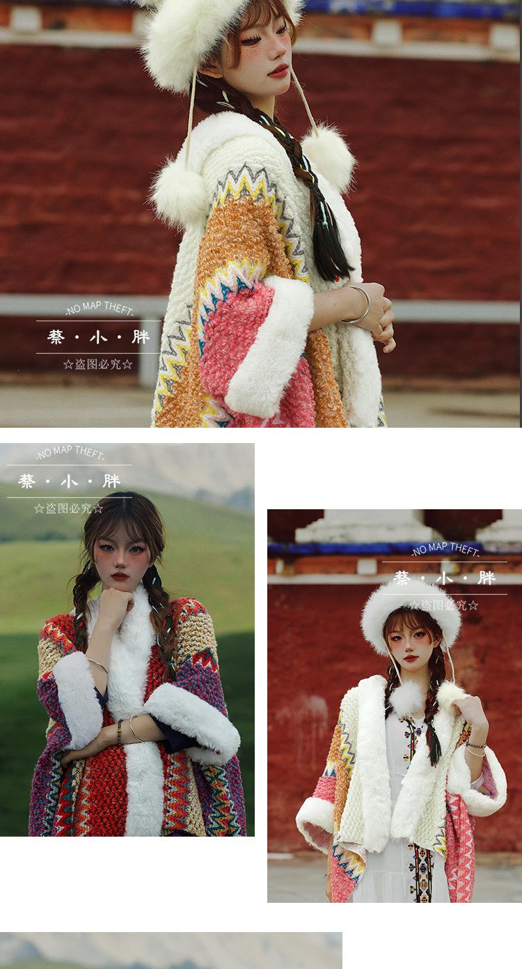 Cuello de piel engrosado de calidad Yunnan fotografía de viajes chal femenino estilo étnico Xinjiang Sichuan Xizang occidental ropa exterior capa capa