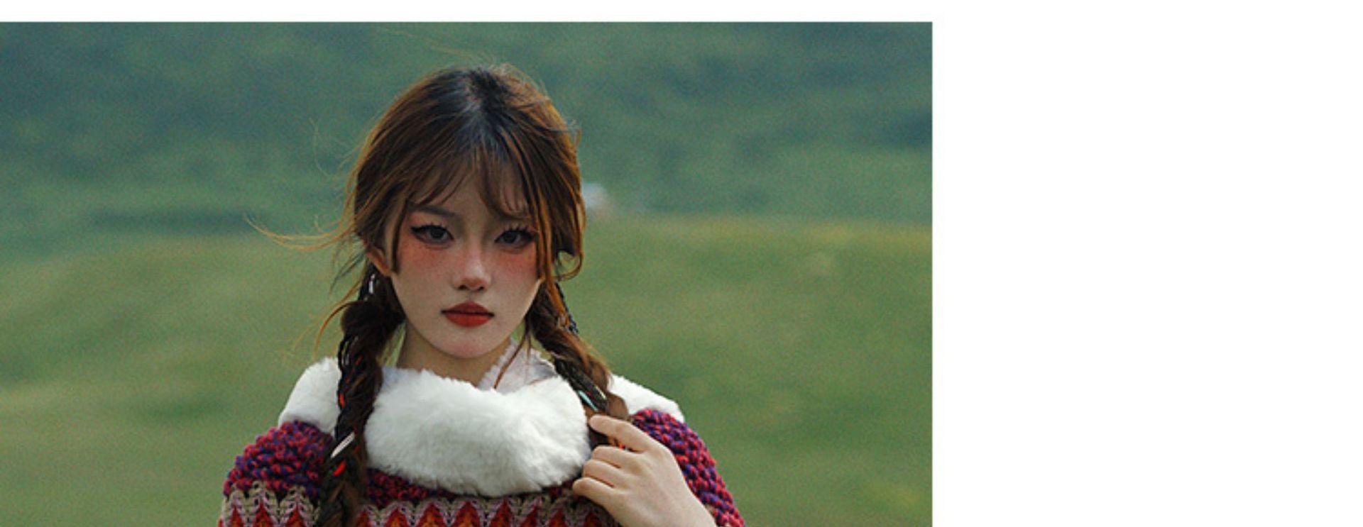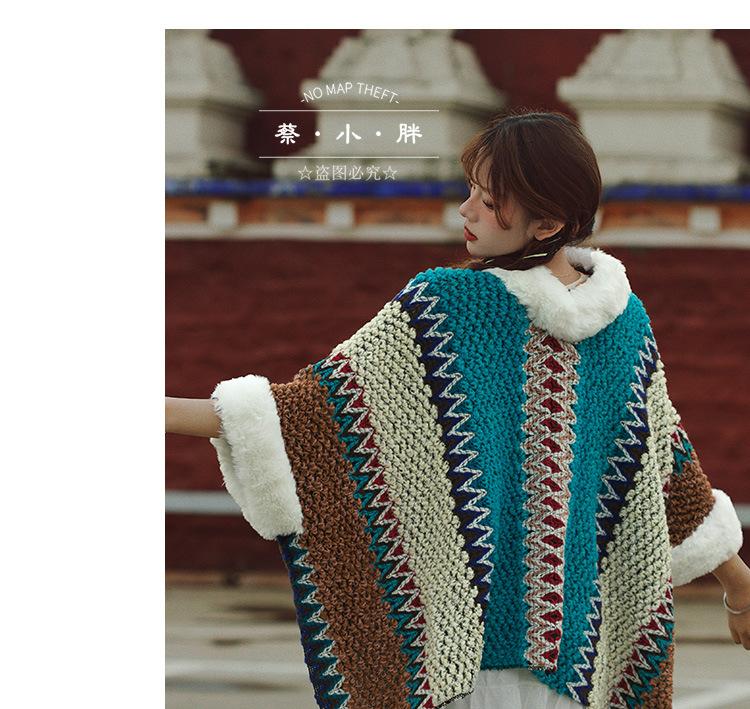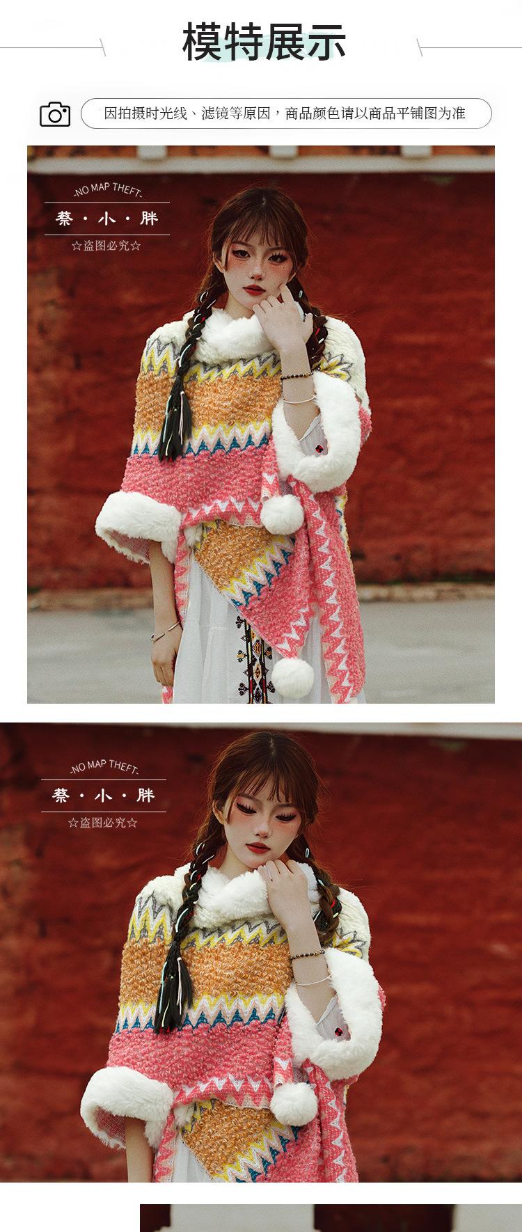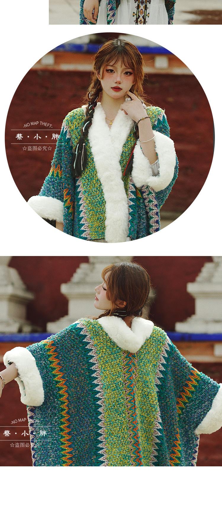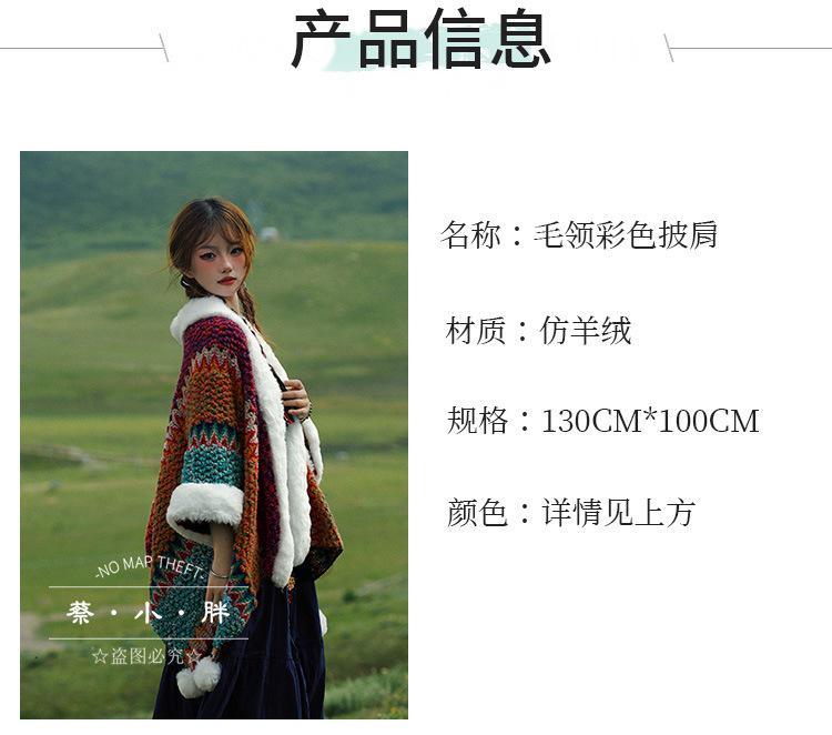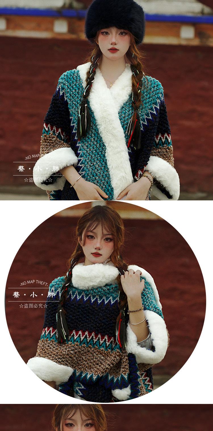 Cuello de piel engrosado de calidad Yunnan fotografía de viajes chal femenino estilo étnico Xinjiang Sichuan Xizang occidental ropa exterior capa capa