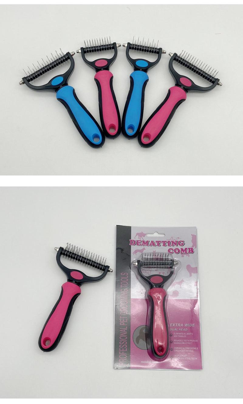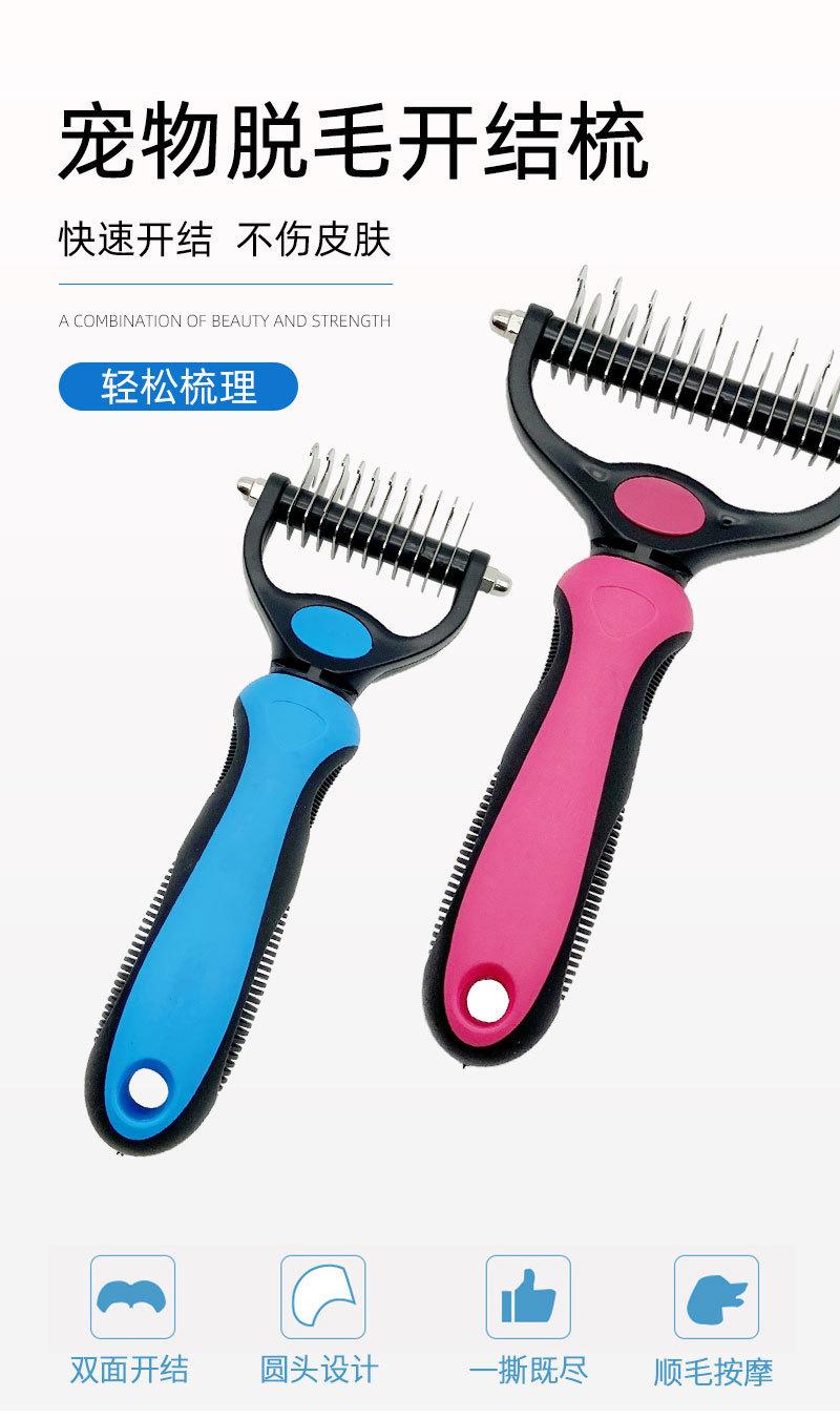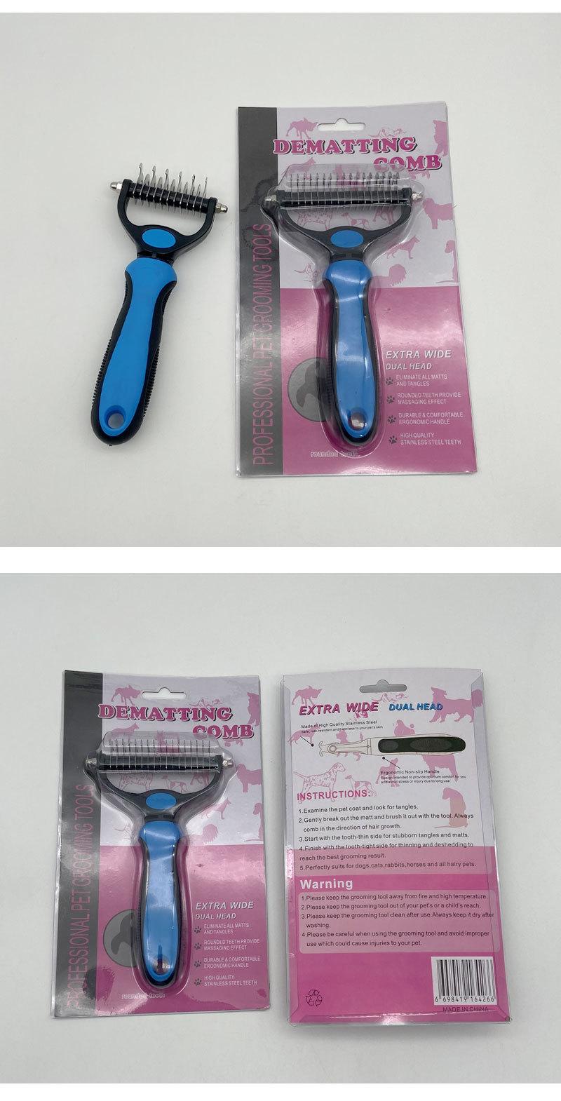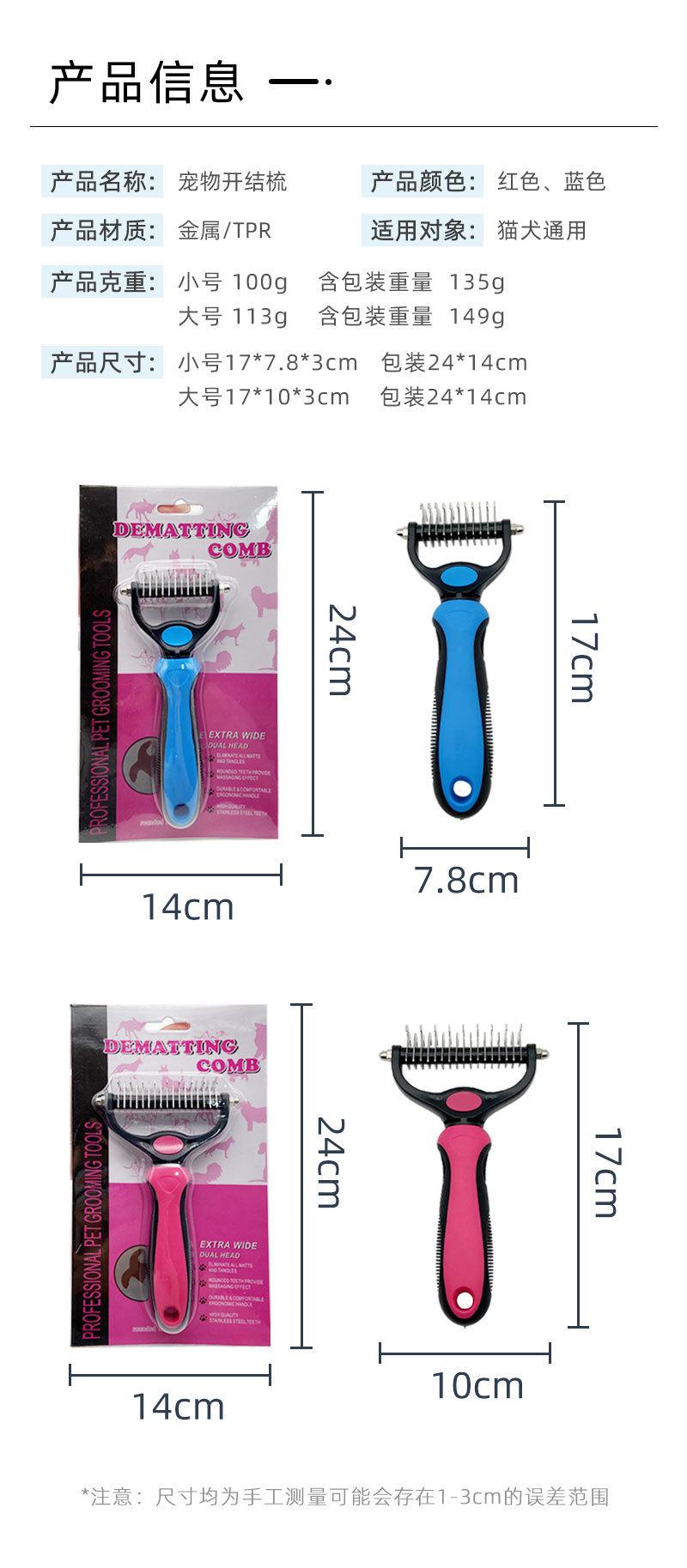 Peine de nudos de belleza para mascotas de doble cara transfronterizo, peine para pelo de gato, rastrillo de acero inoxidable para quitar pelo de Teddy, suministros de cuchillo peine para perro