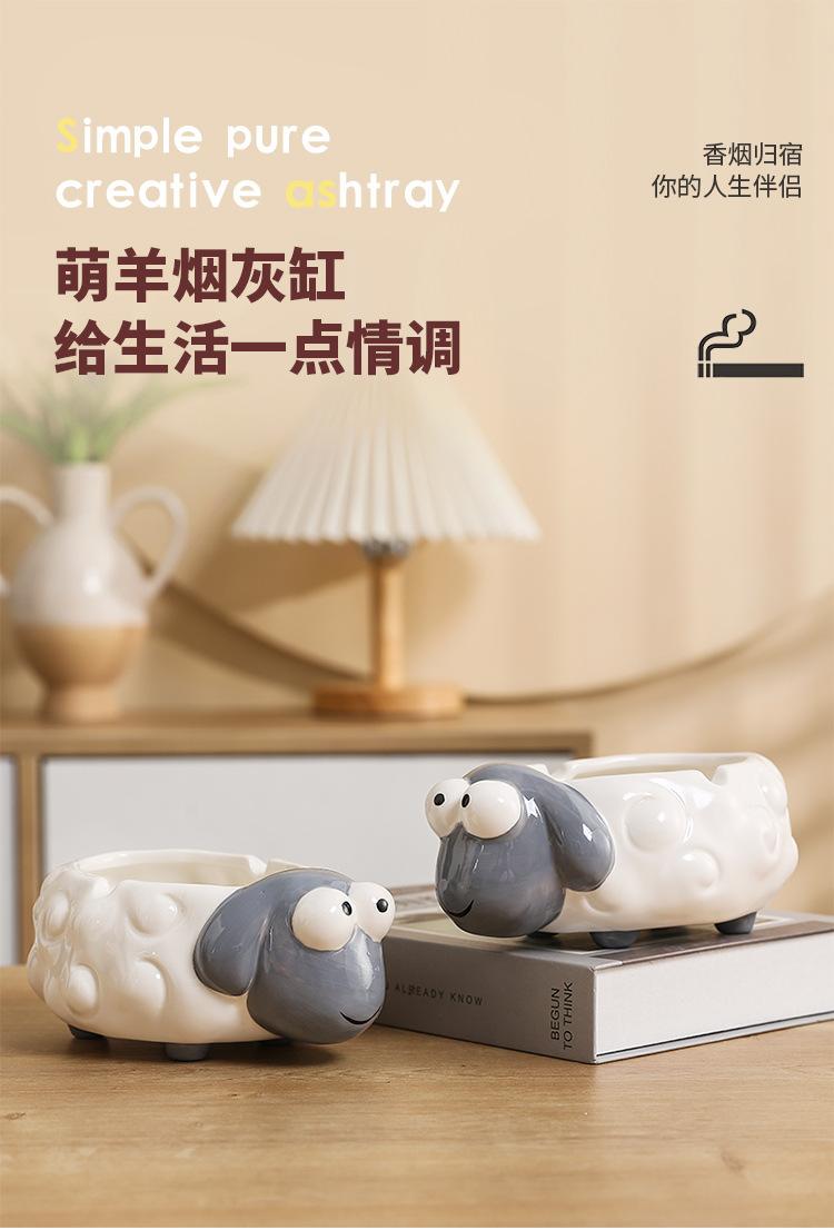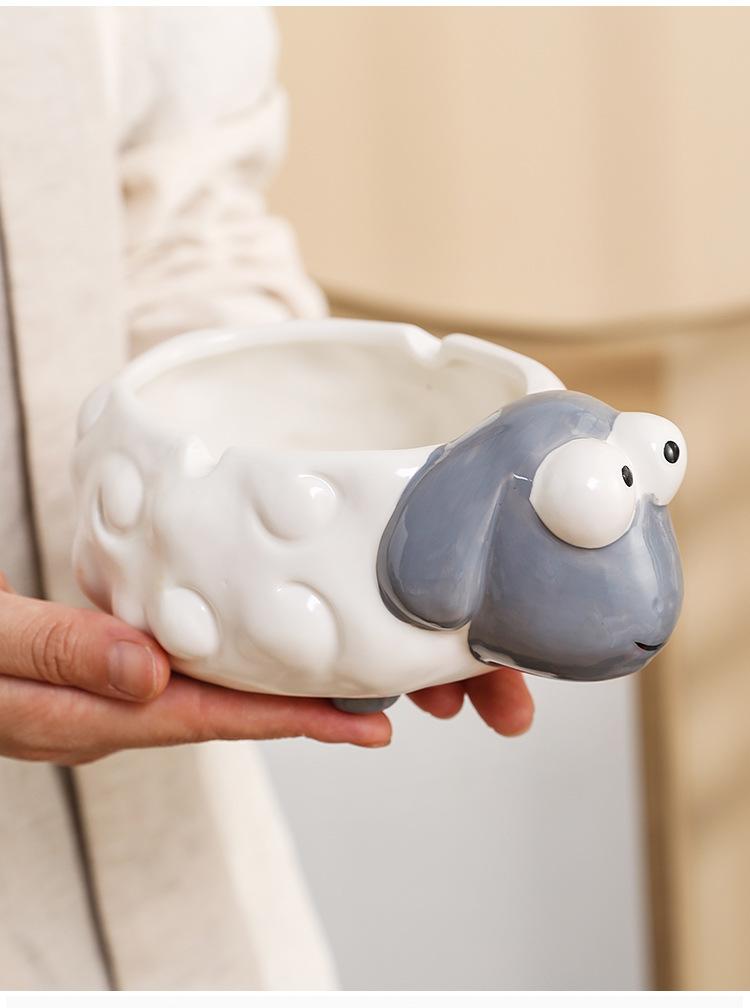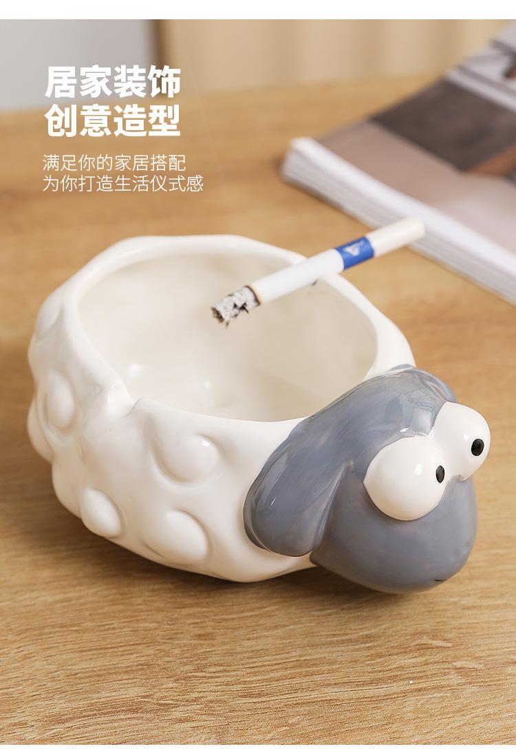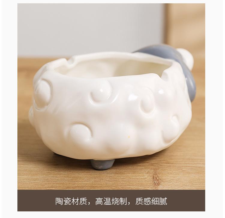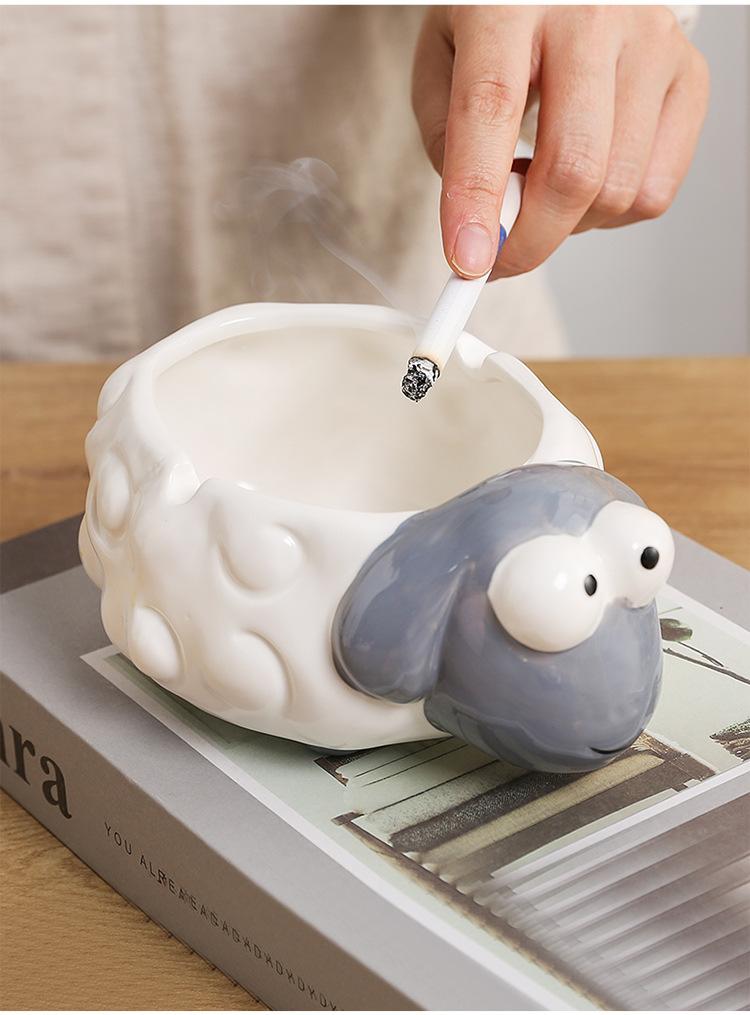 Cenicero de Cerámica Adornos de Escritorio Pequeños Lindo Cenicero de Mesa de Café para el Hogar Cordero de Dibujos Animados Suministros de Decoración para el Hogar Porcelana Blanca