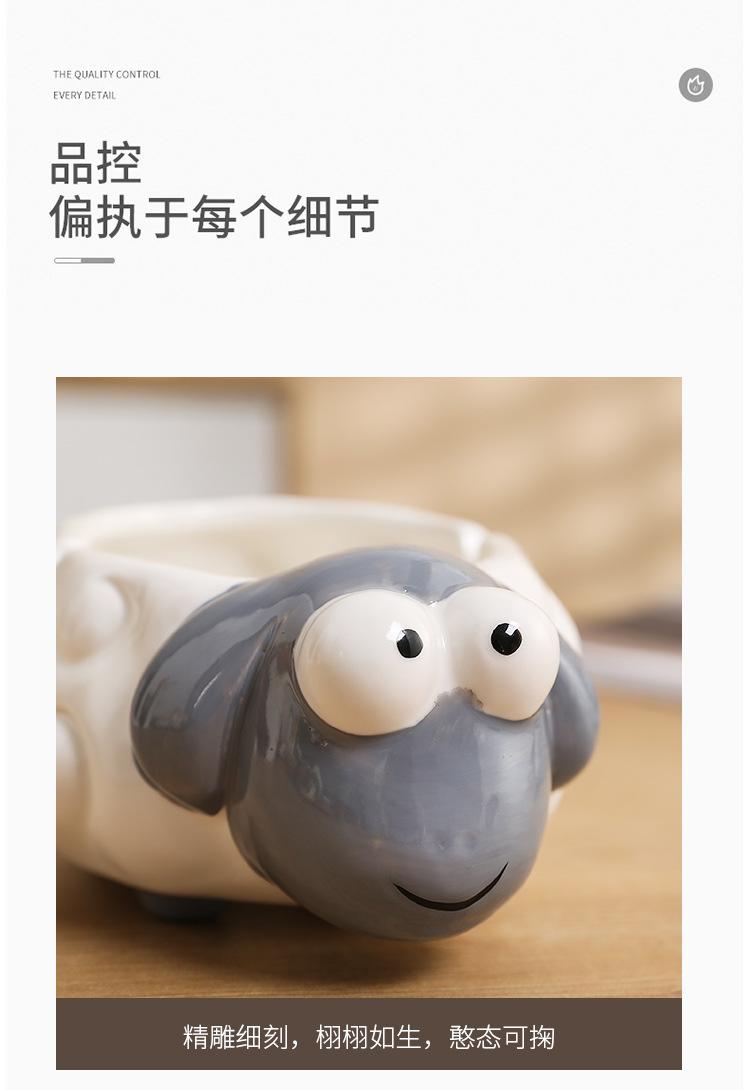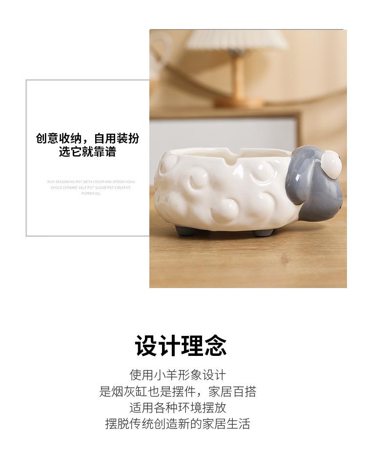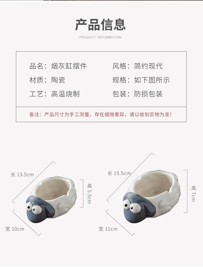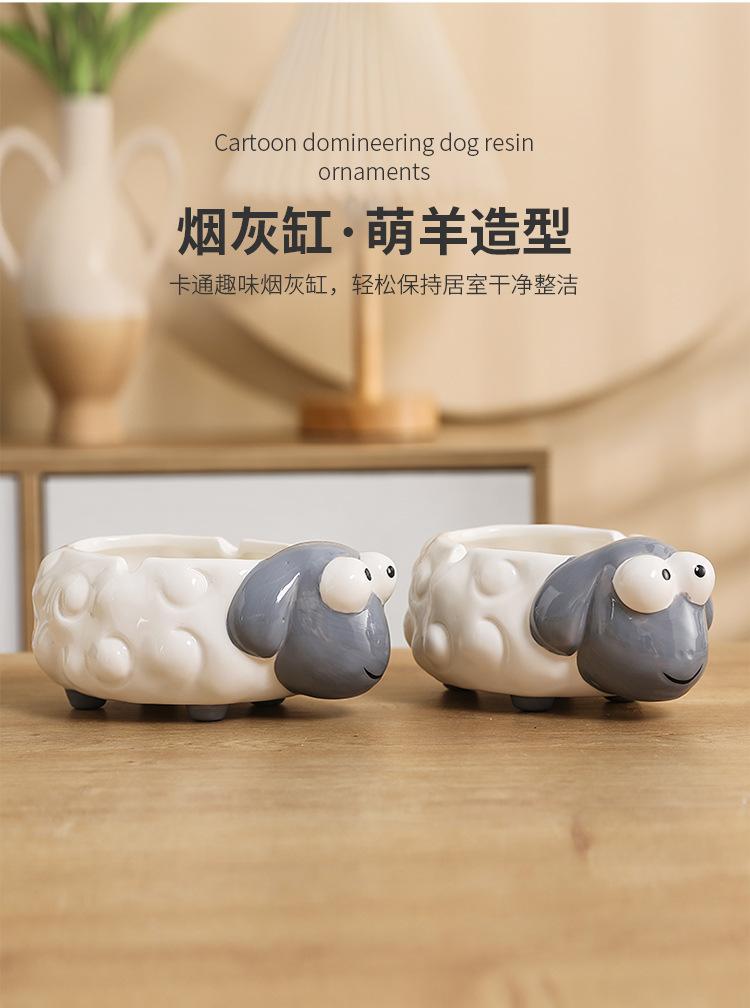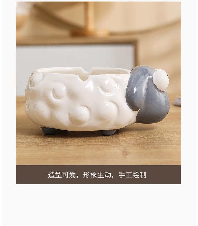 Cenicero de Cerámica Adornos de Escritorio Pequeños Lindo Cenicero de Mesa de Café para el Hogar Cordero de Dibujos Animados Suministros de Decoración para el Hogar Porcelana Blanca