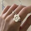 Lindo Anillo de Flor para Mujer, Elegante a la Moda, Anillo Abierto de Plata S925 Pesado Cepillado, Tendencia Popular de Anillo para Dedo Índice