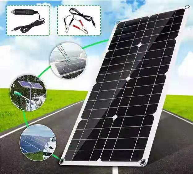 Panel Solar Monocristalino de 25W 18V, Cargador Solar Flexible Monocristalino DC de Doble USB 12V/5V, para Cargador de Batería de Coche RV