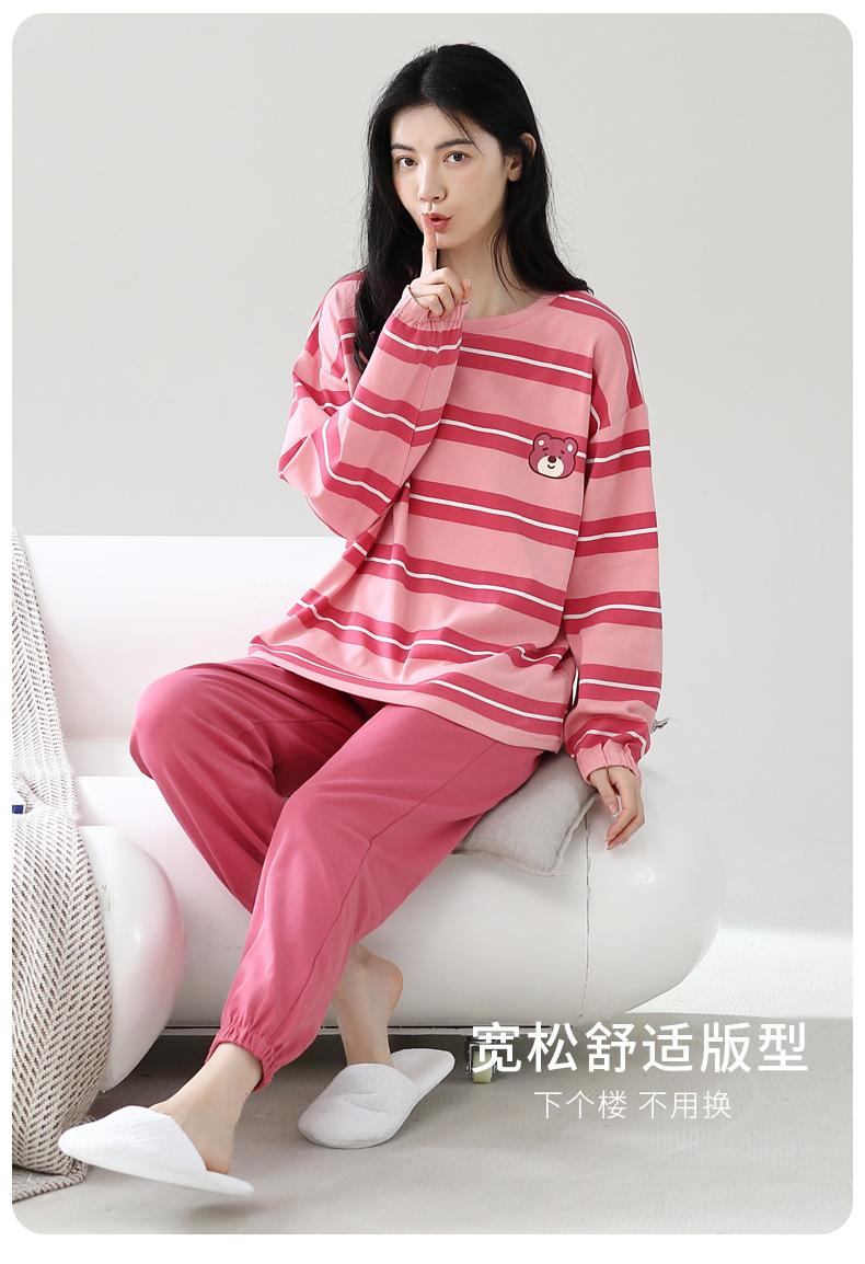 Pijamas de mujer de primavera y otoño, jersey de algodón de manga larga, holgado, de talla grande, nuevo traje de algodón para mujer para otoño e invierno, ropa de casa