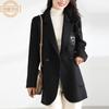 Abrigo de lana de doble cara de otoño e invierno 2023, abrigo de lana de doble cara con cuello de traje de longitud media para hombre