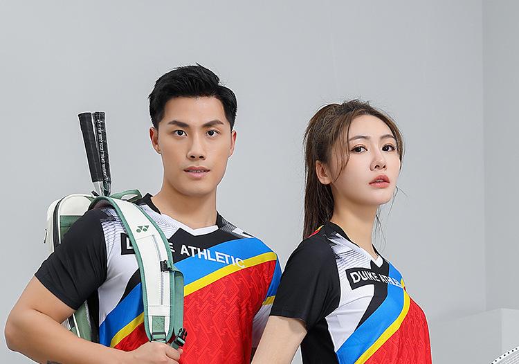 Nuevo traje de bádminton para hombres y mujeres, de verano, de manga corta, transpirable, para entrenamiento de tenis de mesa, ropa de equipo de competición, ropa deportiva superior