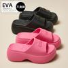 Zapatillas de suela gruesa para mujer, para exteriores, de verano, de una sola palabra, último diseño de gato blanco y negro, zapatos de playa famosos en línea, sandalias de tacón alto antideslizantes.