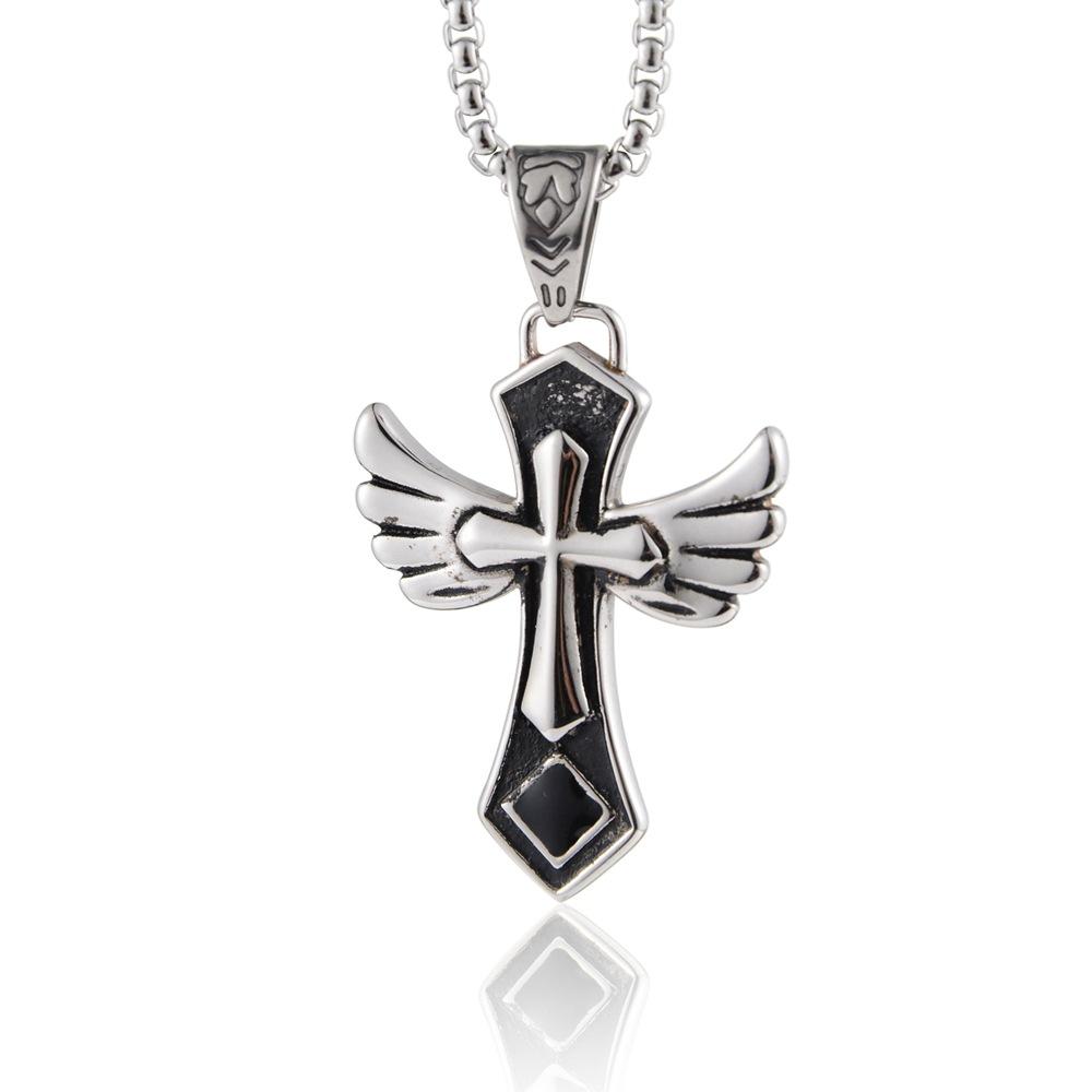 Collar con colgante de cruz de alas de acero y titanio, estilo hip hop, combinable con todo, personalizado, para hombre y mujer.
