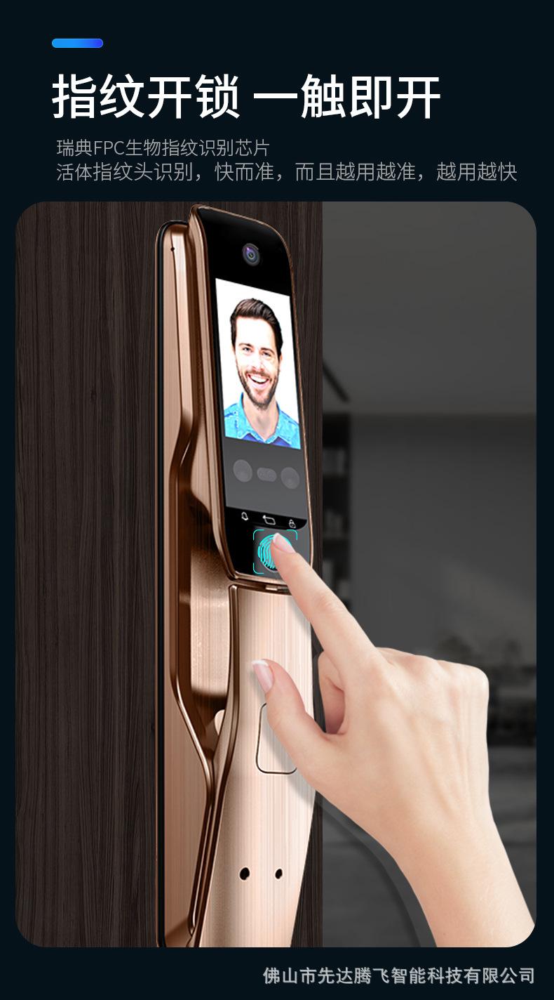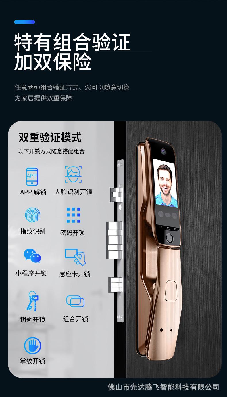 Suministro de fábrica fuente cerradura de huella digital para puerta de seguridad con cámara para capturar reconocimiento facial 3D cepillar cara cerradura de huella digital