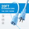 Cable de extensión para exteriores de 20 pies, cable de alimentación azul y blanco, 3 clavijas 16/3 SJTW