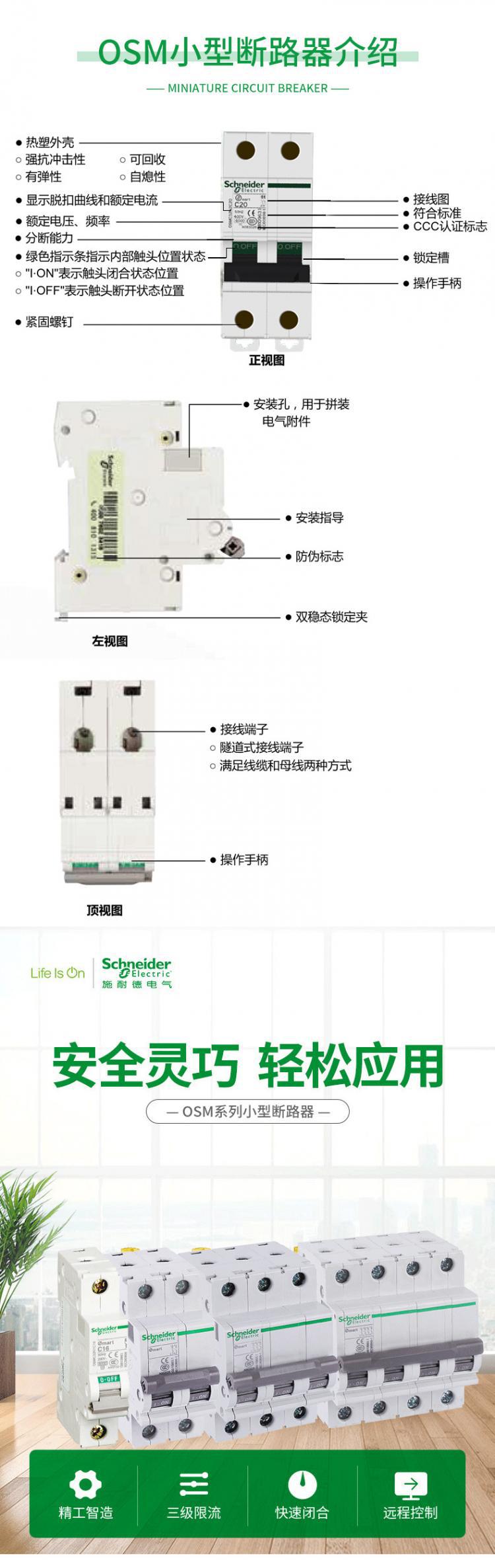 Schneider Osmart Interruptor de Circuito en Miniatura Interruptor de Aire Serie OSM 1P2P3P4P Interruptor de Circuito Abierto de Aire en Miniatura