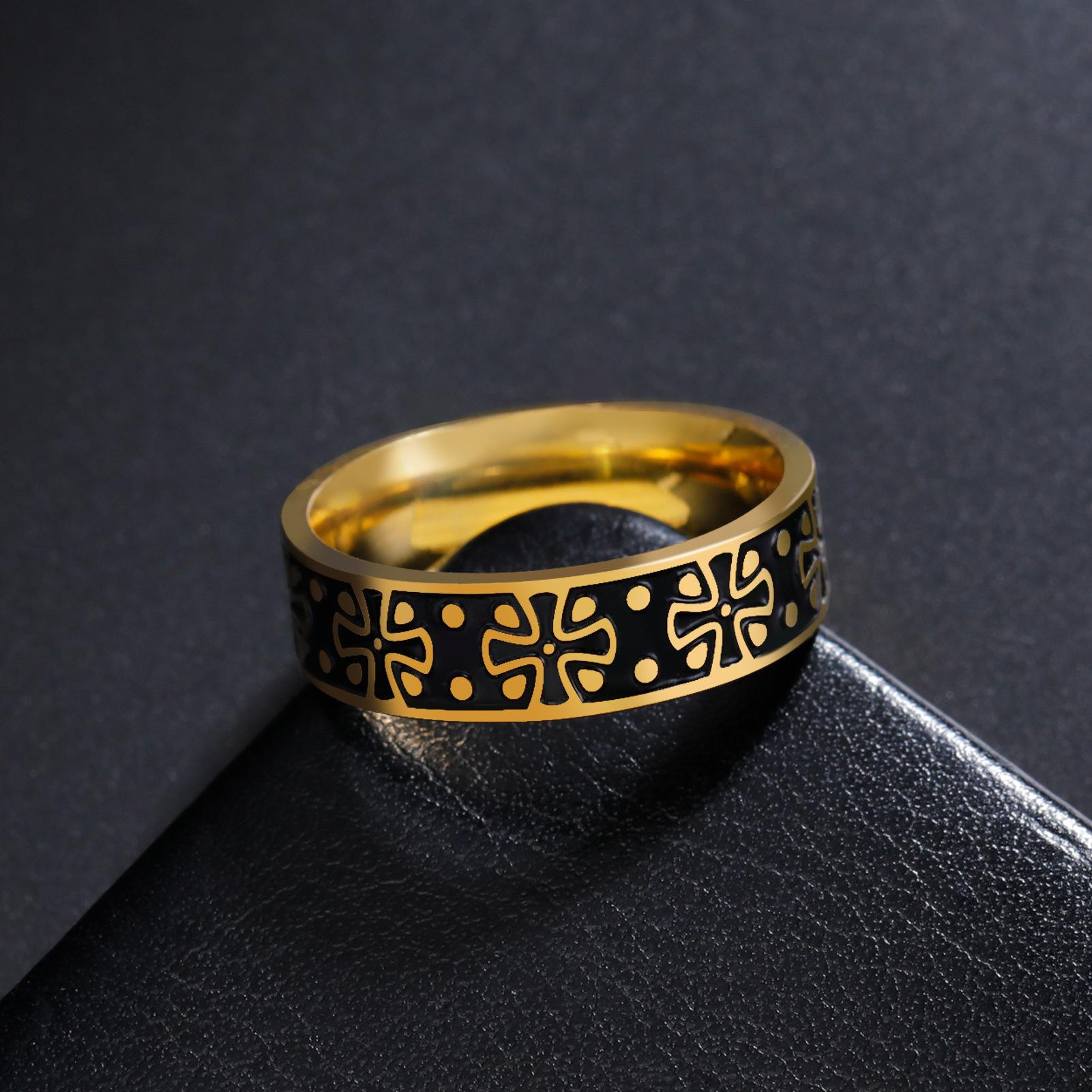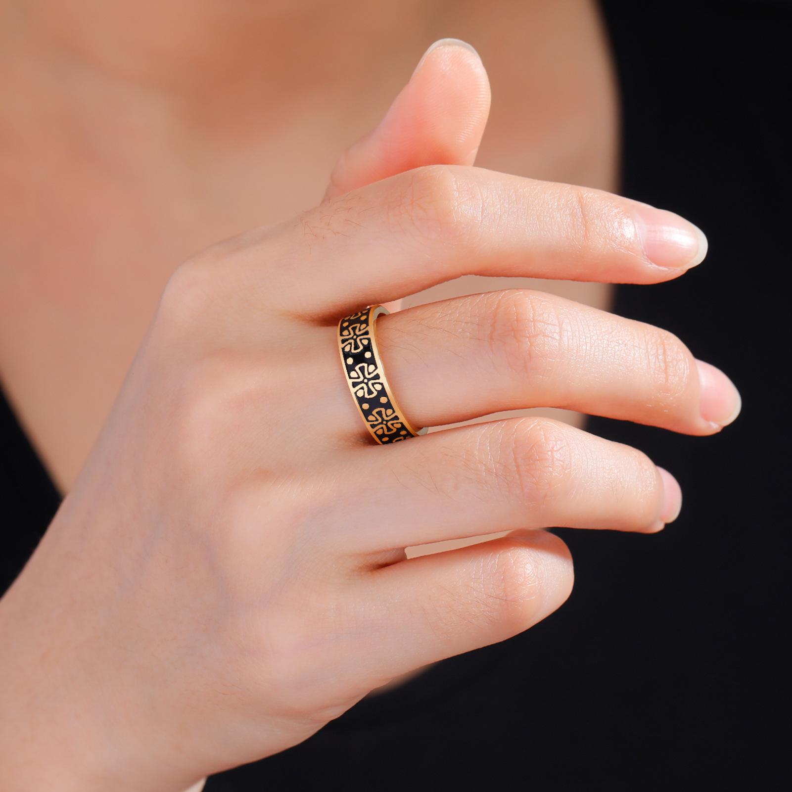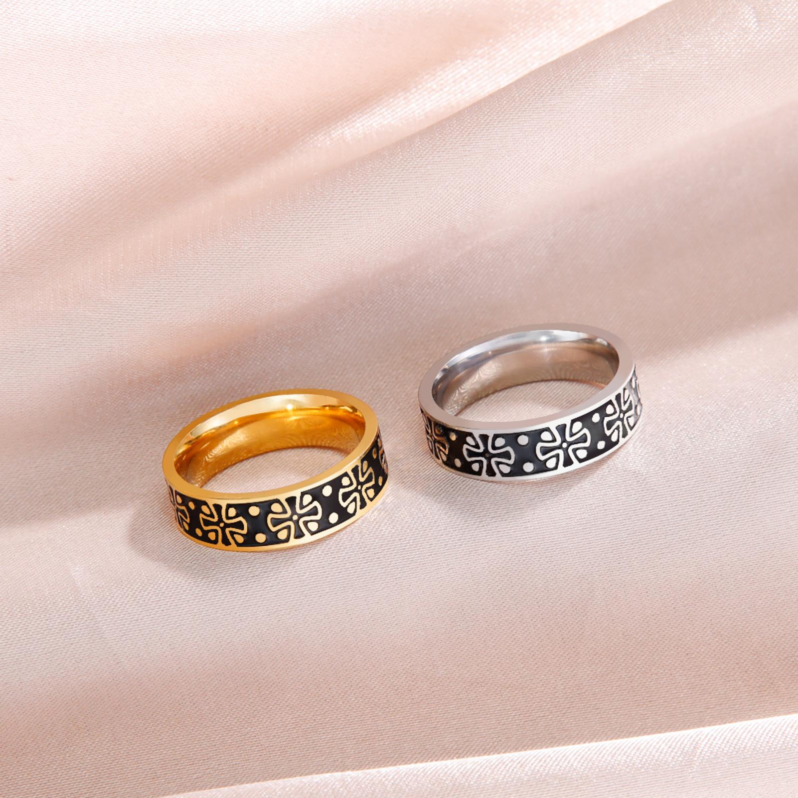 Anillo Popular para Hombre de Acero de Titanio Transfronterizo Personalizado Dominante Acero Inoxidable Trébol de Cuatro Hojas Anillo Negro de 6 mm de Ancho