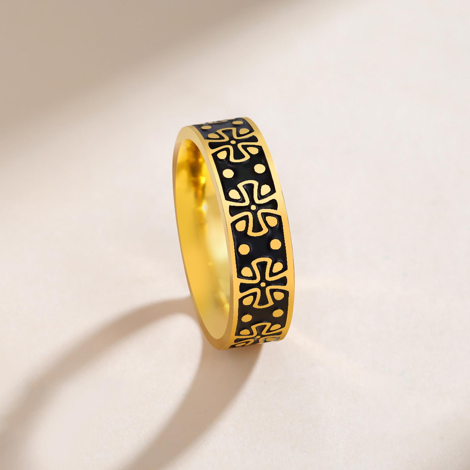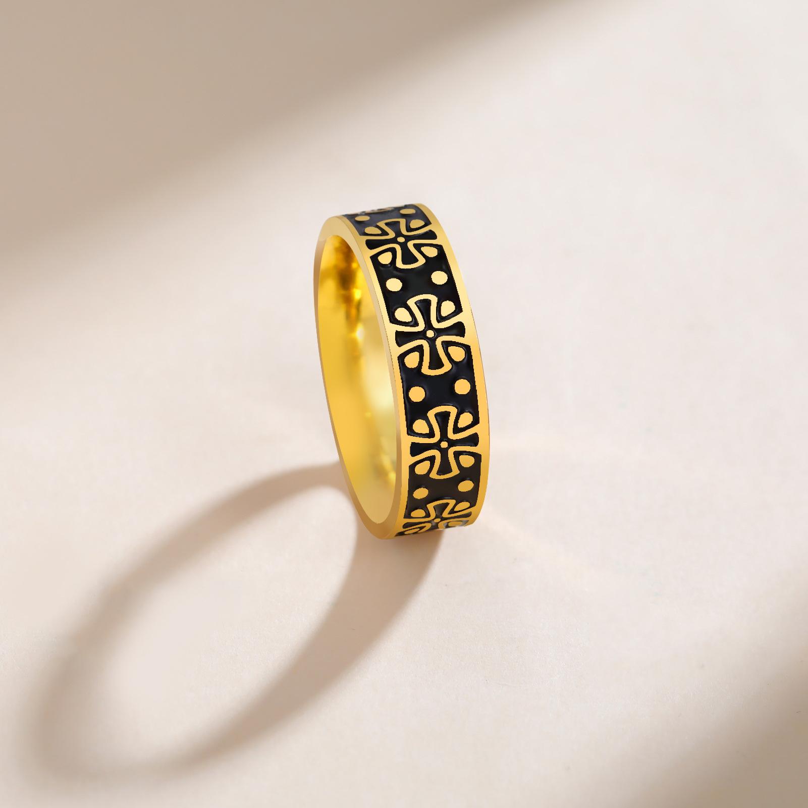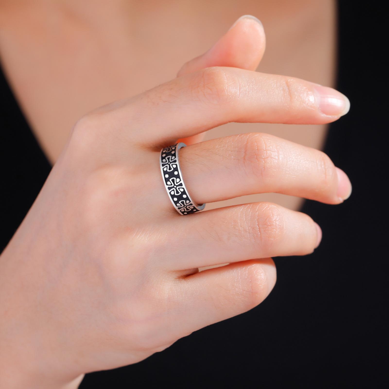 Anillo Popular para Hombre de Acero de Titanio Transfronterizo Personalizado Dominante Acero Inoxidable Trébol de Cuatro Hojas Anillo Negro de 6 mm de Ancho