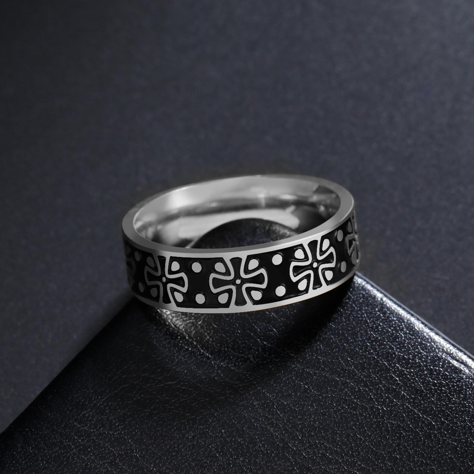 Personalized domineering stainless steel Clover corrosion smear ring 6MM wide, Personality