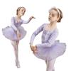 Ropa de Danza para Niños, Ropa de Práctica de Manga Larga para Niñas, Falda de Gasa de Ballet para Jardín de Niños, Ropa de Actuación para Examen de Danza de Niña