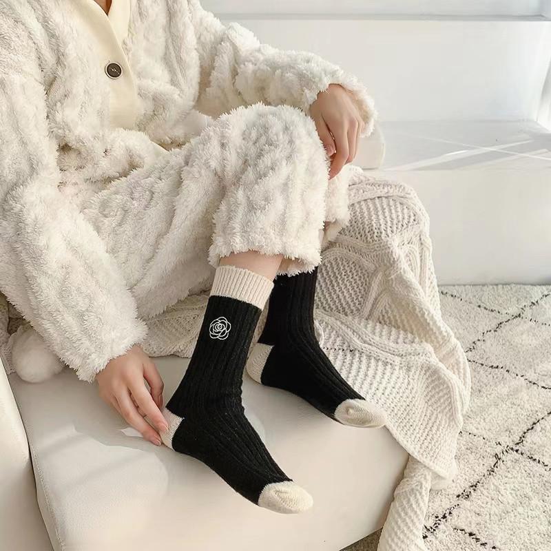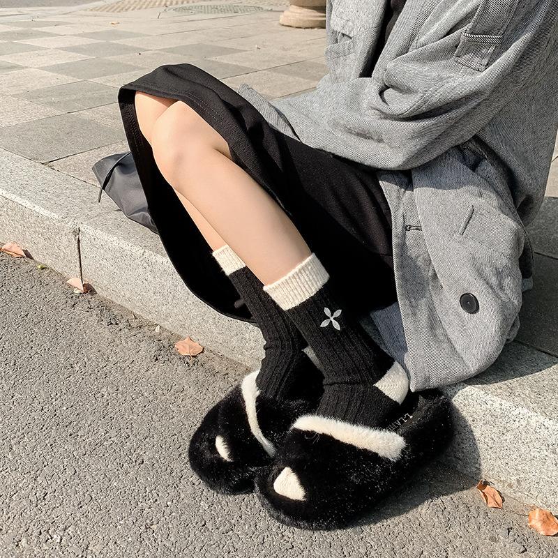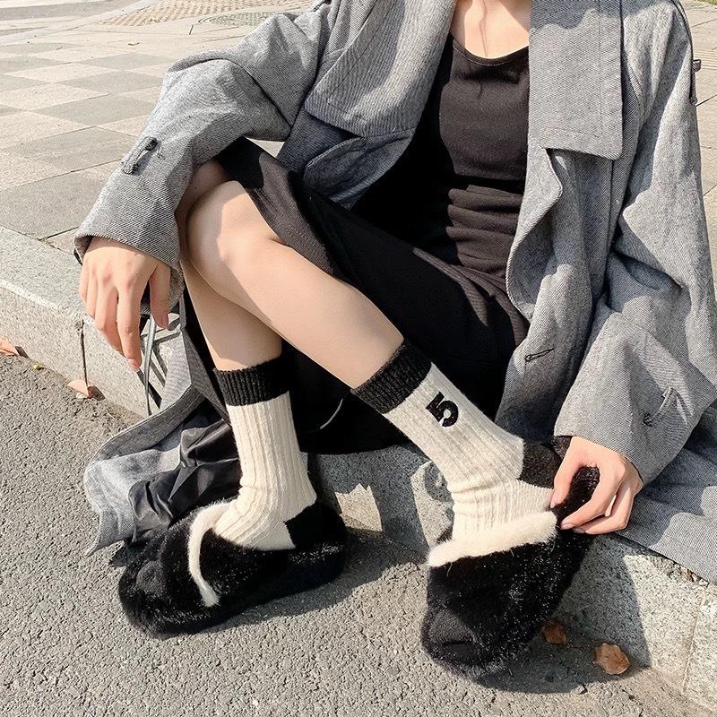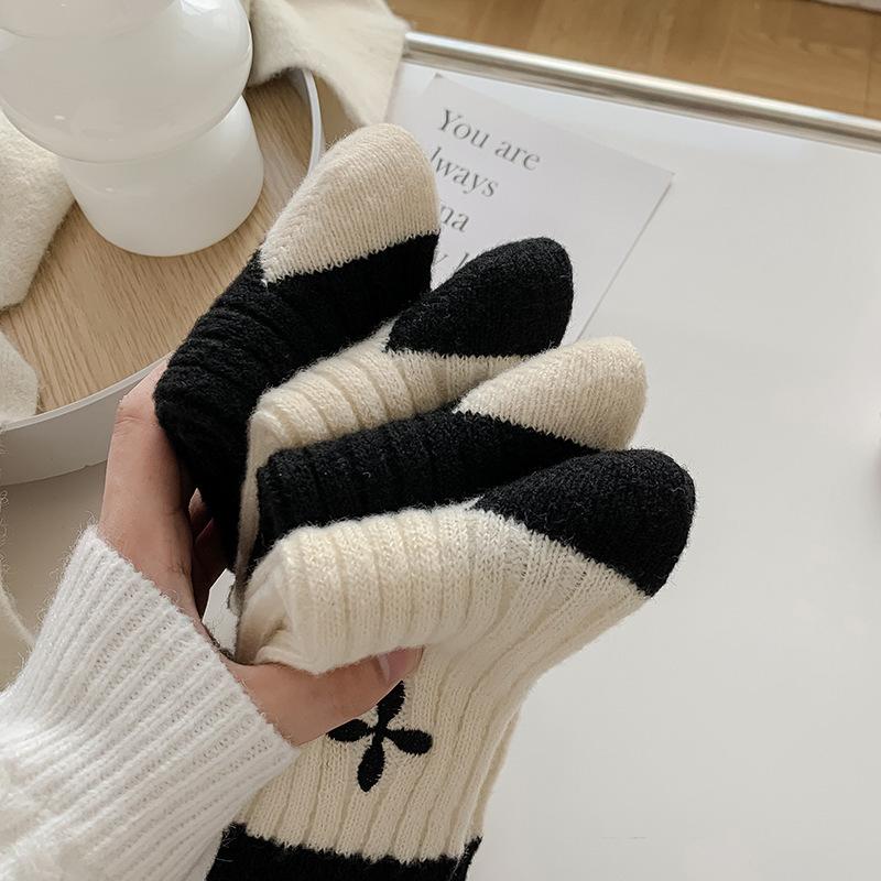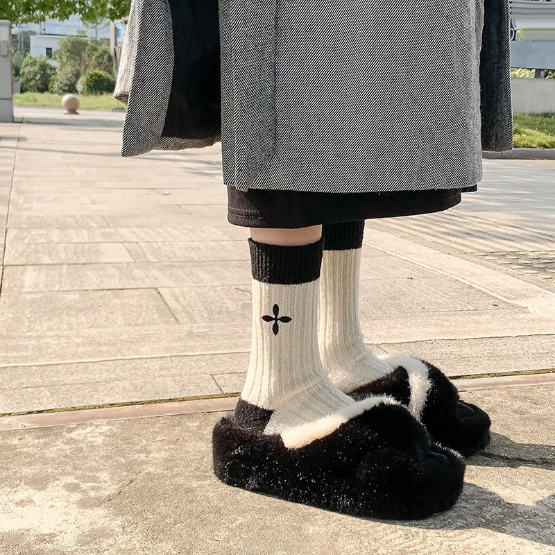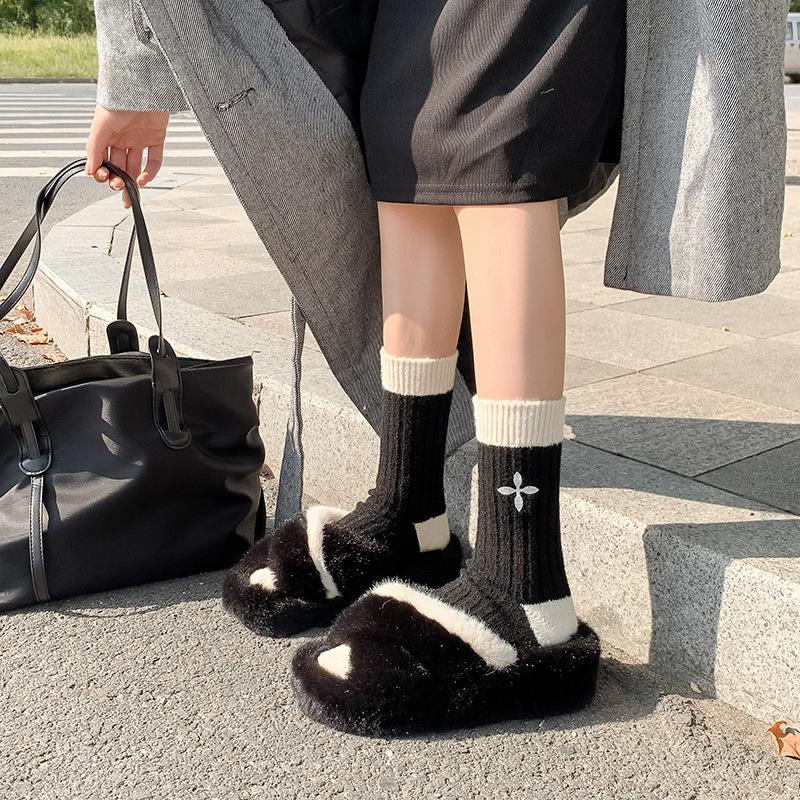 Calcetines de lana para mujer otoño e invierno gruesos con forro polar cálidos de media pantorrilla calcetines modernos bordados de pelo cruzado medias