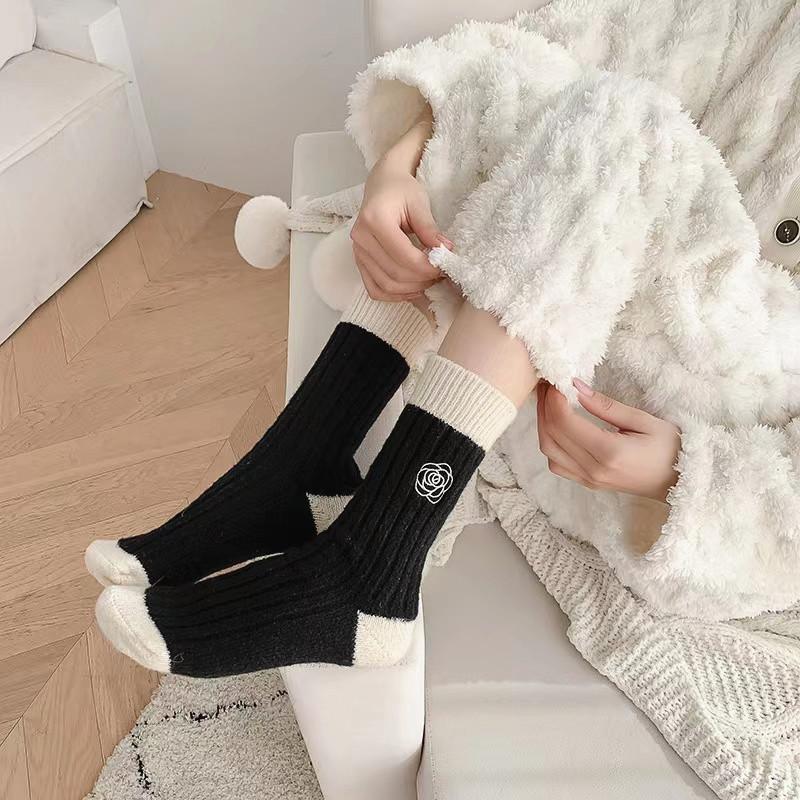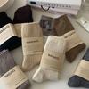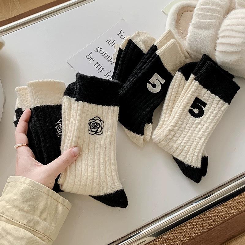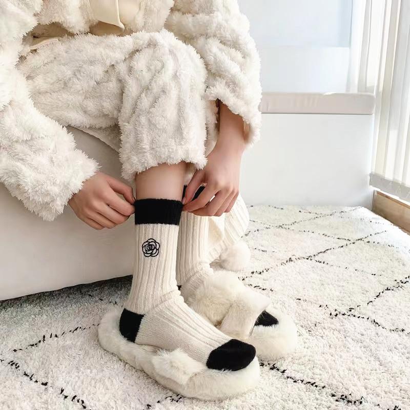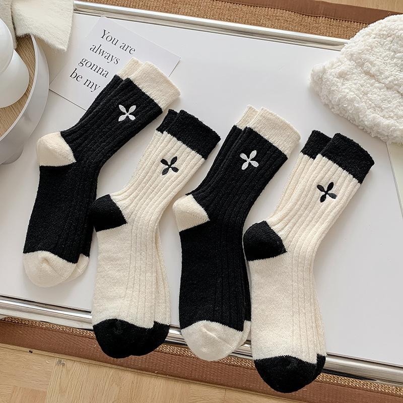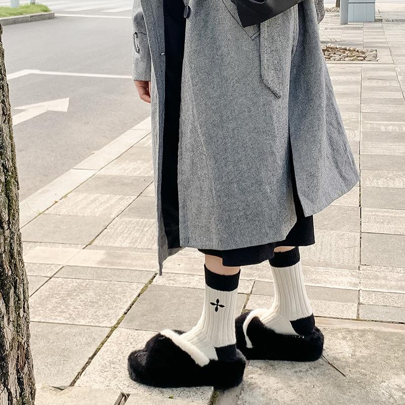 Calcetines de lana para mujer otoño e invierno gruesos con forro polar cálidos de media pantorrilla calcetines modernos bordados de pelo cruzado medias