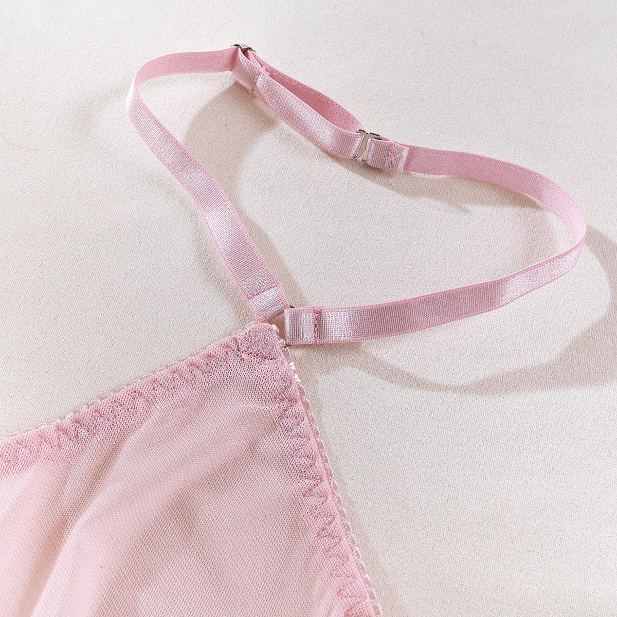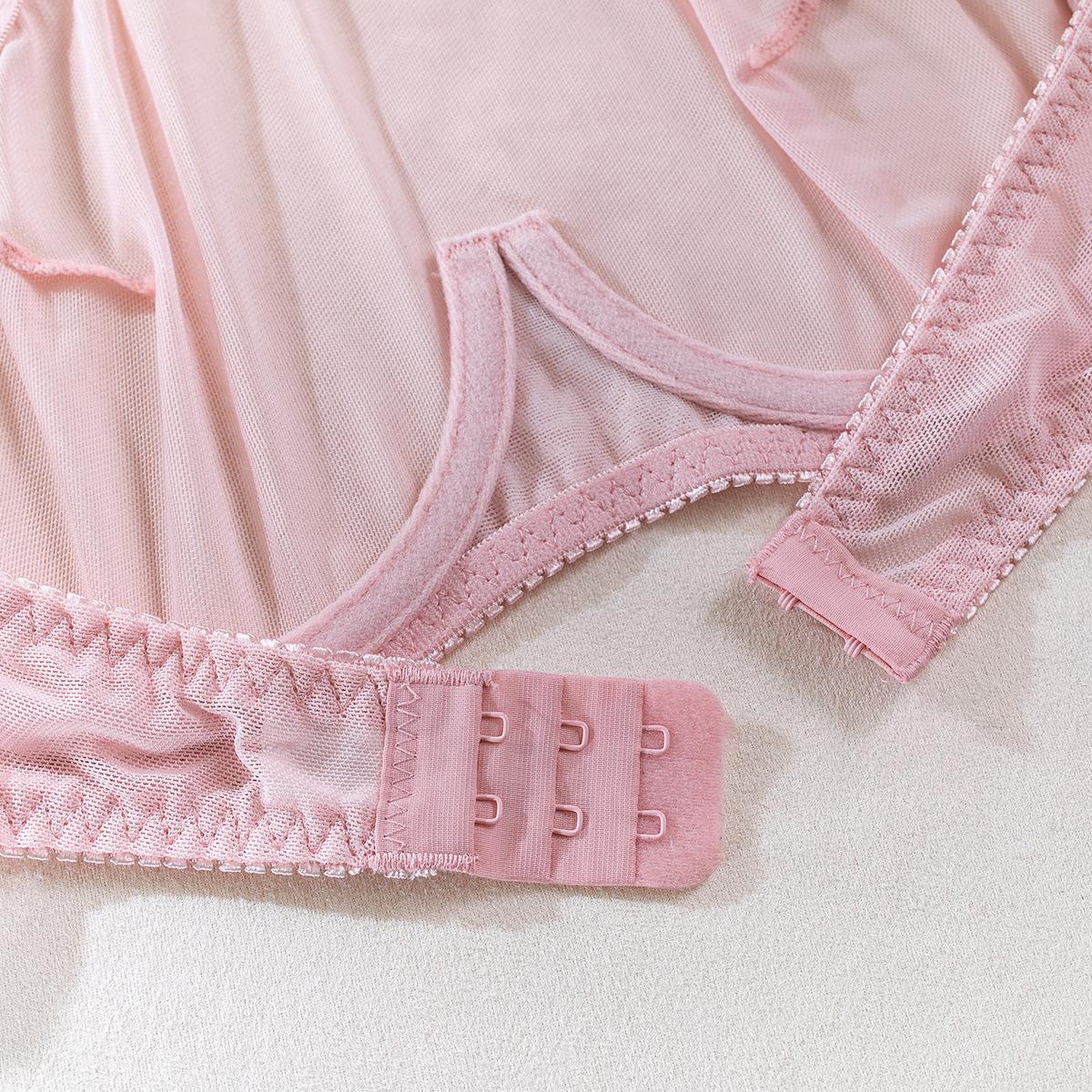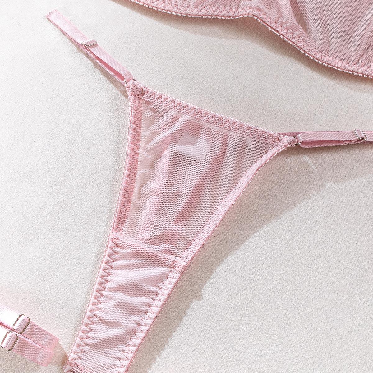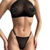 Sexy Ultradelgado Malla Transparente Aro de Acero Push-Up Halterneck Tres Piezas Íntimas con Anillos para Pierna y Bufanda en Stock Nuevo Qqny