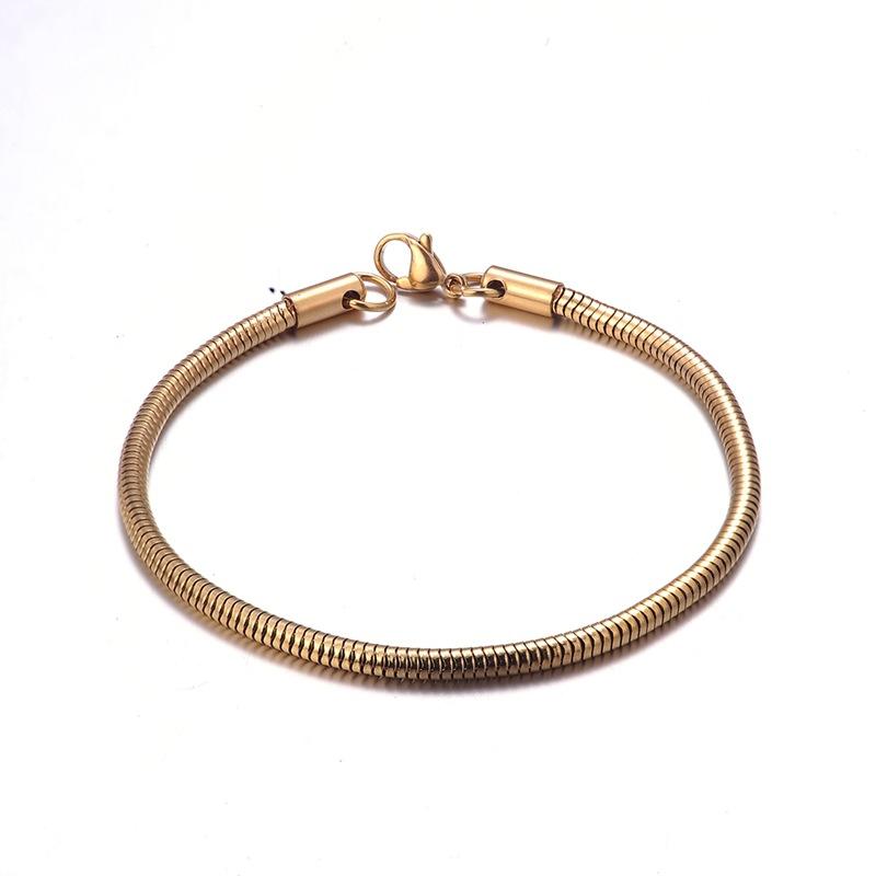 Joyería al por mayor de fábrica acero inoxidable 3MM pulsera redonda de serpiente simple de alto sentido acero titanio cadena hueso de serpiente moda cadena tejida