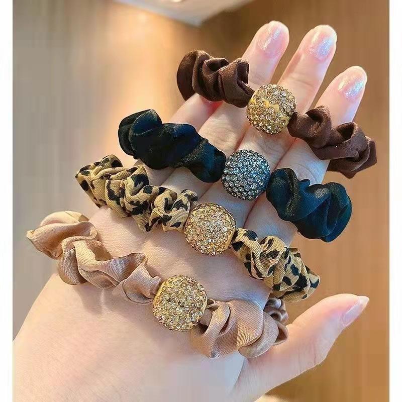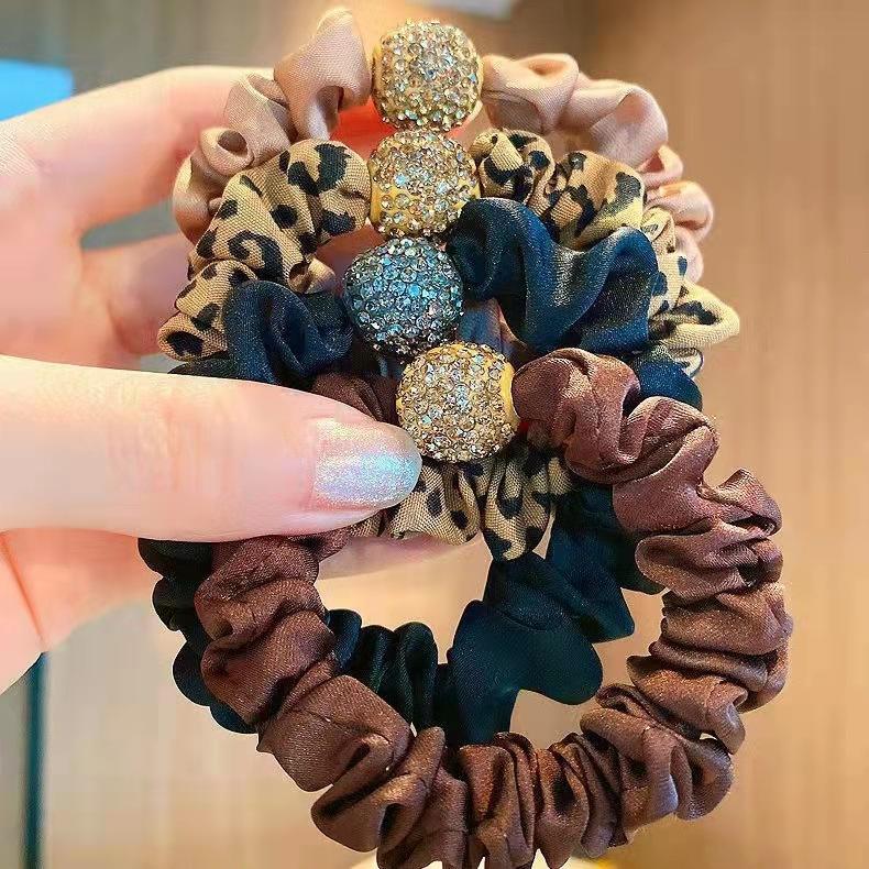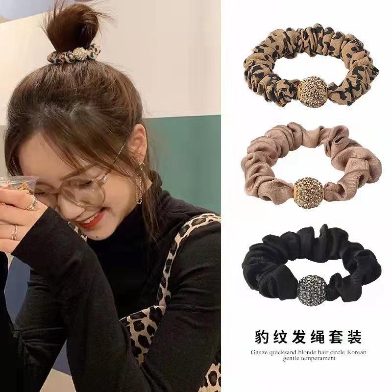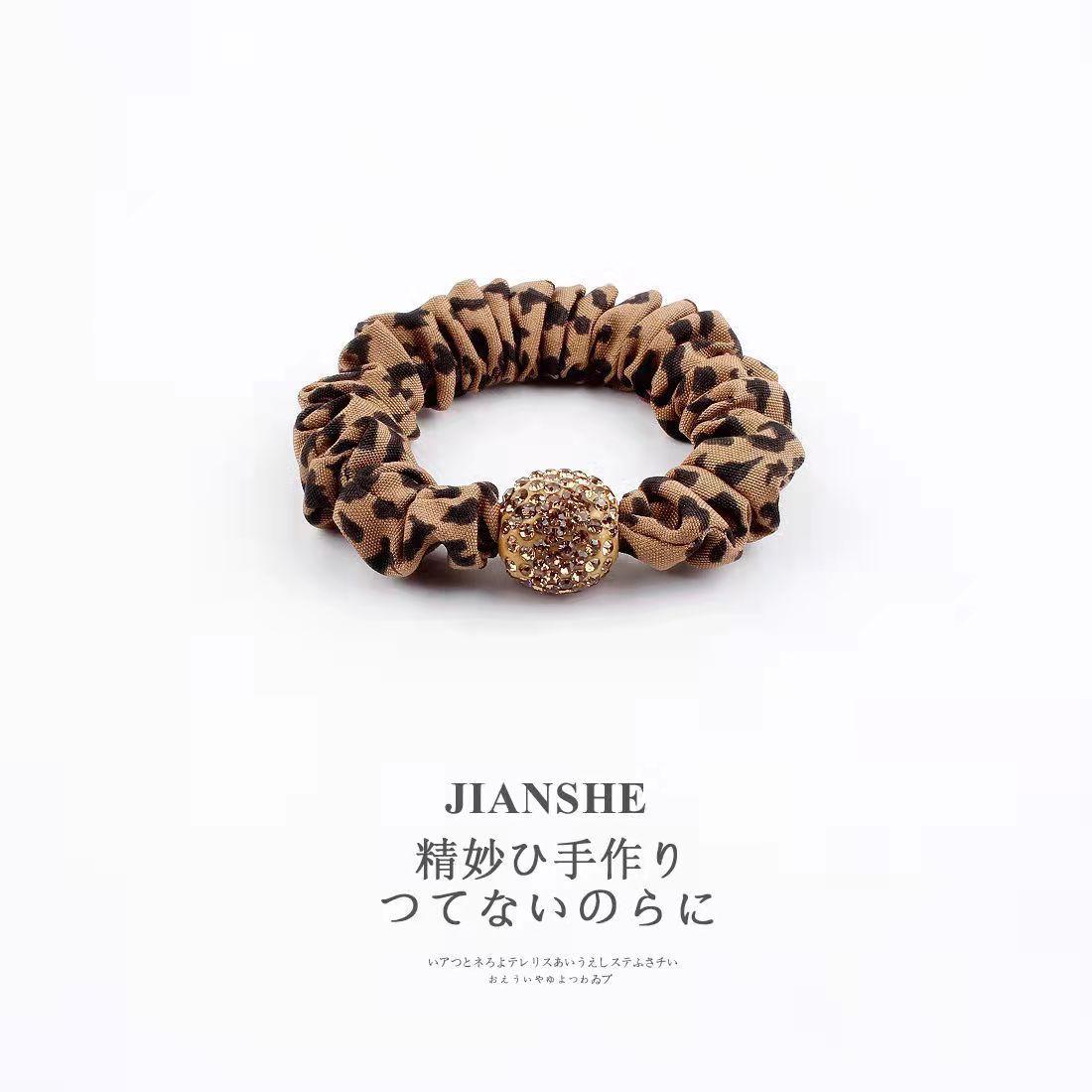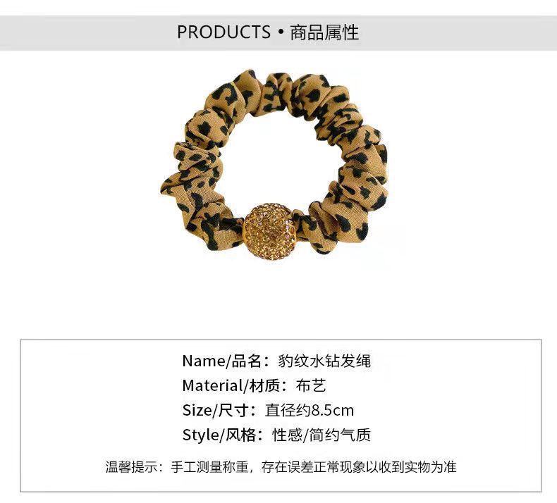 Diadema transfronteriza europea y americana Nueva Anillo de intestino grueso temperamento estampado de leopardo cuerda para el cabello bola redonda pedrería alta elasticidad cuerda para el cabello accesorios para el cabello al por mayor