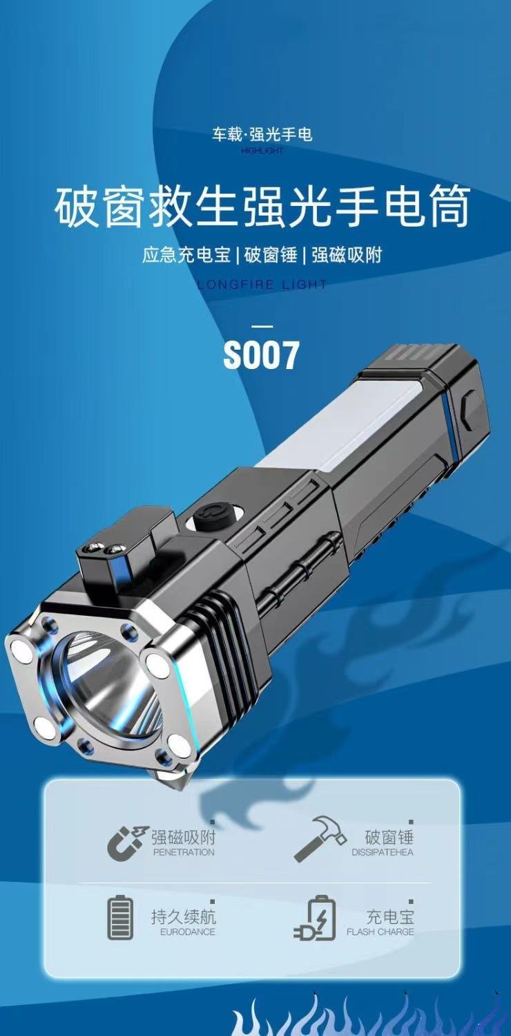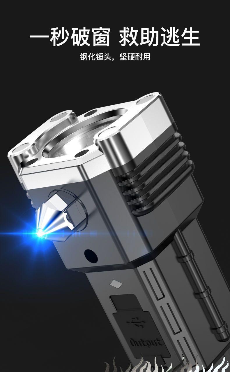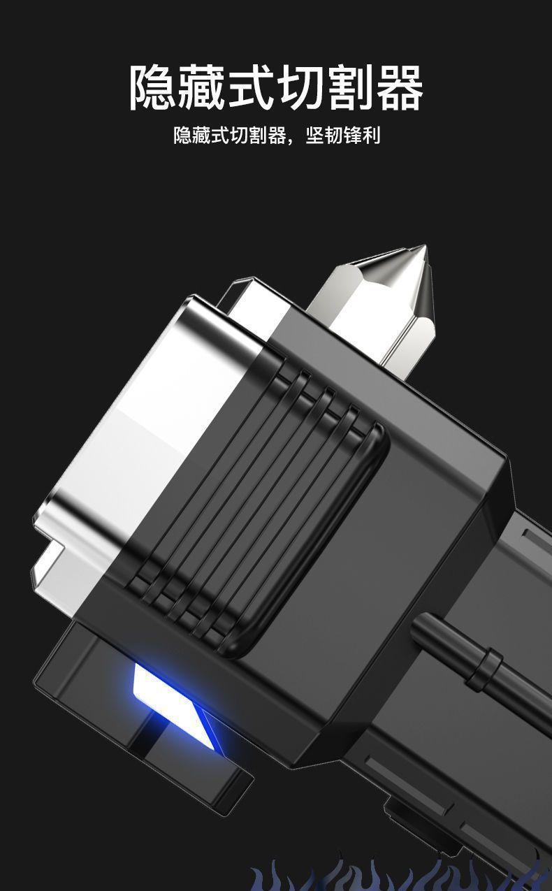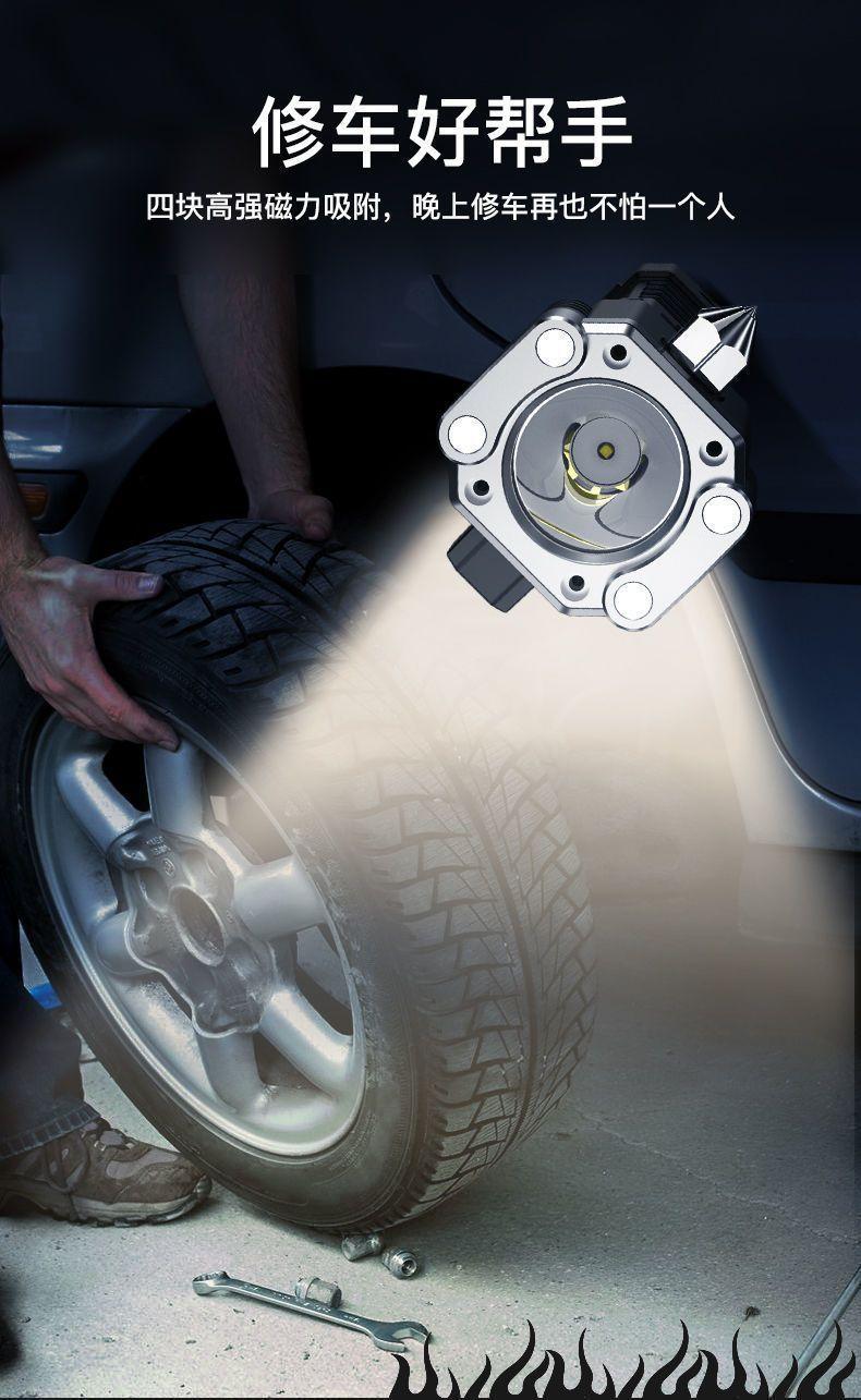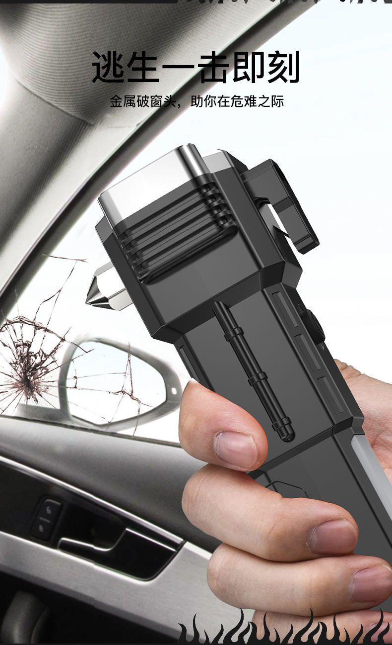 Martillo de seguridad para coche, multifunción, cuatro en uno, rompeventanas, martillo de escape, luz potente de emergencia, linterna recargable