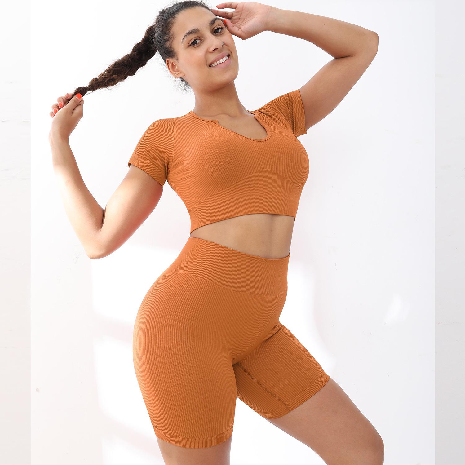 Traje de yoga con hilo sin costuras transfronterizo, sujetador deportivo de fitness, pantalones de fitness de secado rápido, traje de yoga para mujer